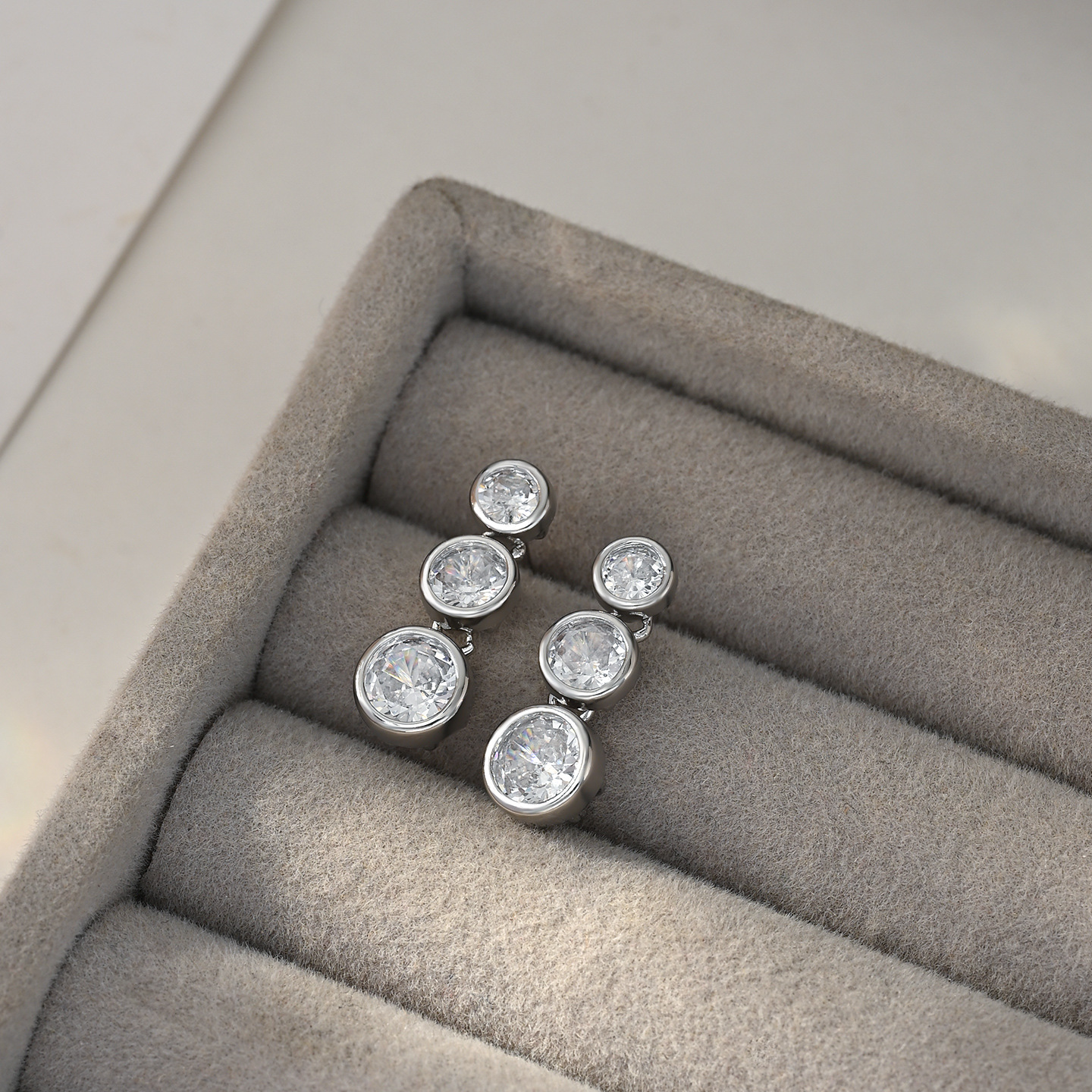S925银针韩国时尚个性锆石耳钉女小众设计感流速耳环精致简约耳饰