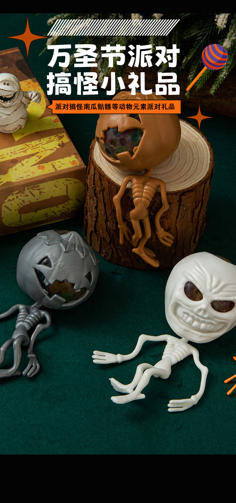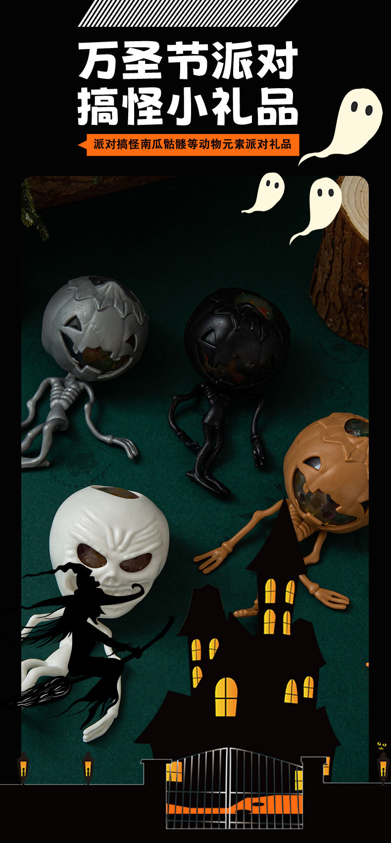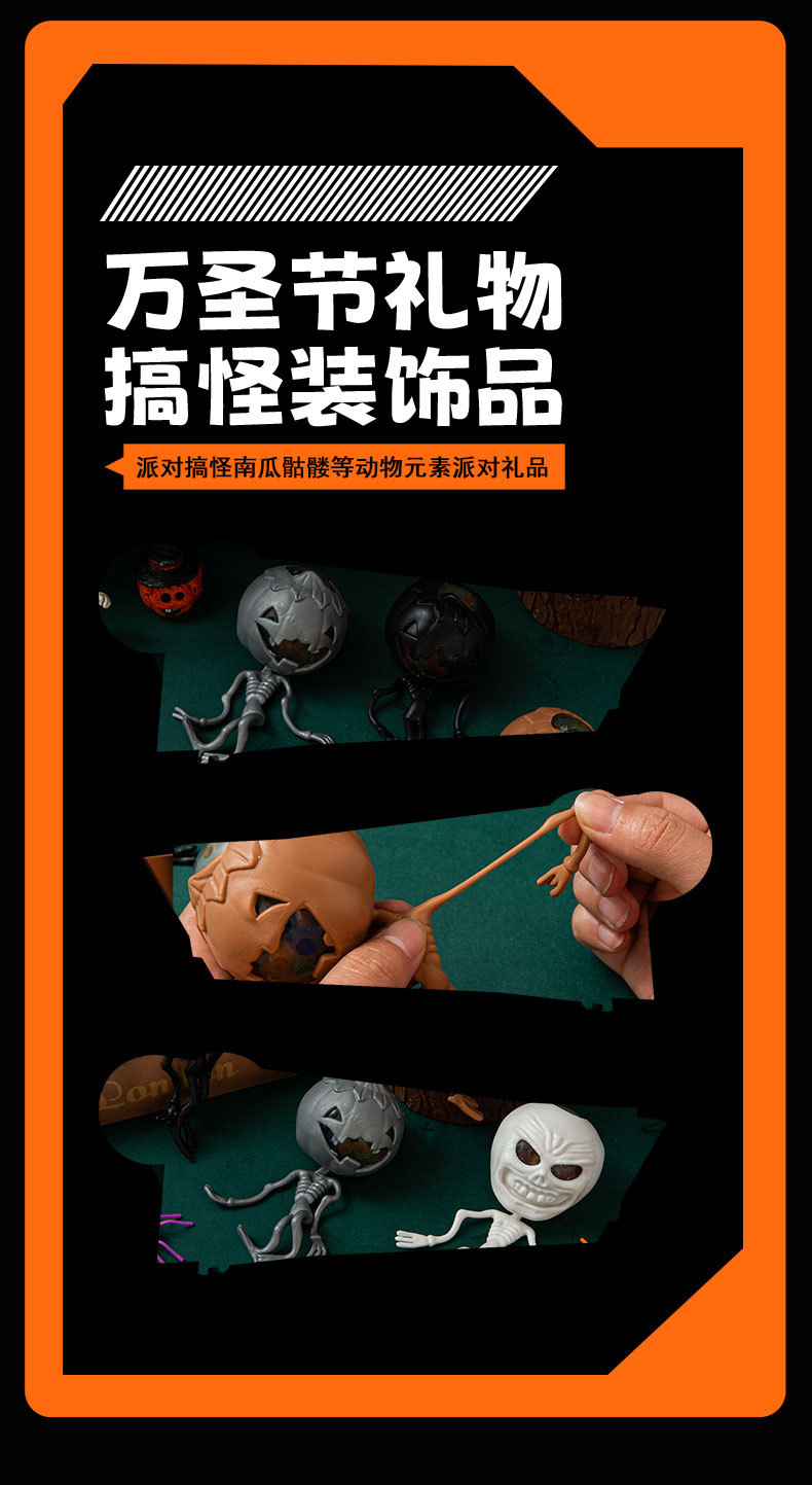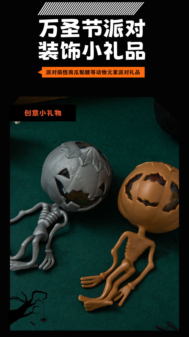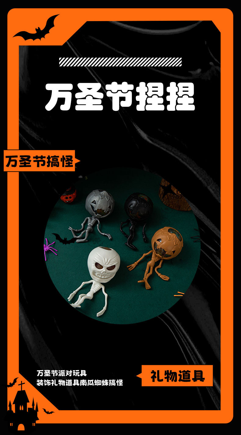 万圣节日款跨境搞怪整蛊玩具南瓜头骷髅骨架幽灵发泄捏捏乐装饰品 English | 投诉