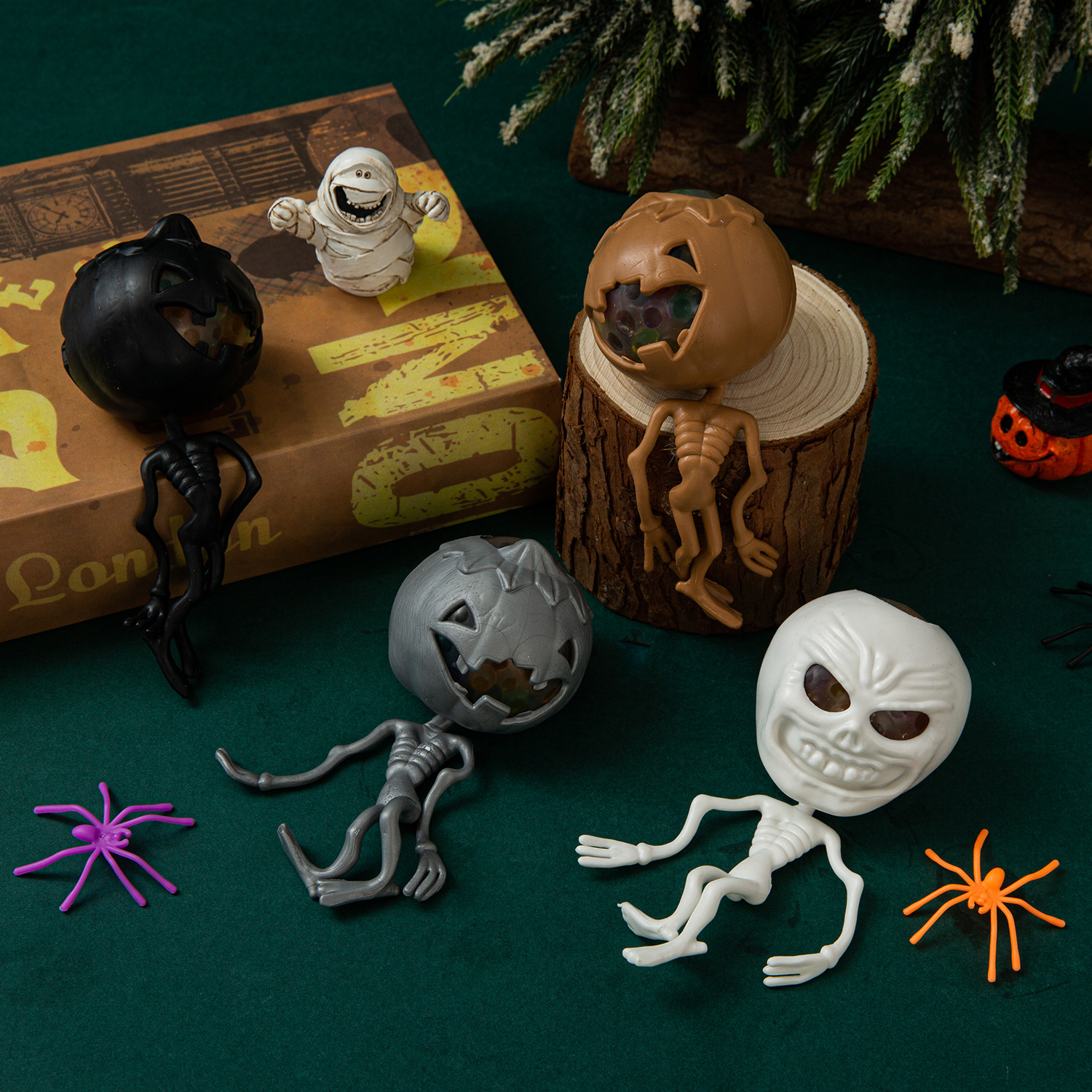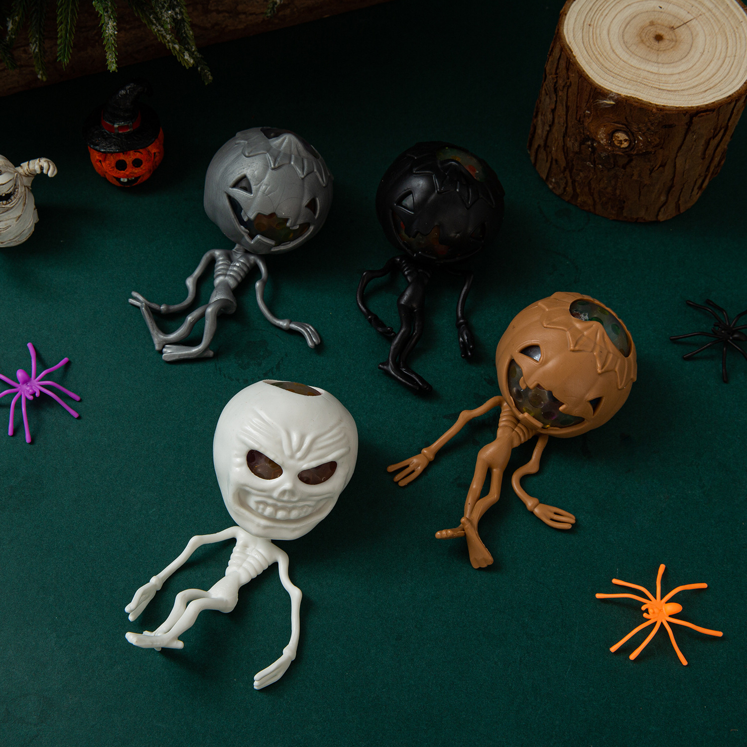 万圣节日款跨境搞怪整蛊玩具南瓜头骷髅骨架幽灵发泄捏捏乐装饰品