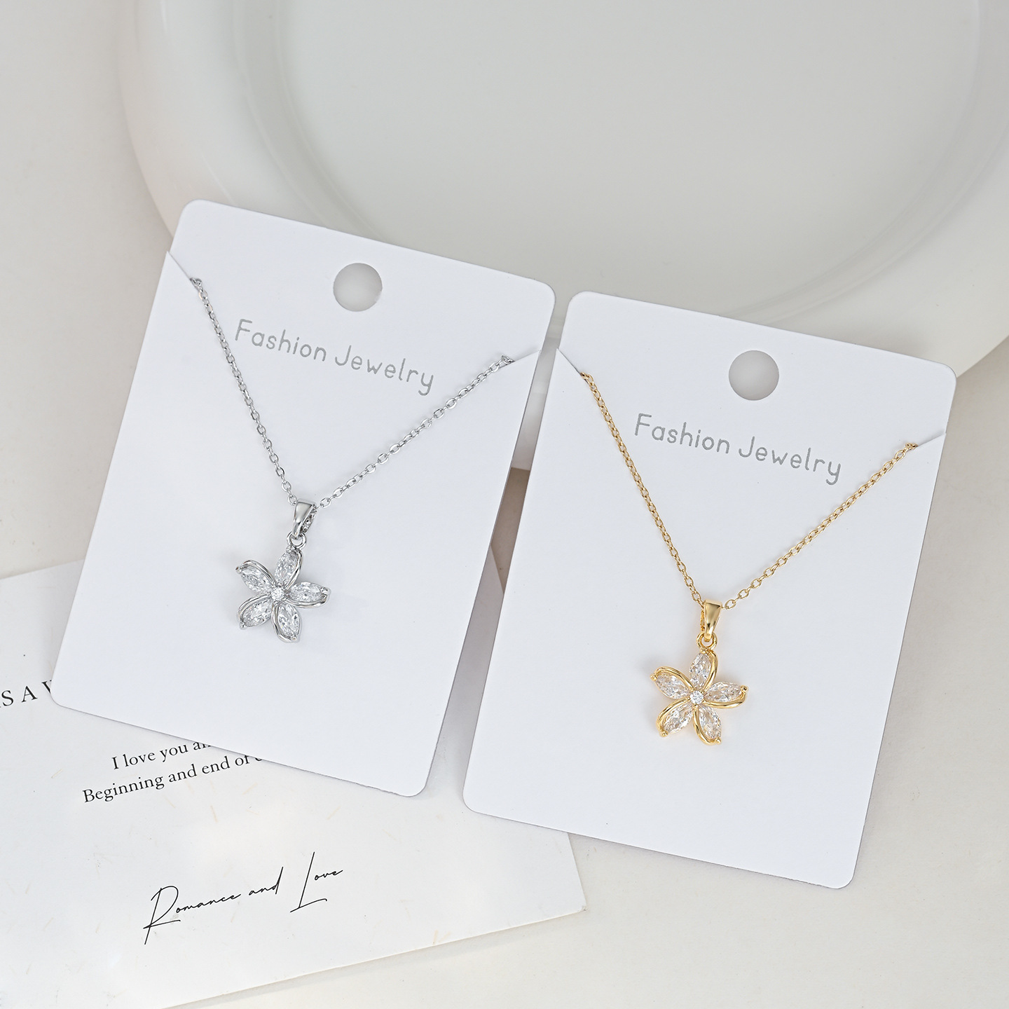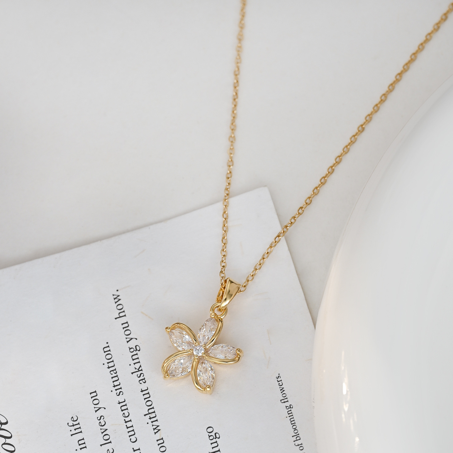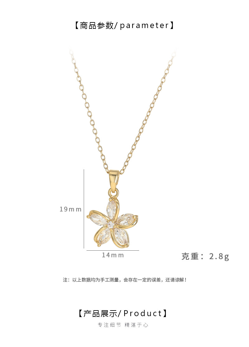 真金电镀微镶锆石气质锁骨链女小众设计感太阳花项链精致花瓣颈链 English | 投诉