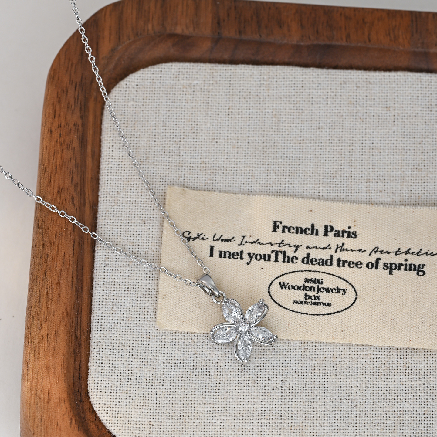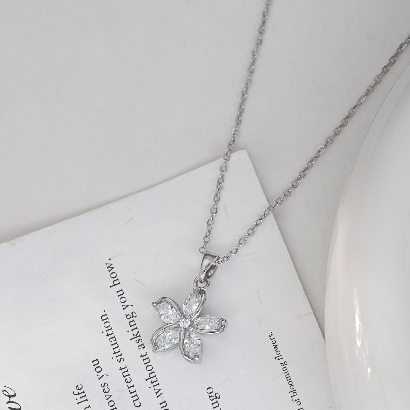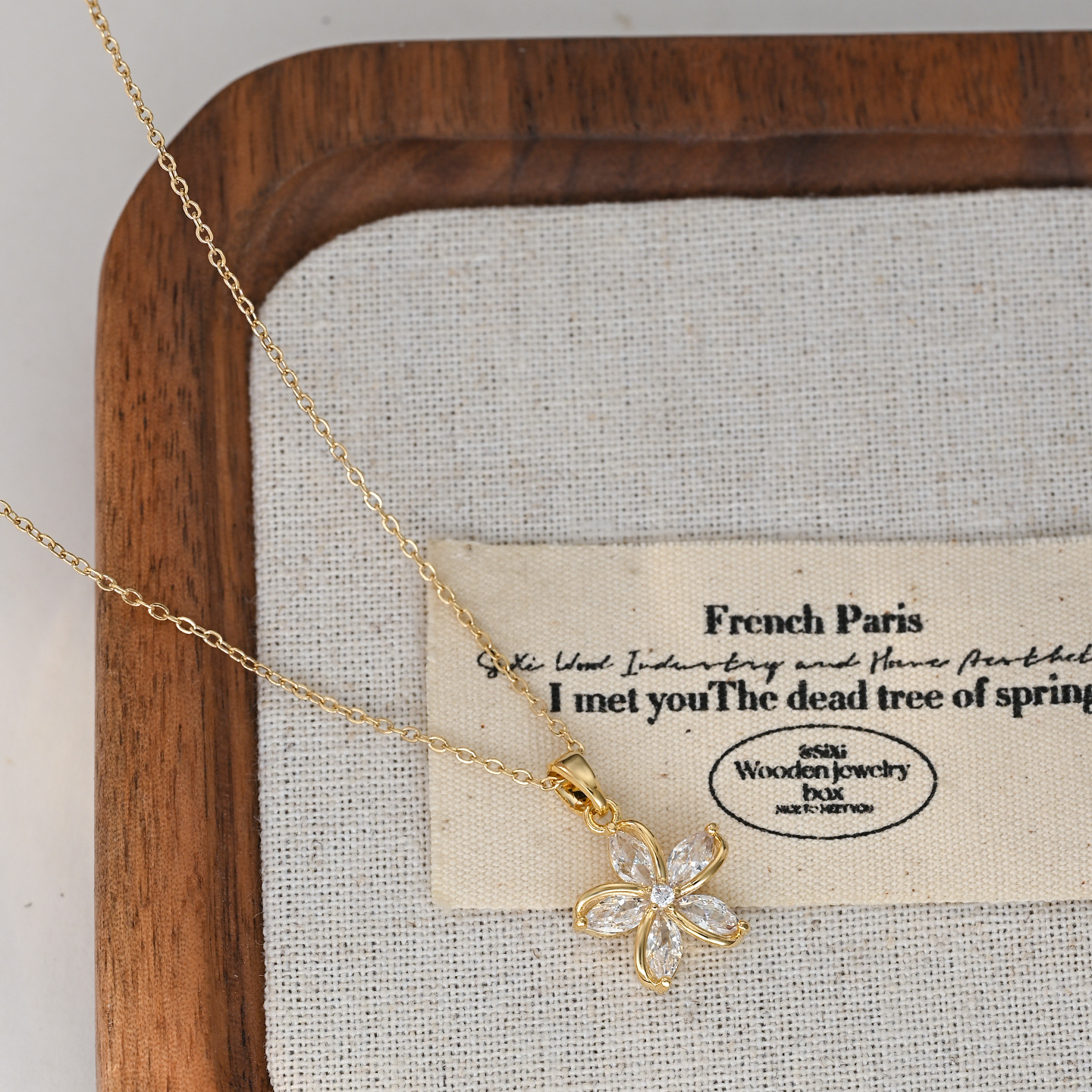 真金电镀微镶锆石气质锁骨链女小众设计感太阳花项链精致花瓣颈链 English | 投诉