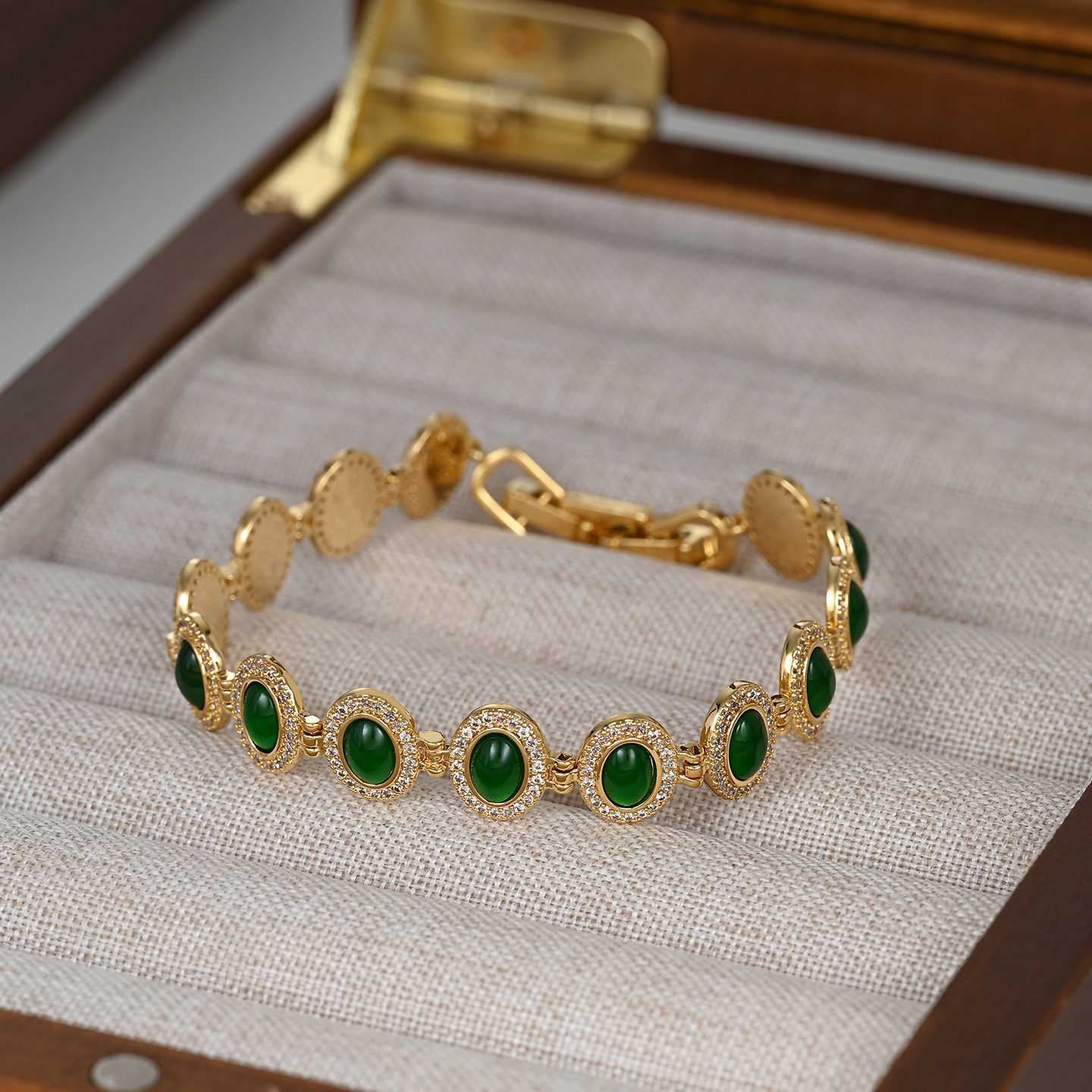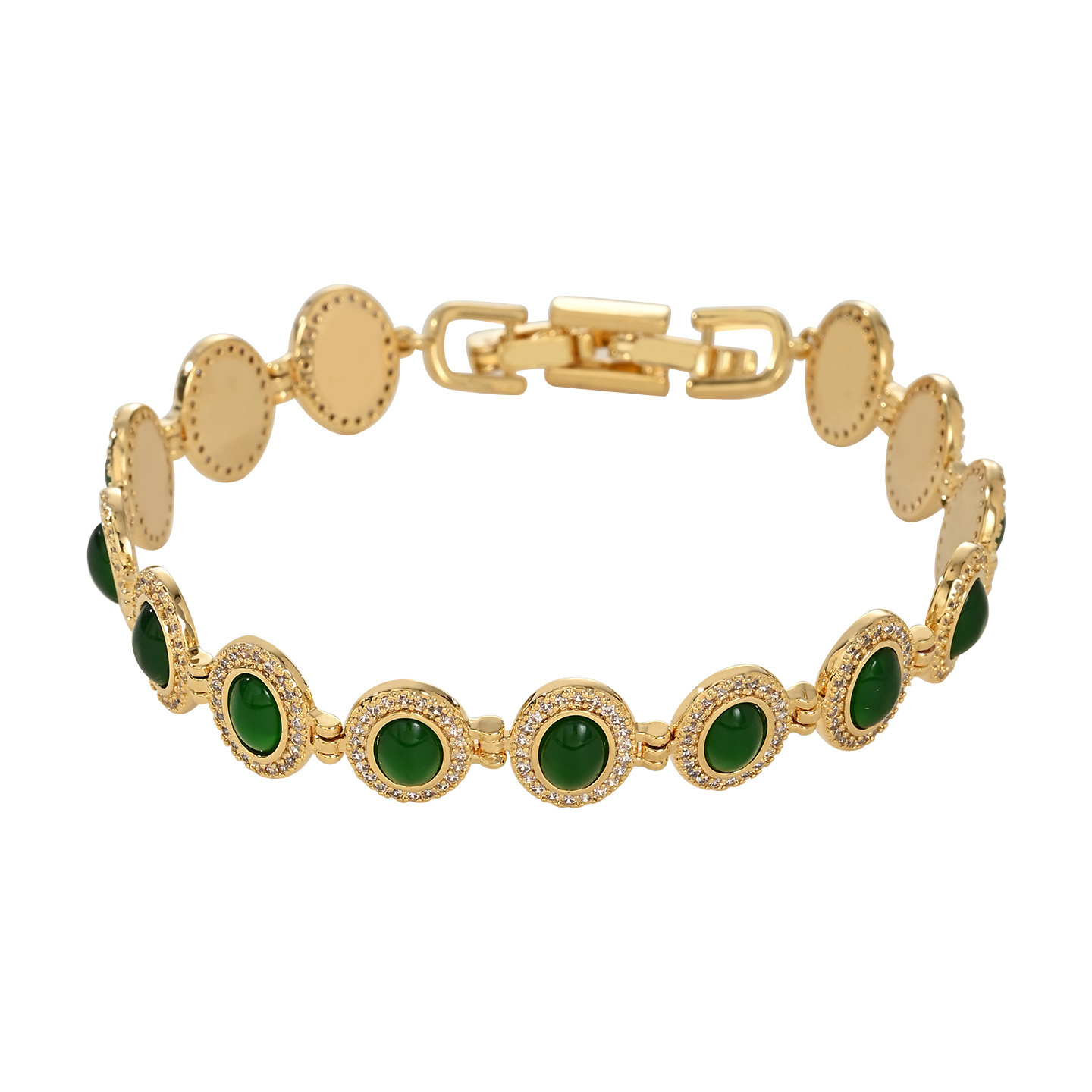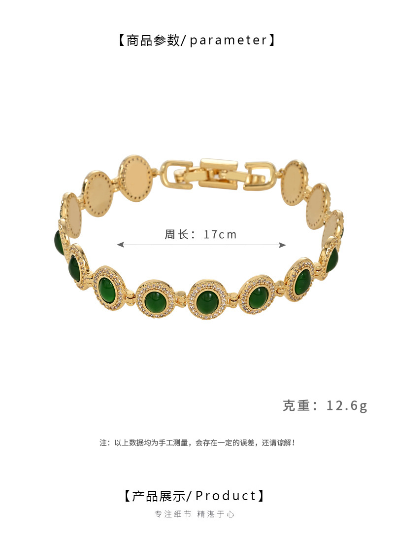 真金电镀微镶锆石轻奢风手饰品女高级感祖母绿手镯欧美风手环批发 English | 投诉