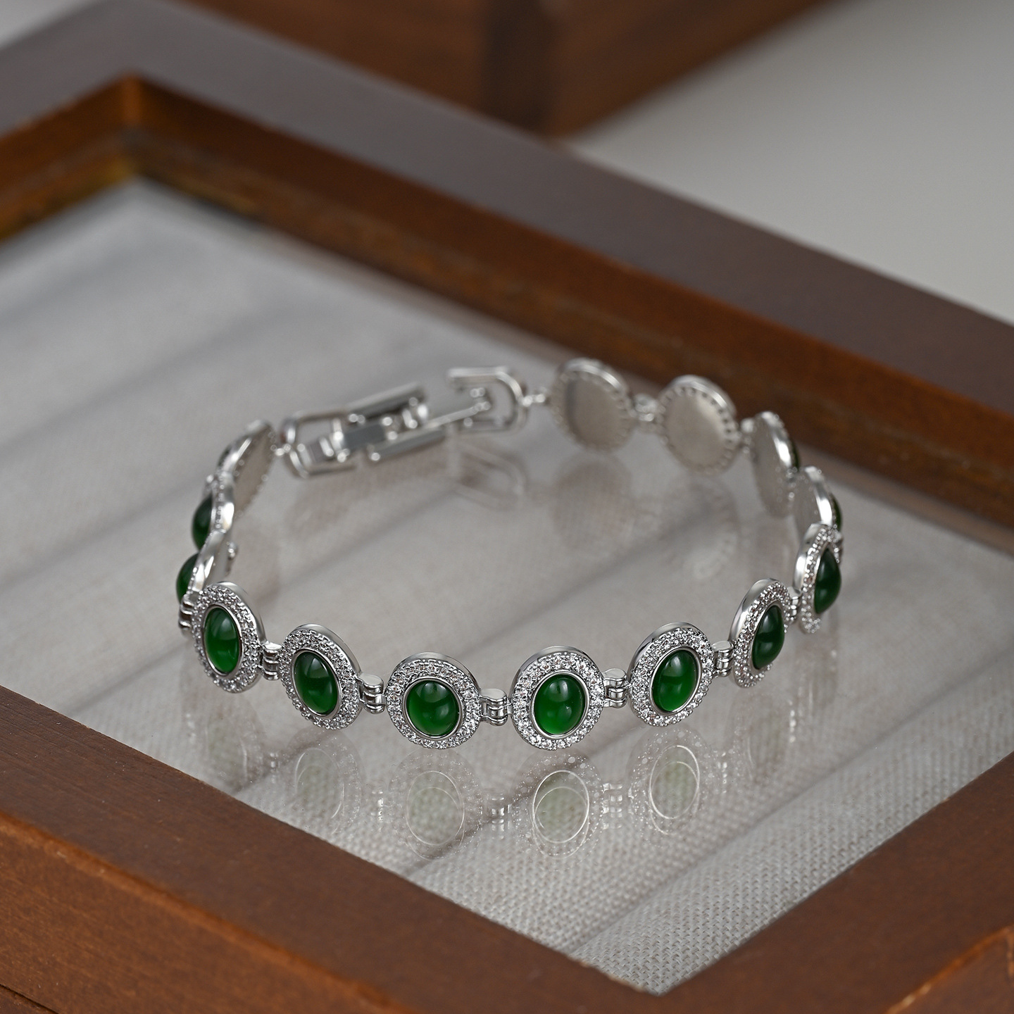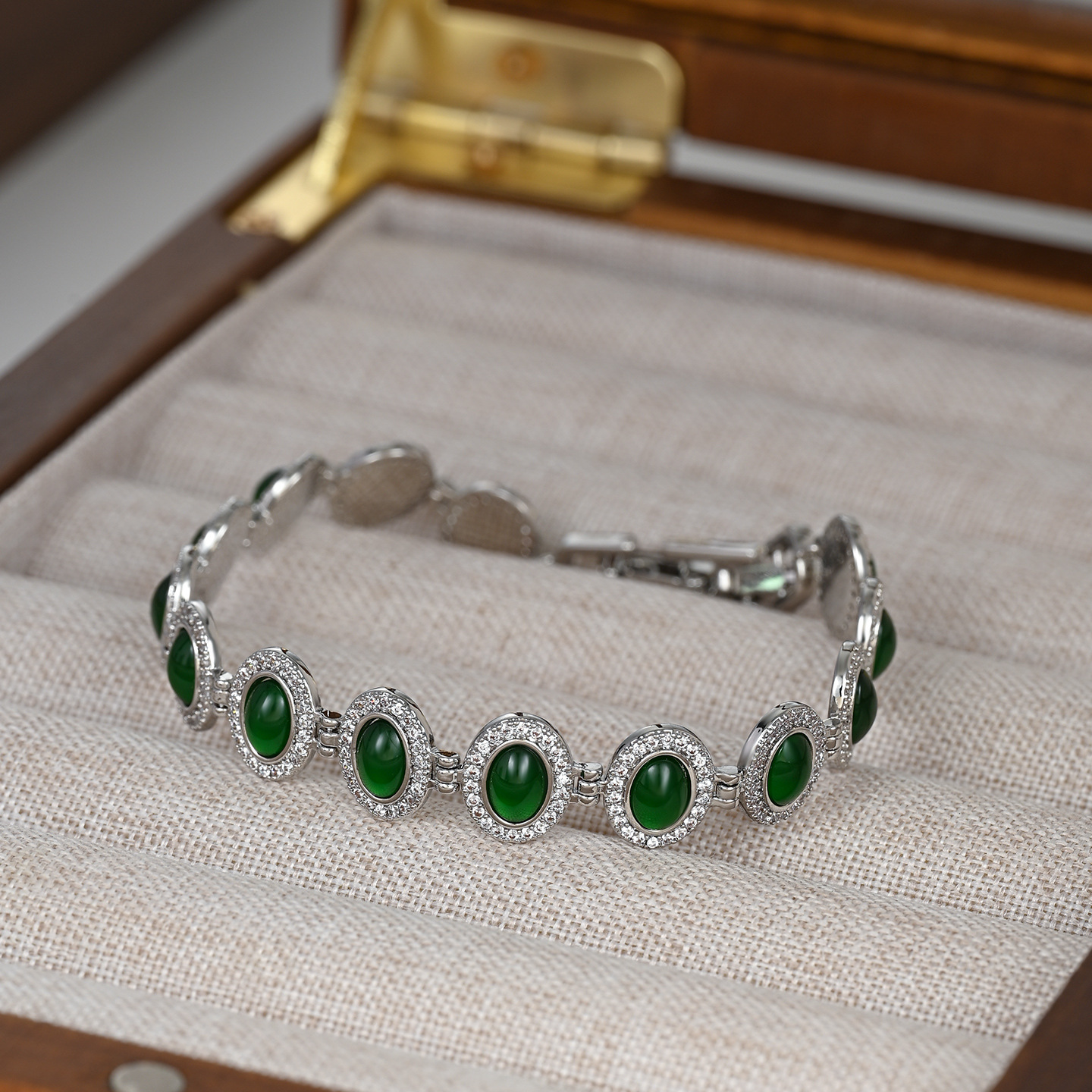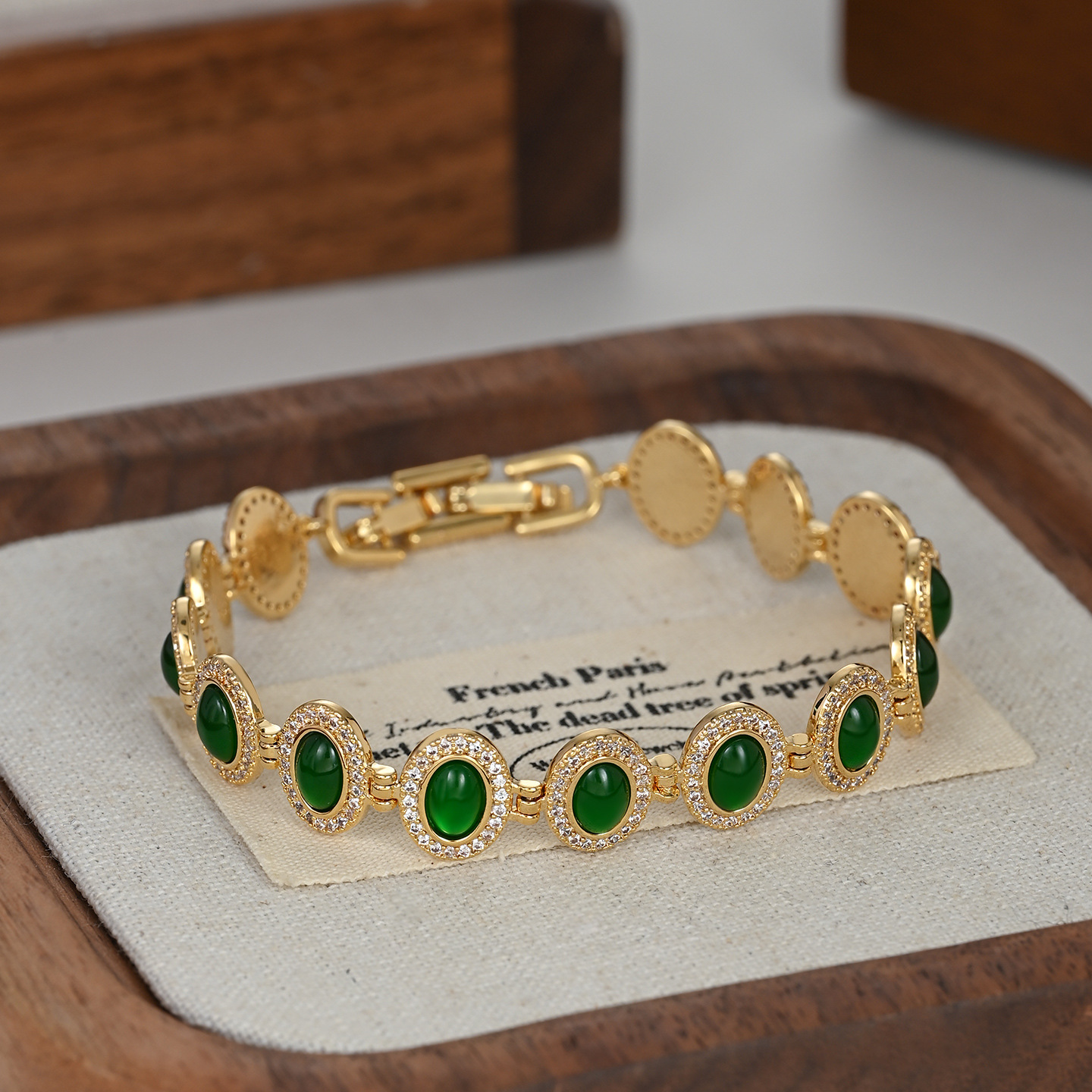 真金电镀微镶锆石轻奢风手饰品女高级感祖母绿手镯欧美风手环批发 English | 投诉