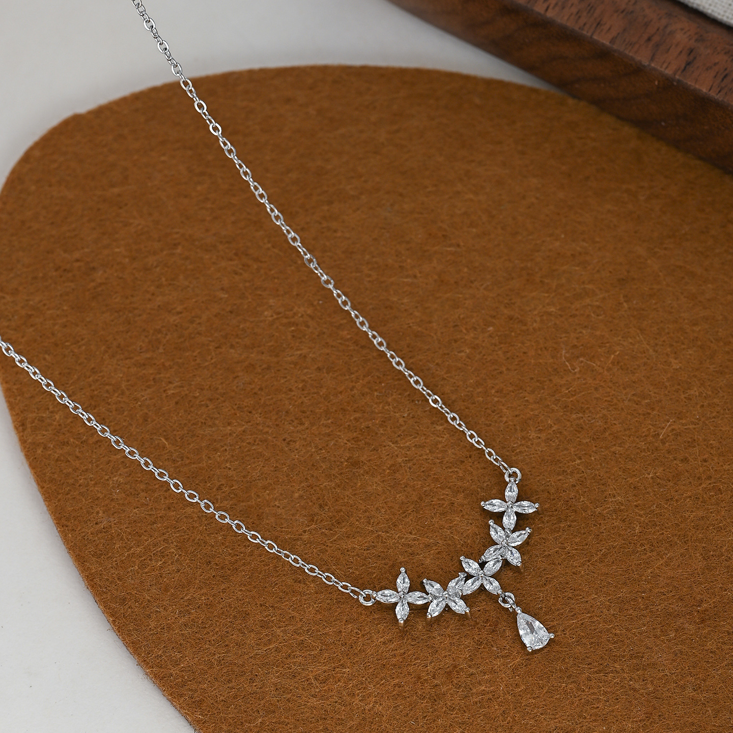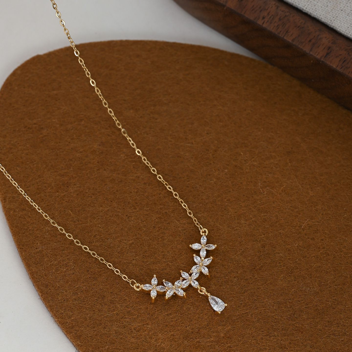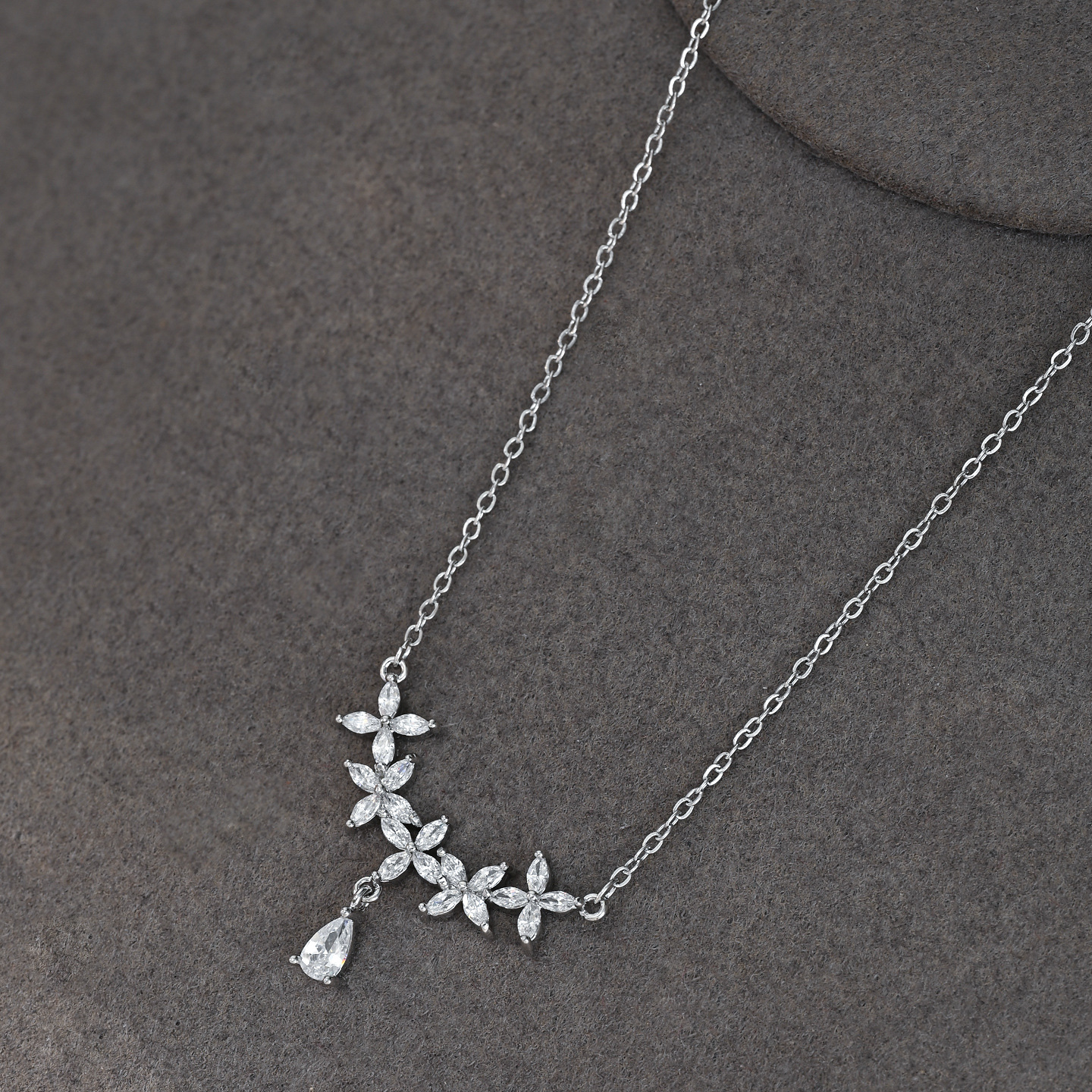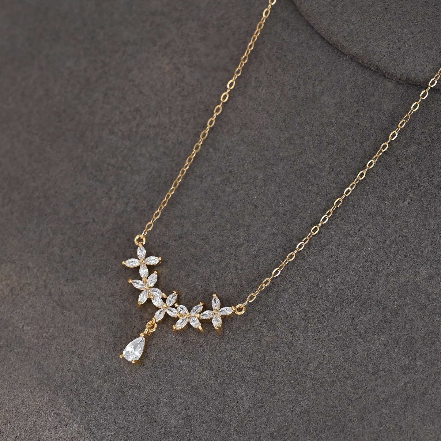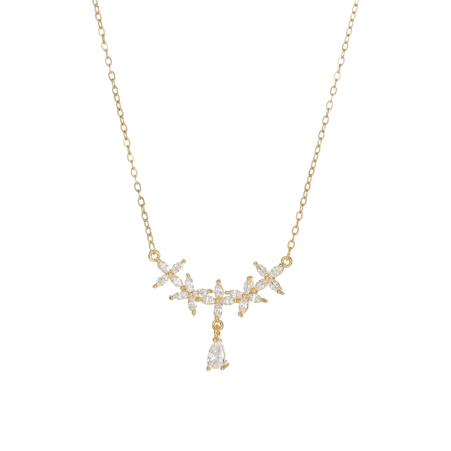 真金电镀微镶锆石气质锁骨链女小众设计感水滴吊坠项链秋冬毛衣链