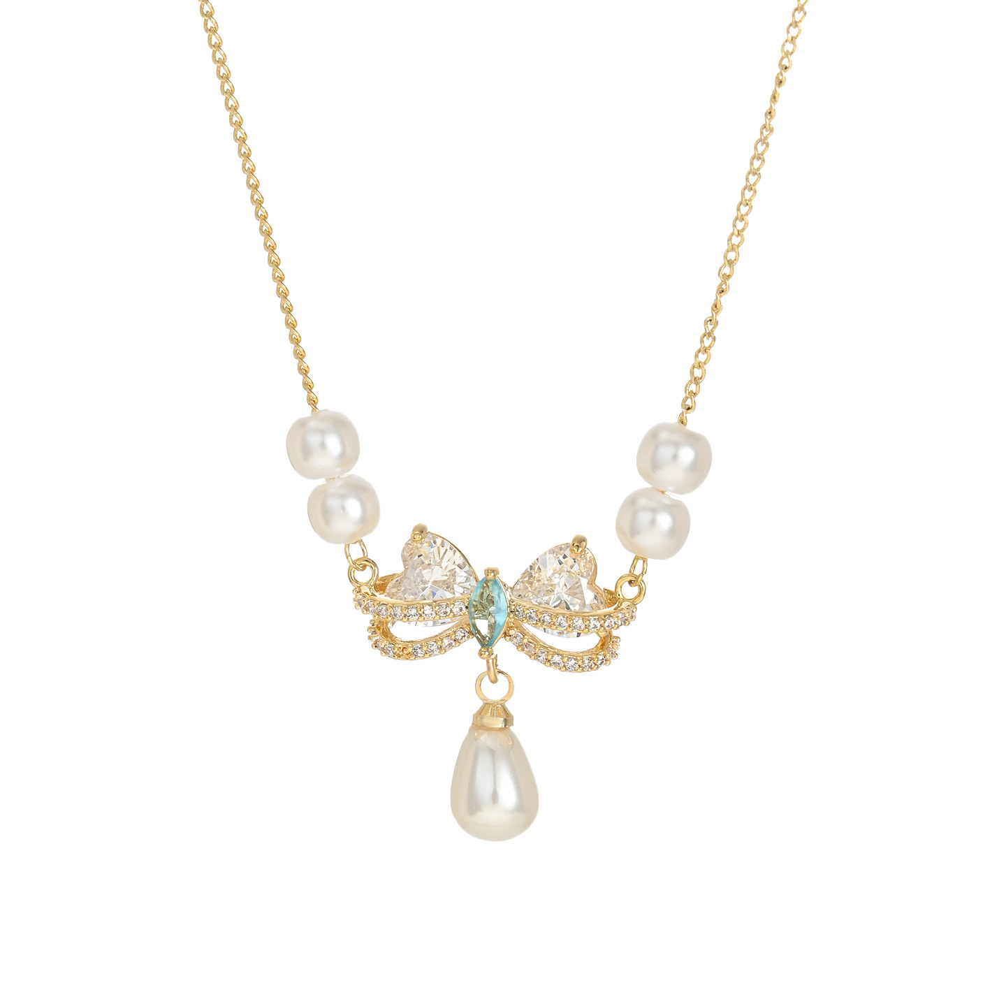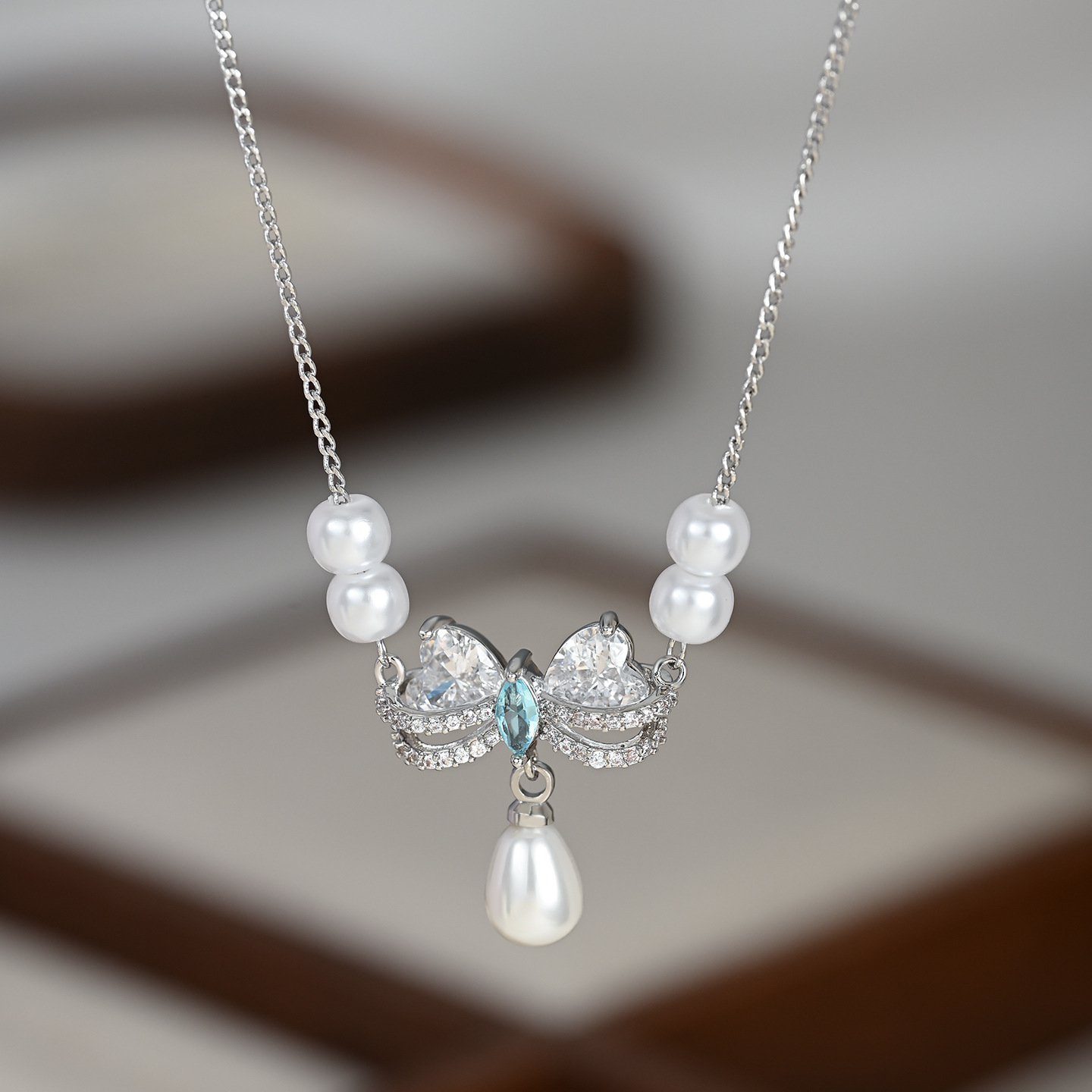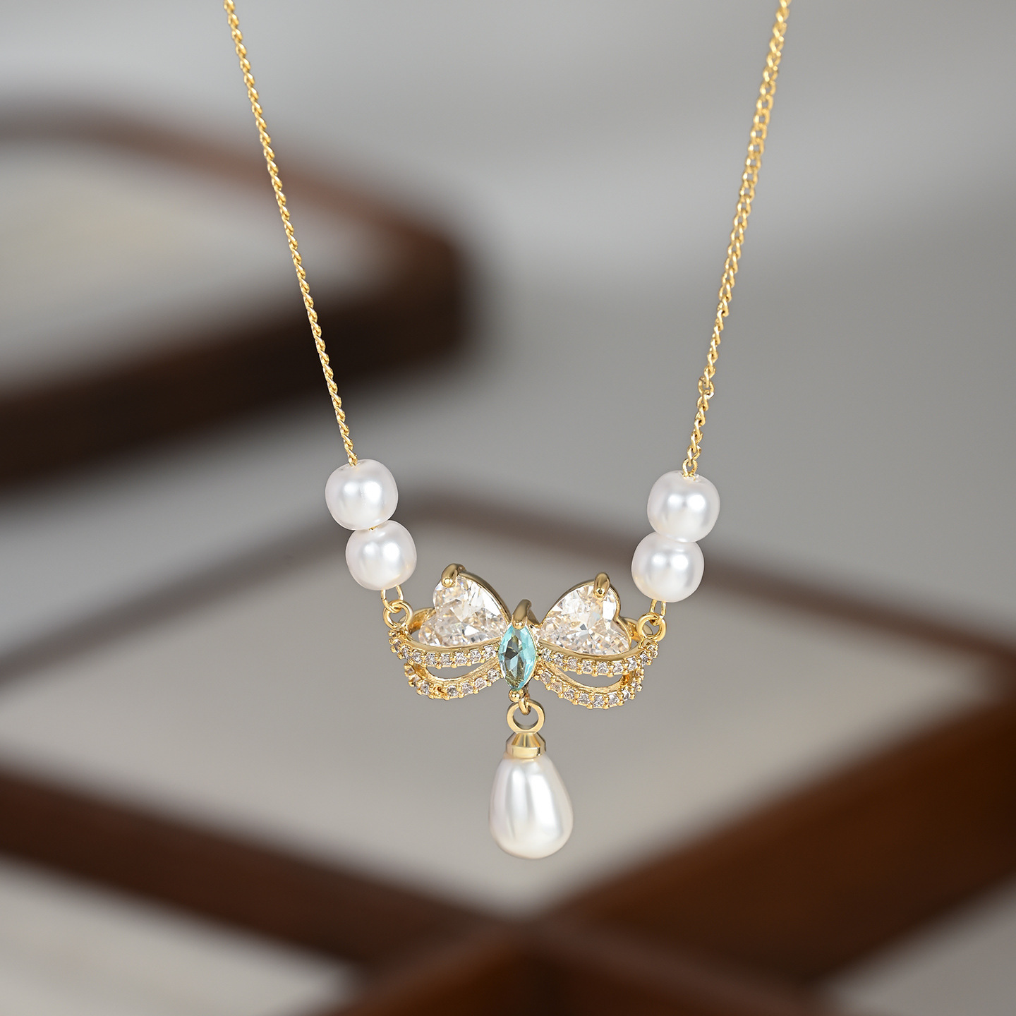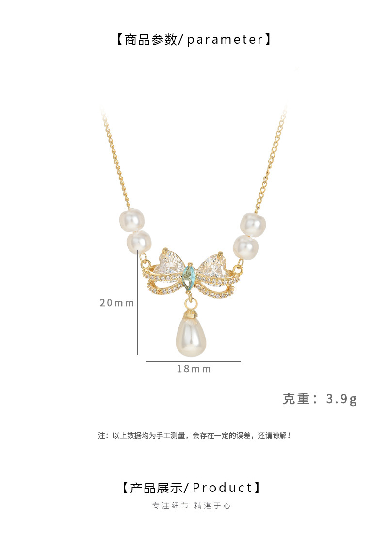 秋冬新款微镶锆石气质锁骨链女小众设计感复古法式珍珠蝴蝶结项链 English | 投诉