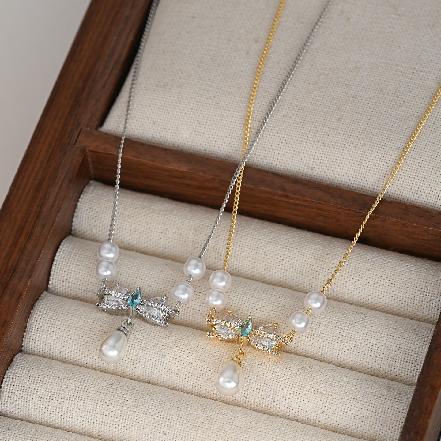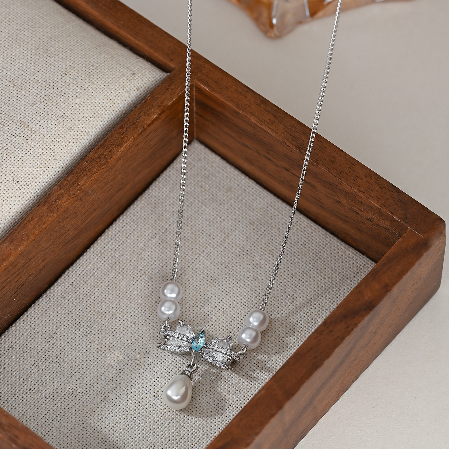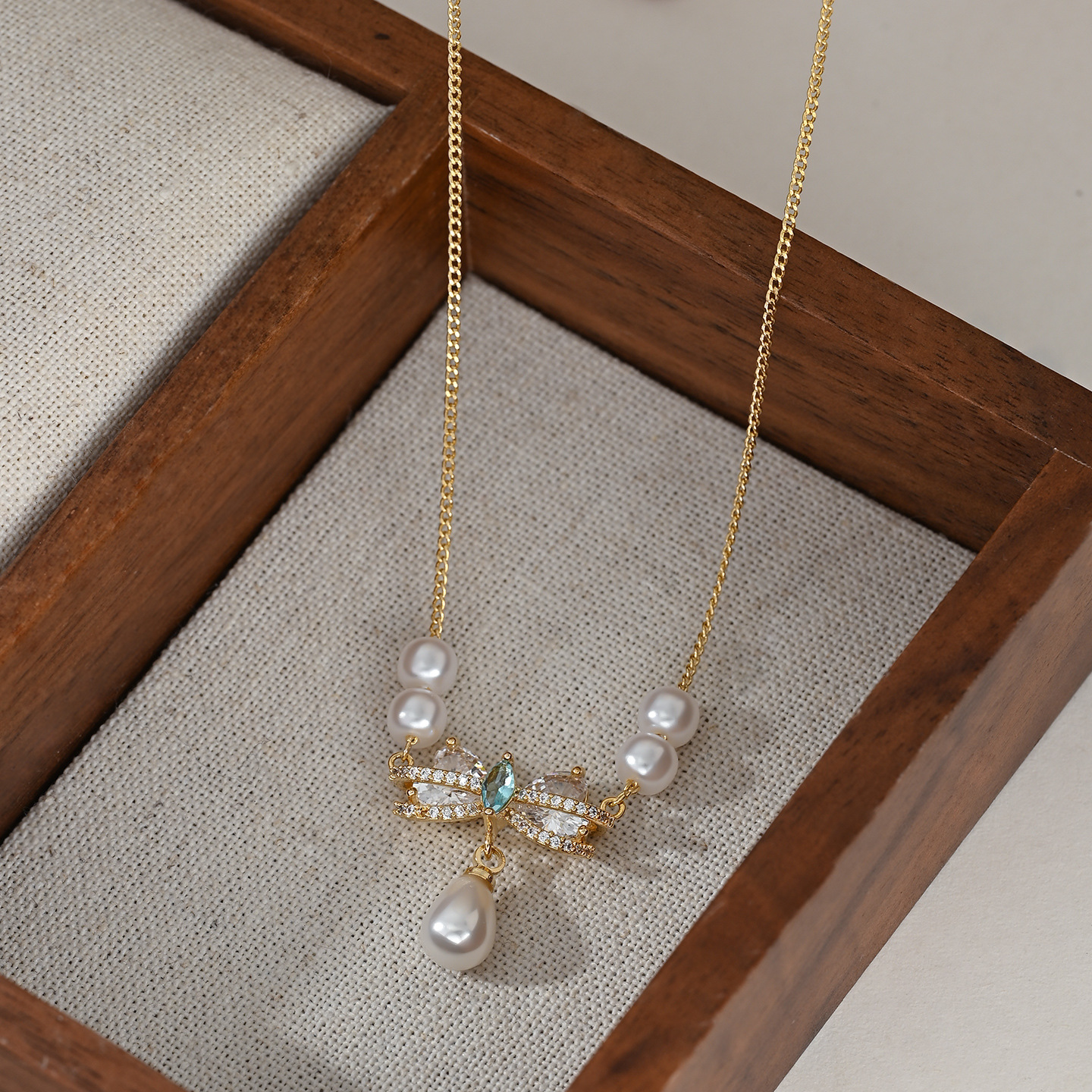 秋冬新款微镶锆石气质锁骨链女小众设计感复古法式珍珠蝴蝶结项链 English | 投诉
