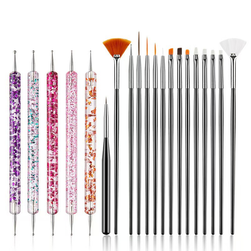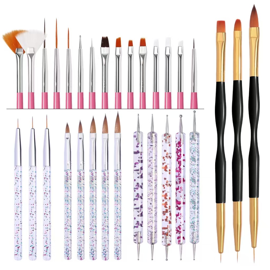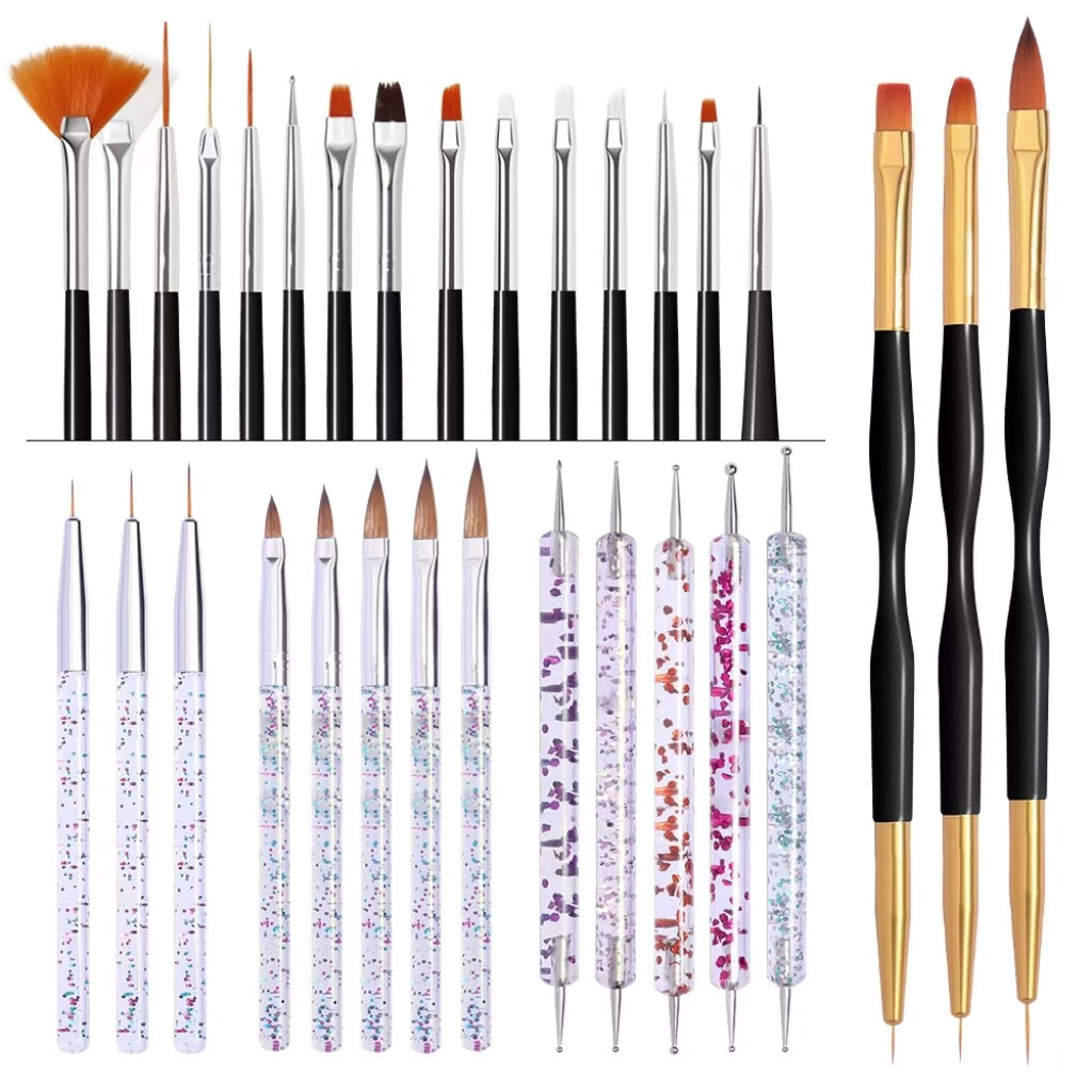 跨境新款美甲笔套装亮片杆点花针黑金小蛮腰亚克力点钻笔笔刷组合