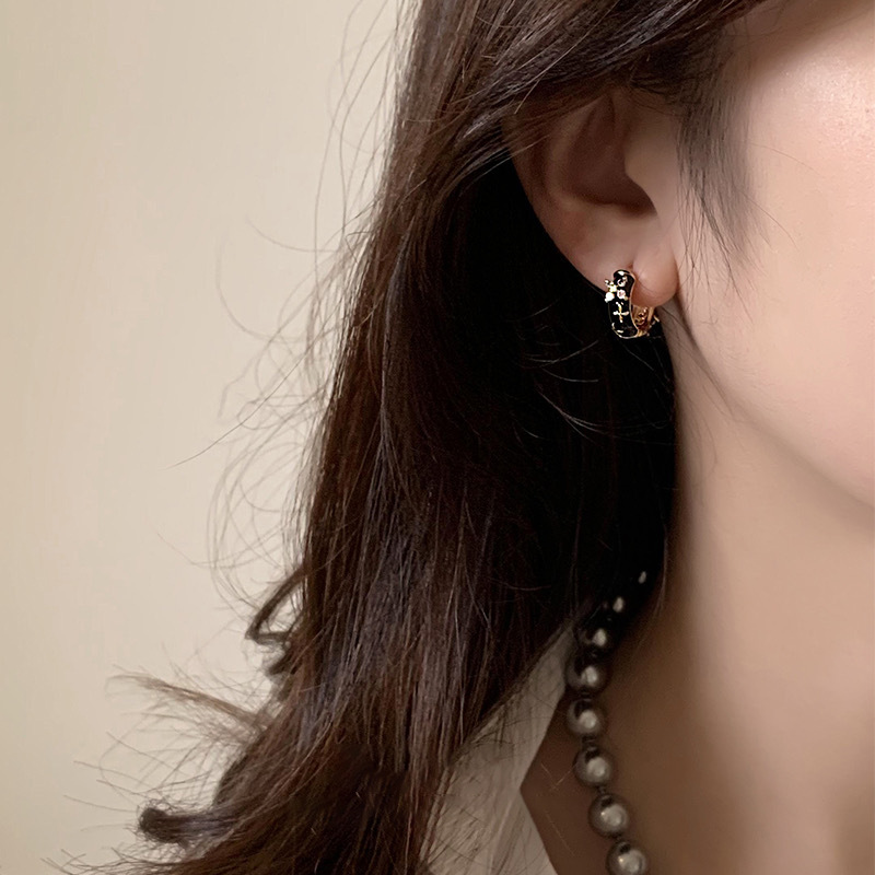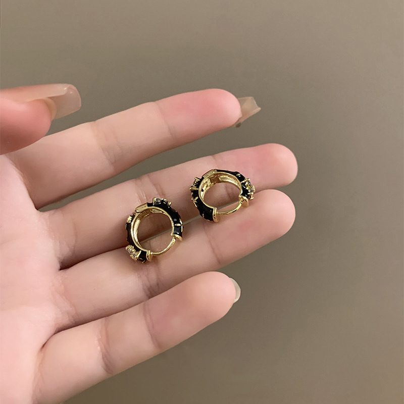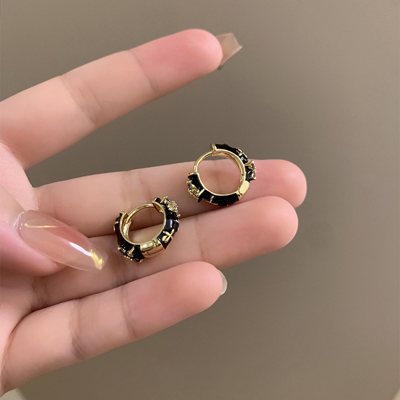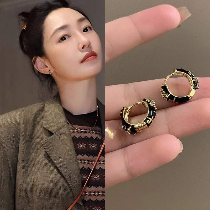 白百何同款黑色珐琅耳环小众设计感简约气质轻奢复古耳圈耳扣耳饰 English | 投诉