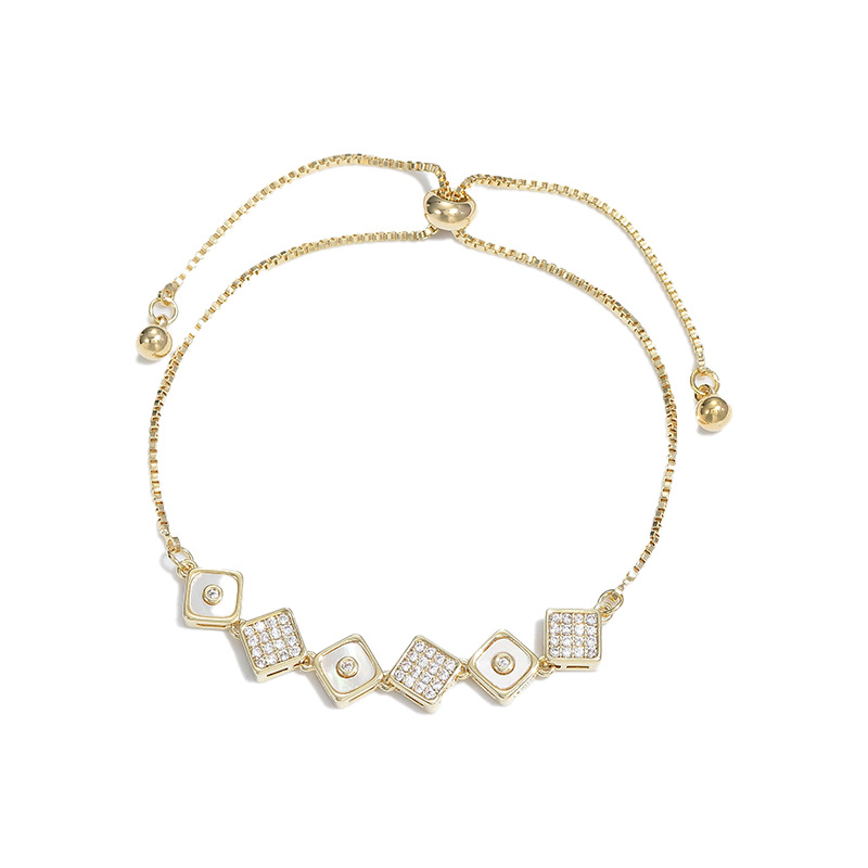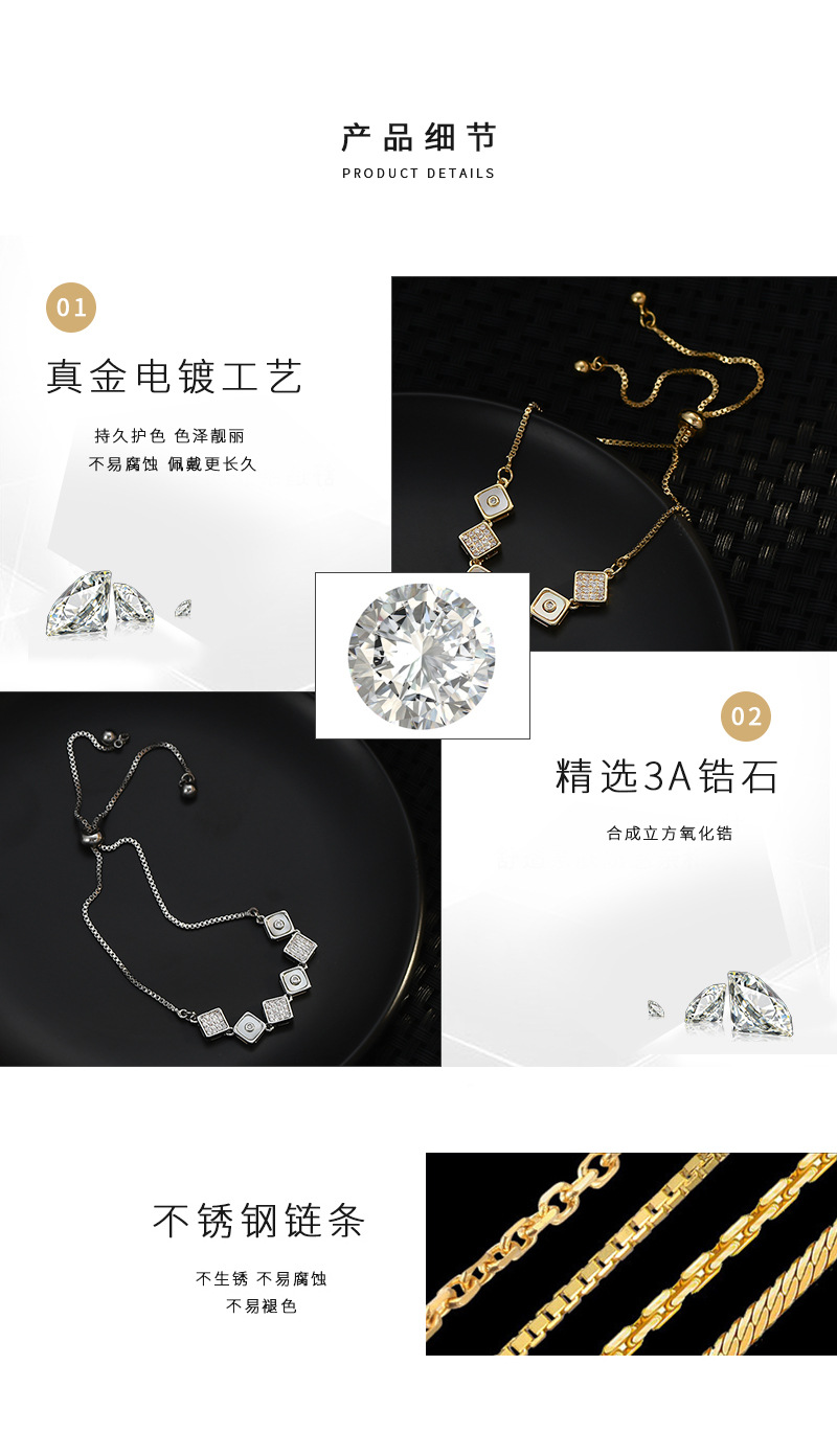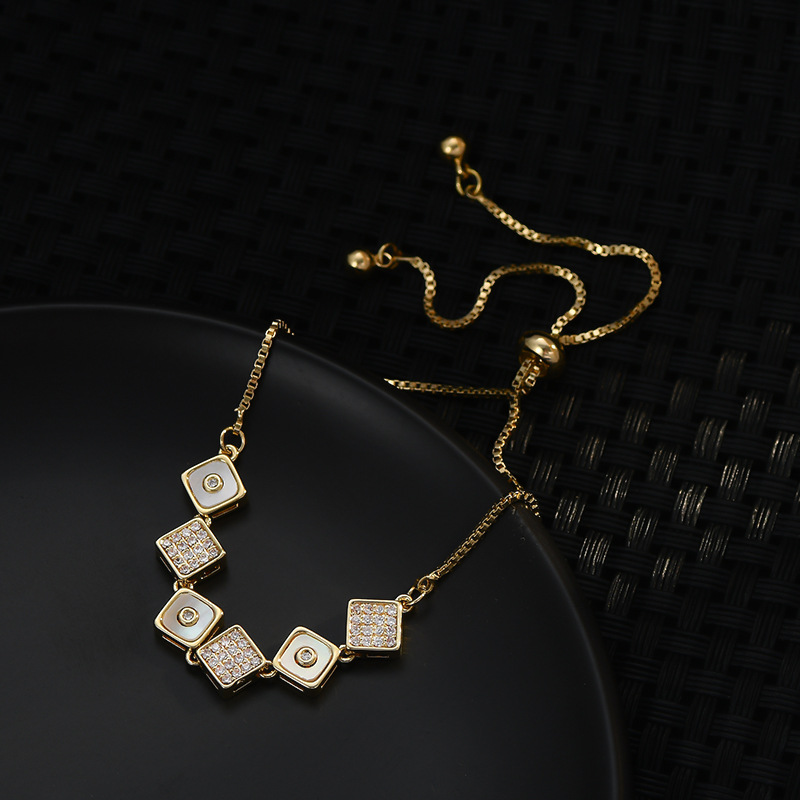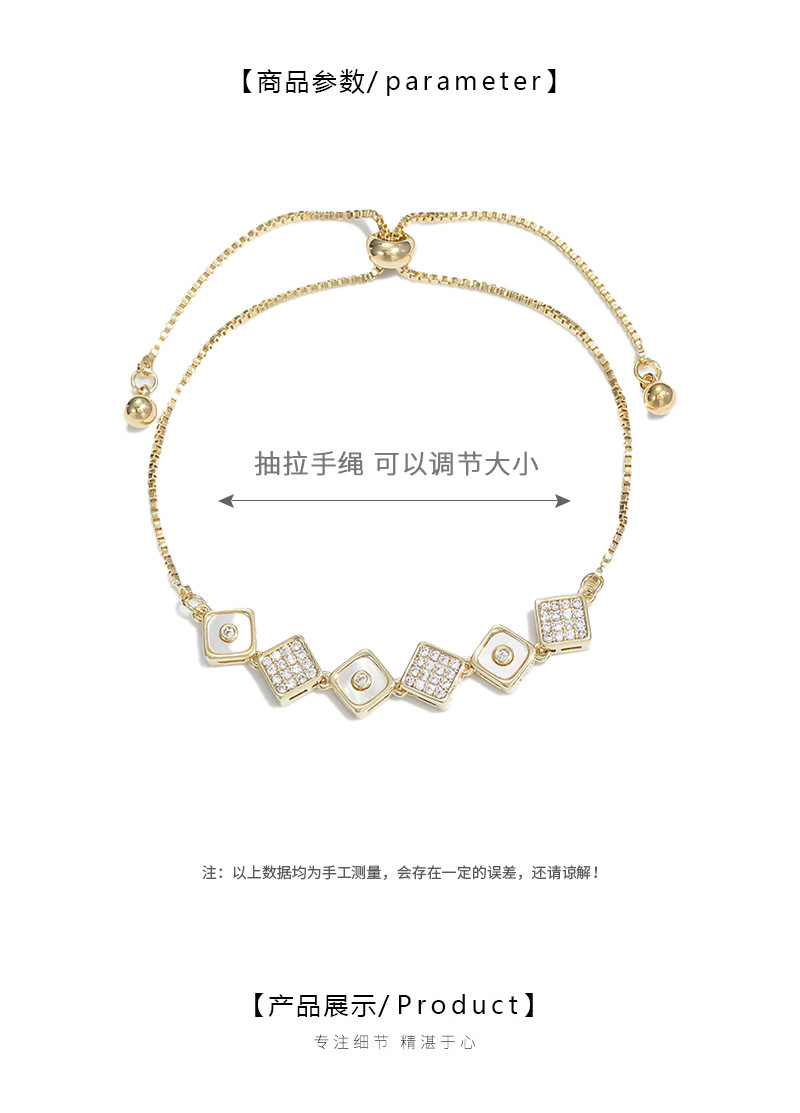 真金电镀镶锆石气质手链女高级感可调节抽拉贝壳手饰网红直播手镯 English | 投诉