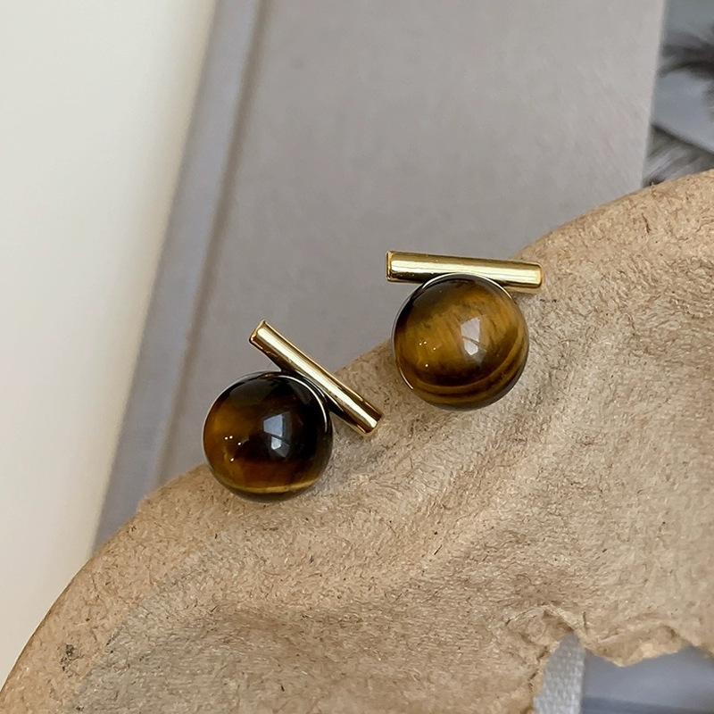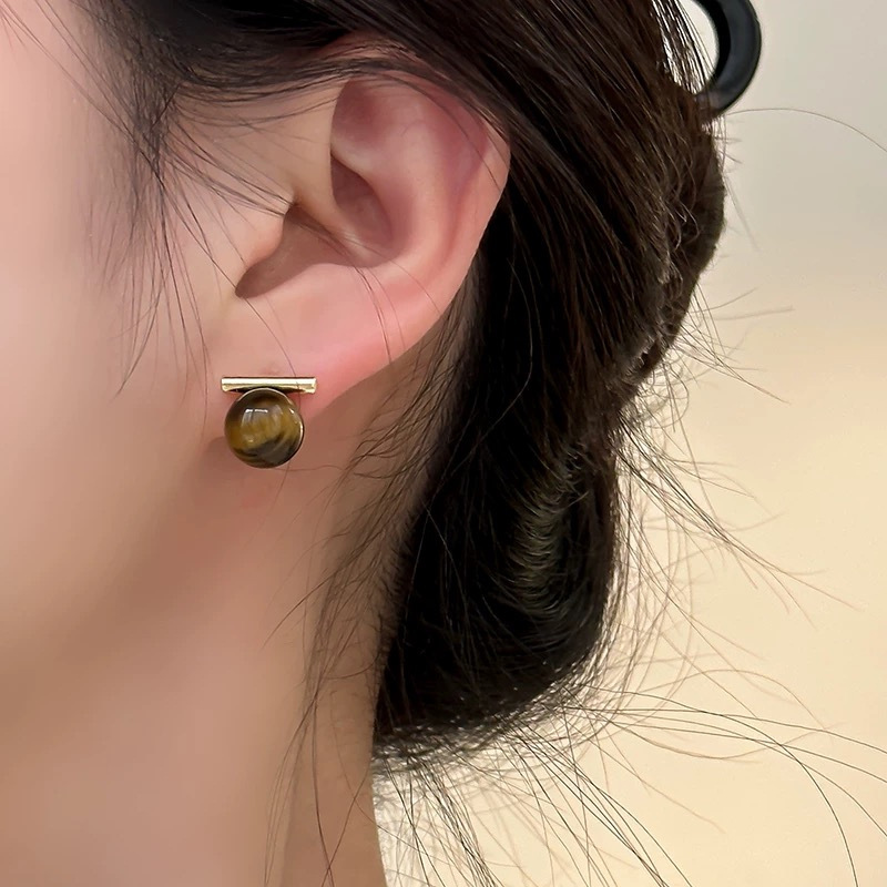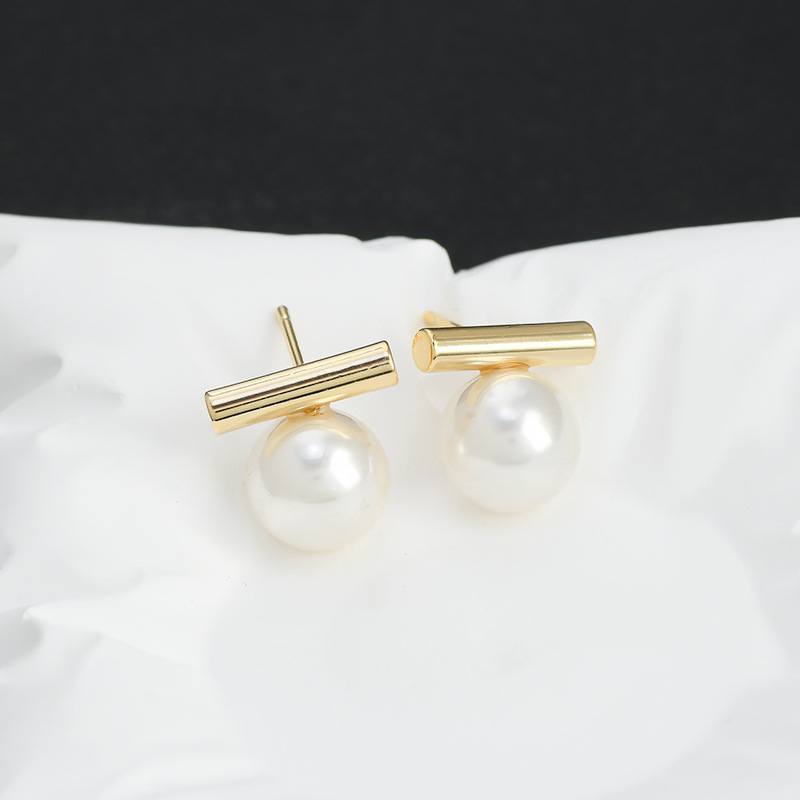 S925银针法式灰色珍珠一字金属耳钉复古简约气质耳环ins冷淡耳饰 English | 投诉