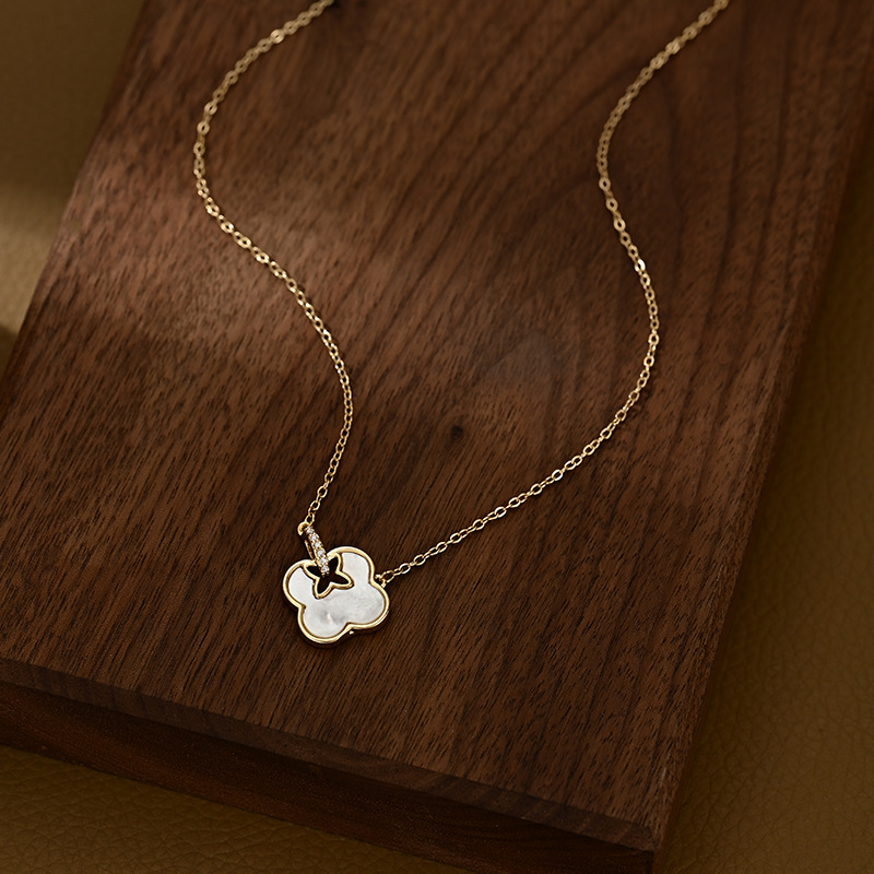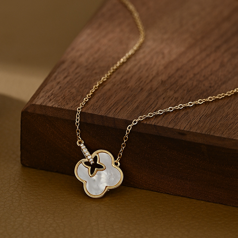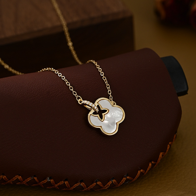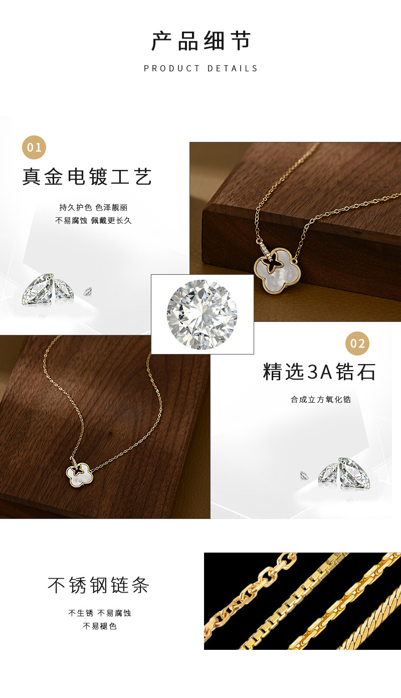 真金电镀微镶锆石气质锁骨链女高级设计感天然贝壳四叶草项链批发 English | 投诉