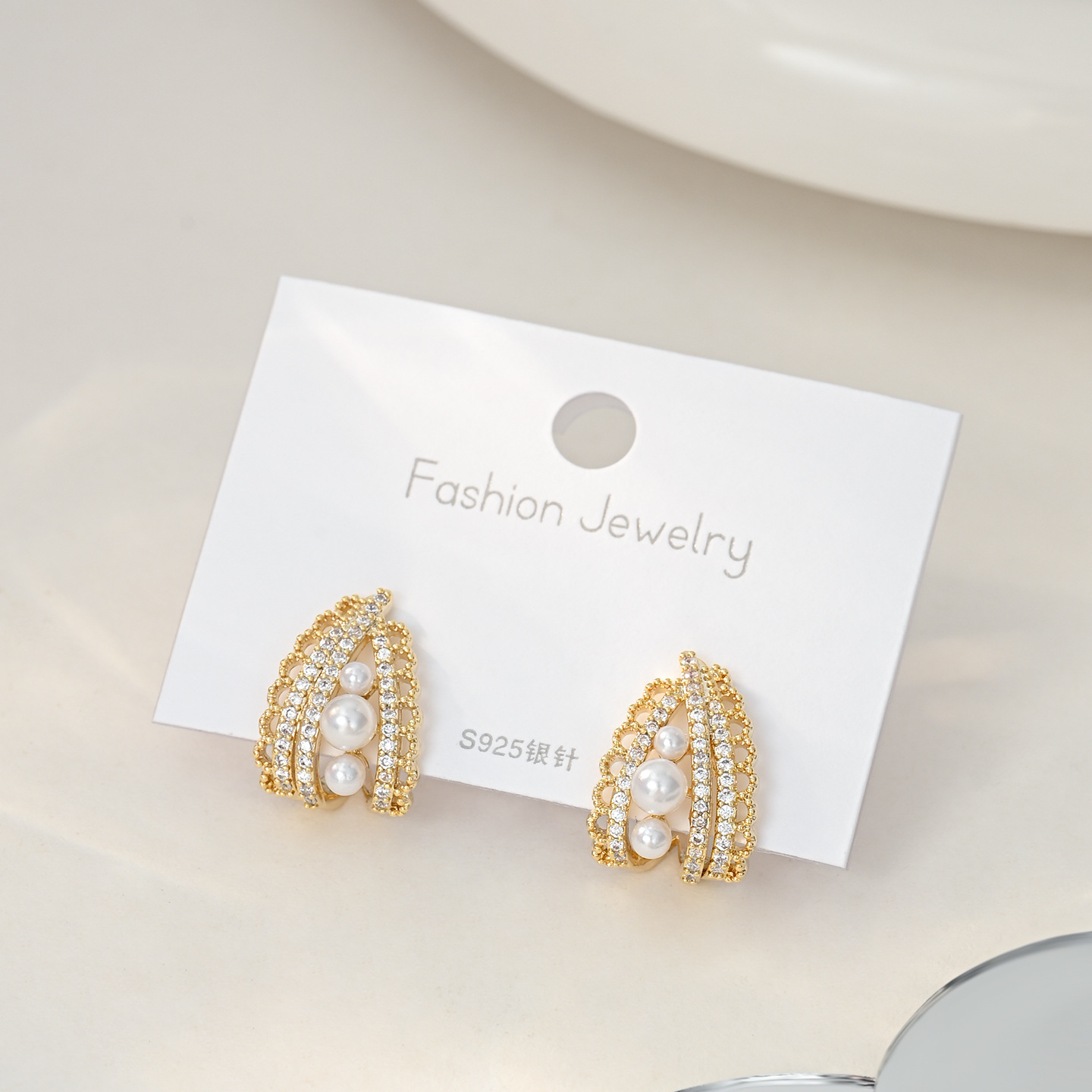 s925银珍珠耳钉轻奢高级感时尚百搭耳环设计感小众简约气质耳饰品 English | 投诉