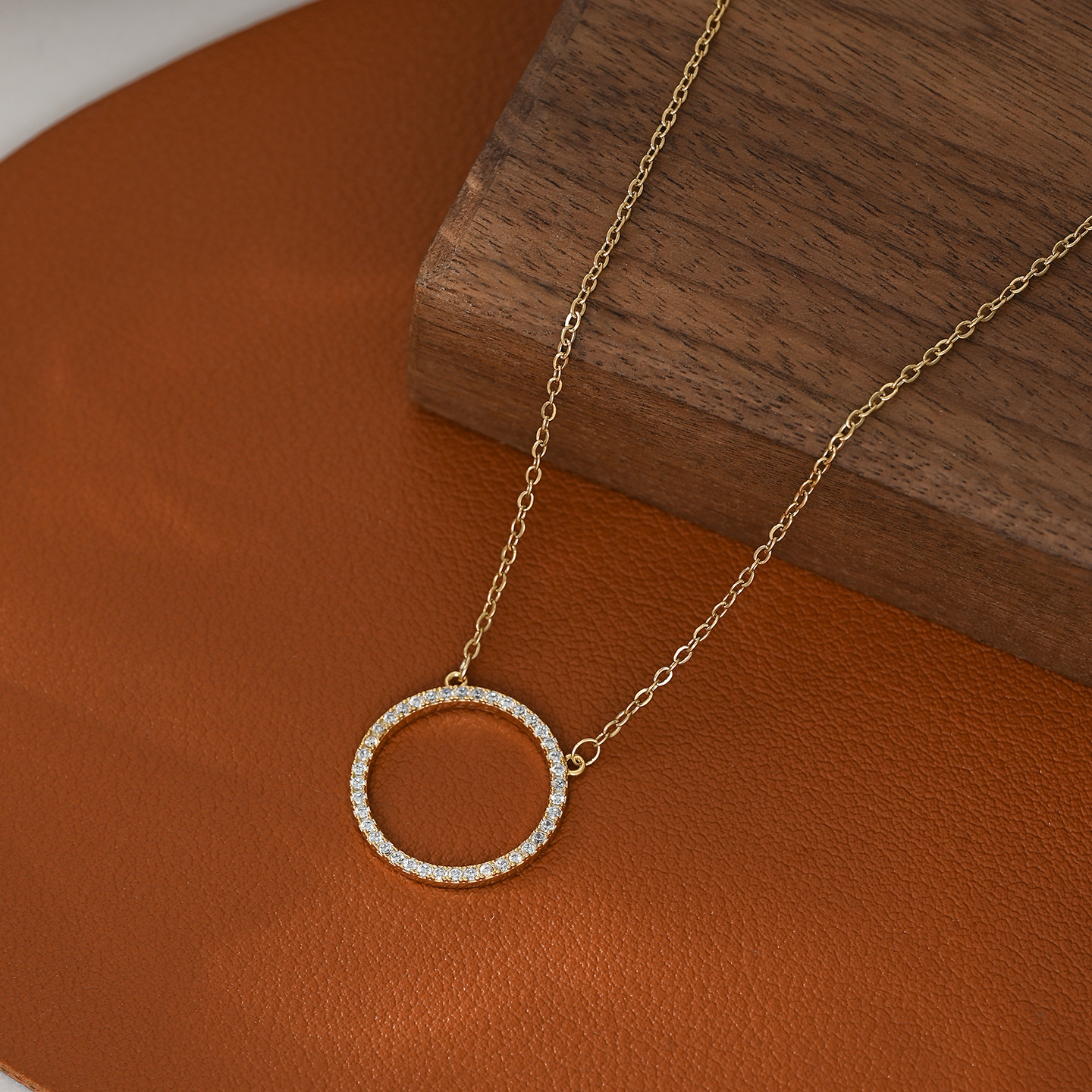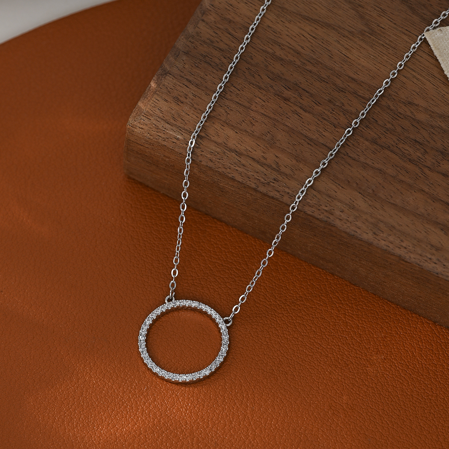欧美跨境几何设计圆圈满钻个性项链女简约气质锁骨链时尚通勤项饰