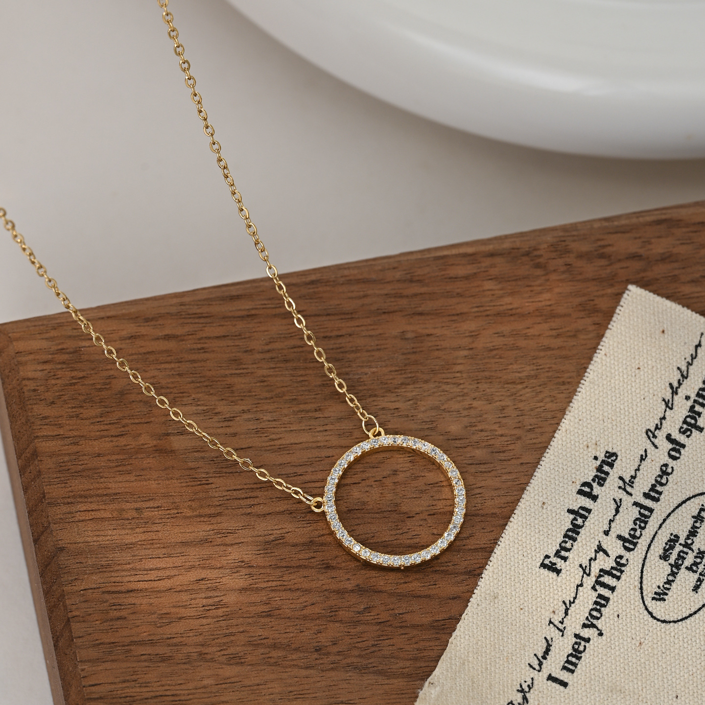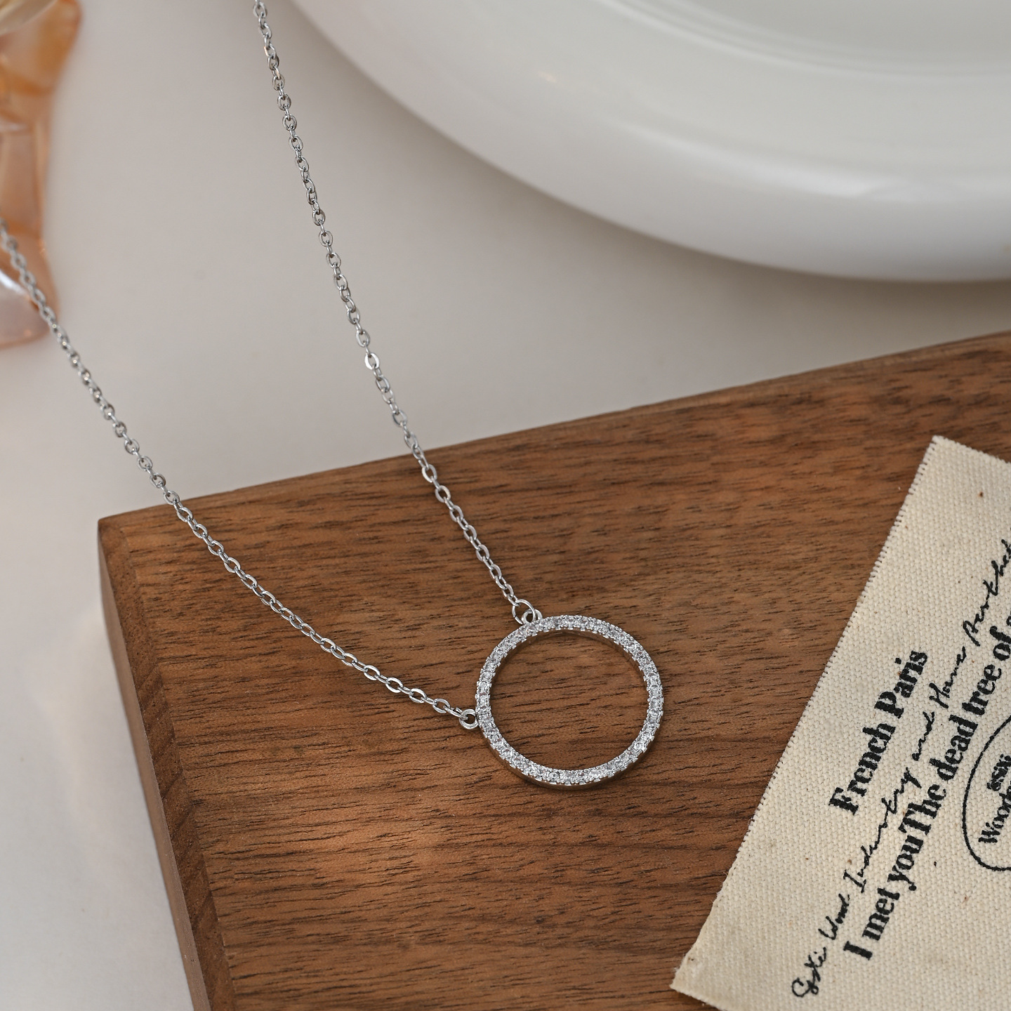 欧美跨境几何设计圆圈满钻个性项链女简约气质锁骨链时尚通勤项饰 English | 投诉