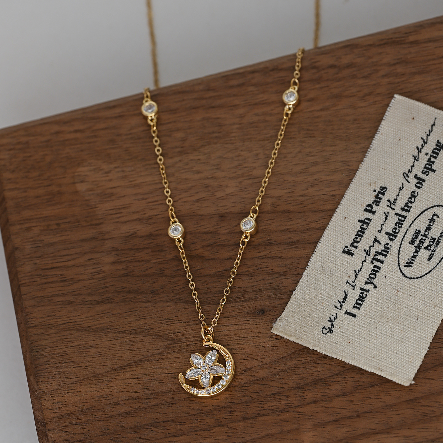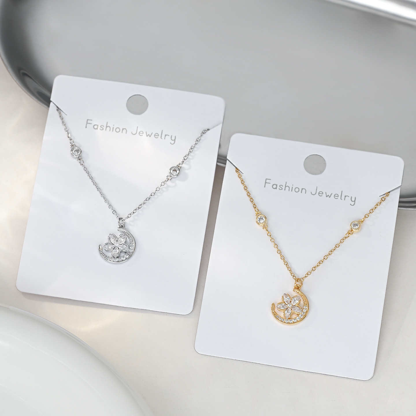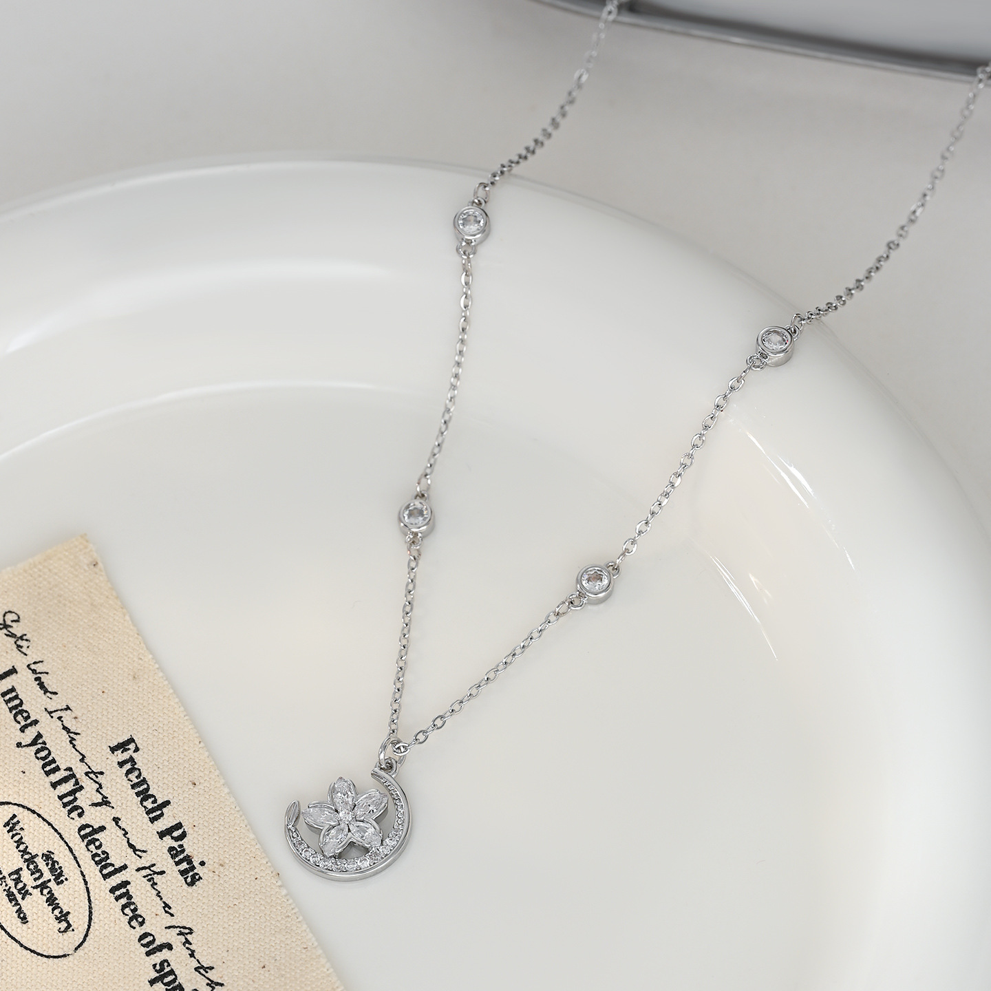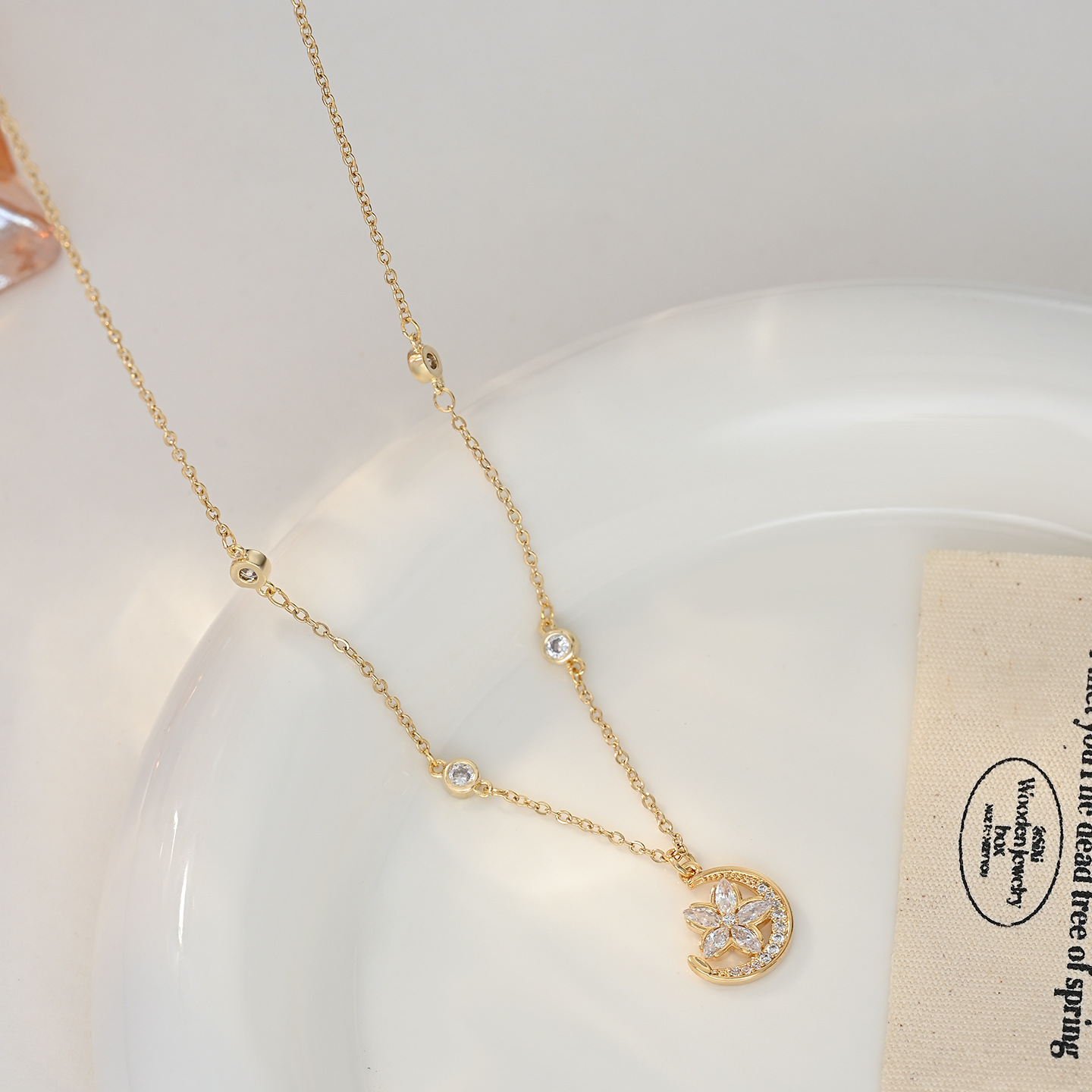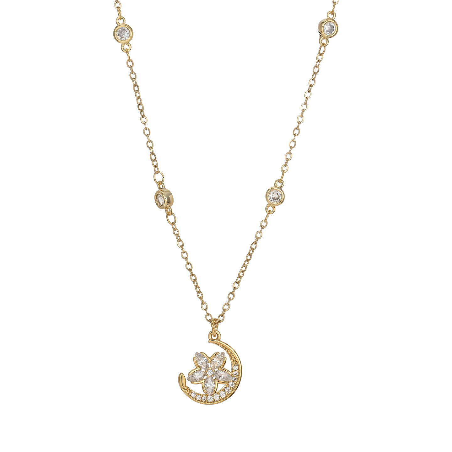 微镶锆石月亮花朵吊坠项链小众精致时尚高级感百搭锁骨链配饰批发 English | 投诉