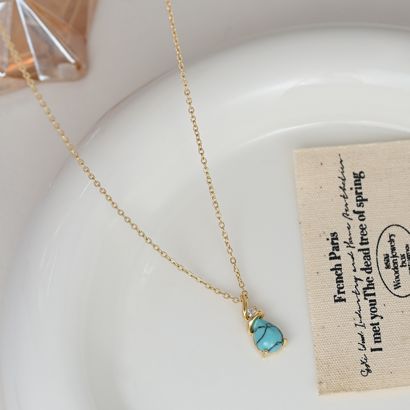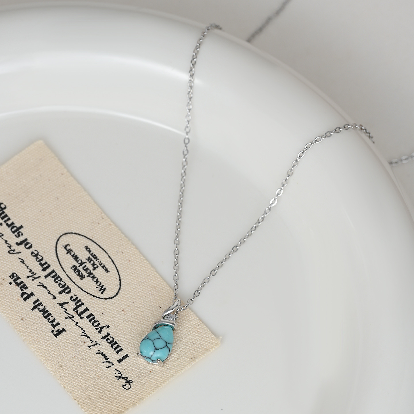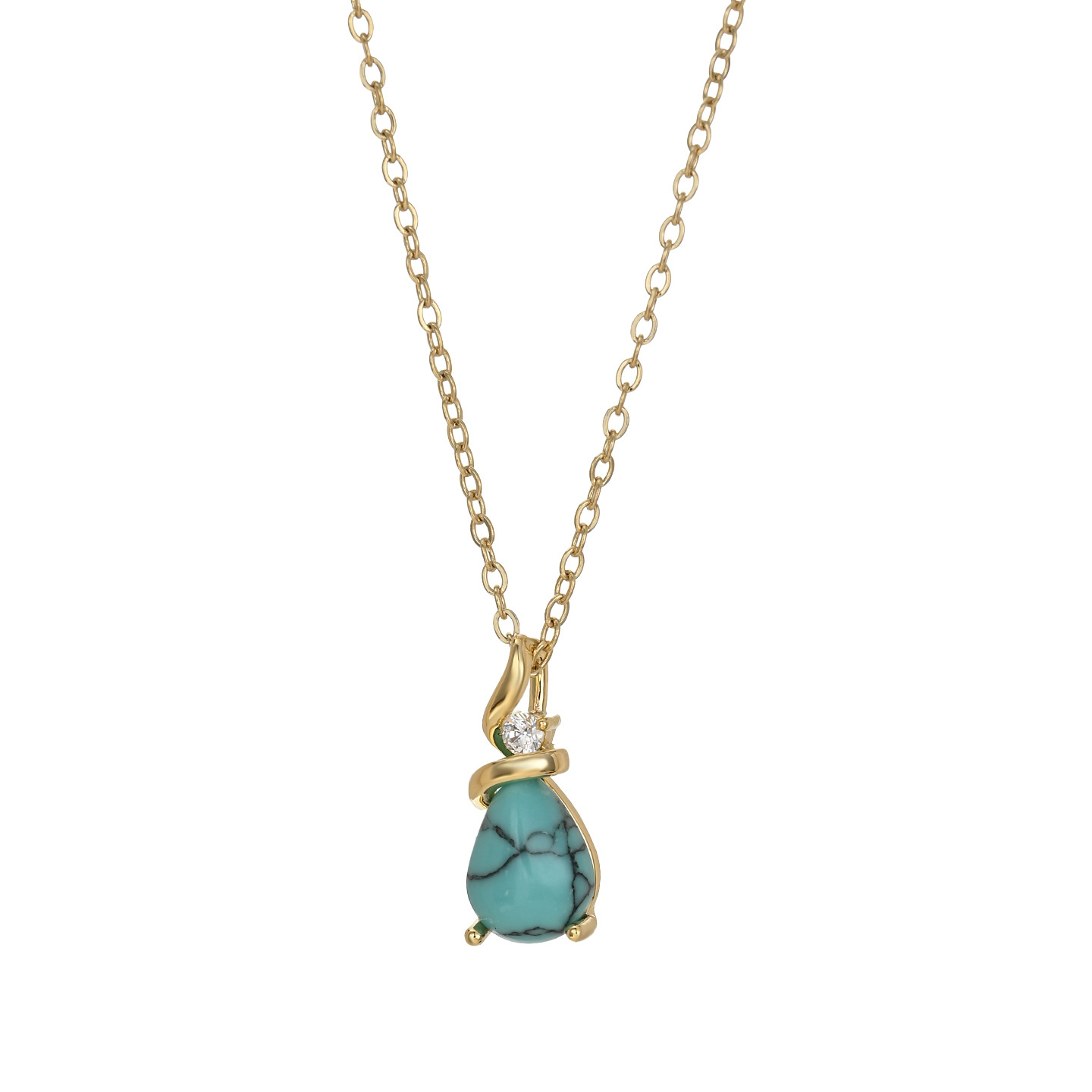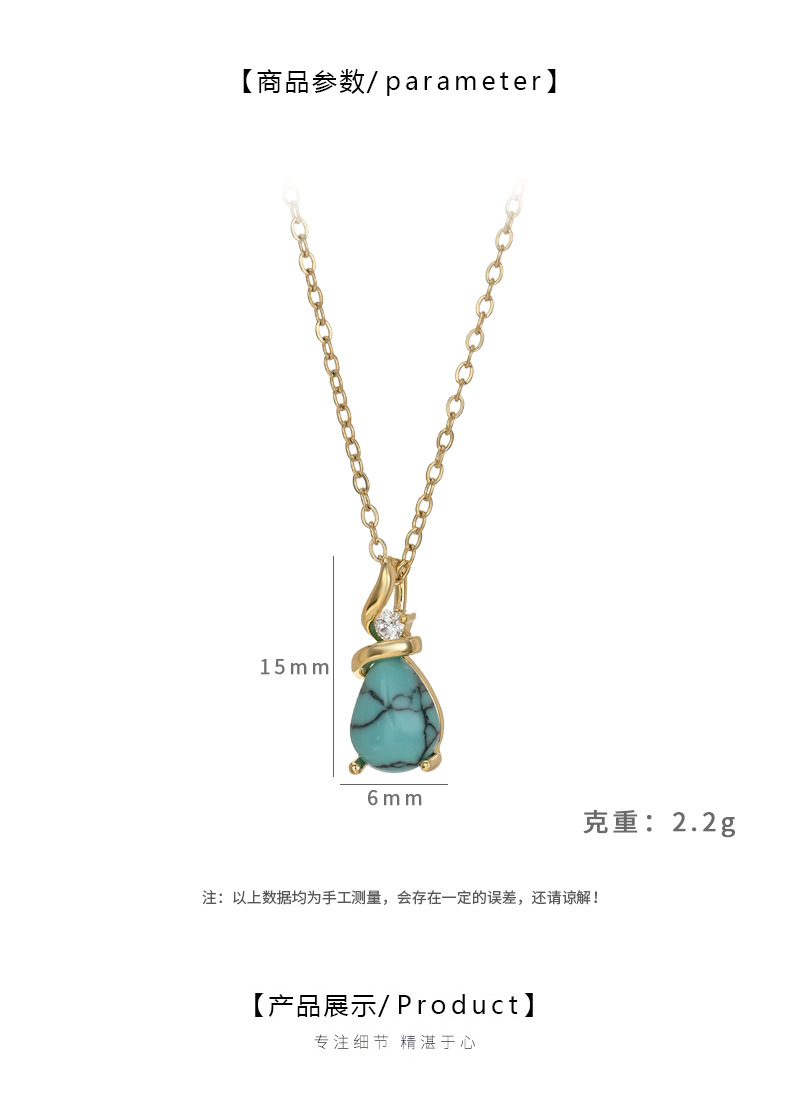 跨境水滴绿松石椭圆吊坠项链女小众轻奢高级感锁骨链时尚百搭 English | 投诉