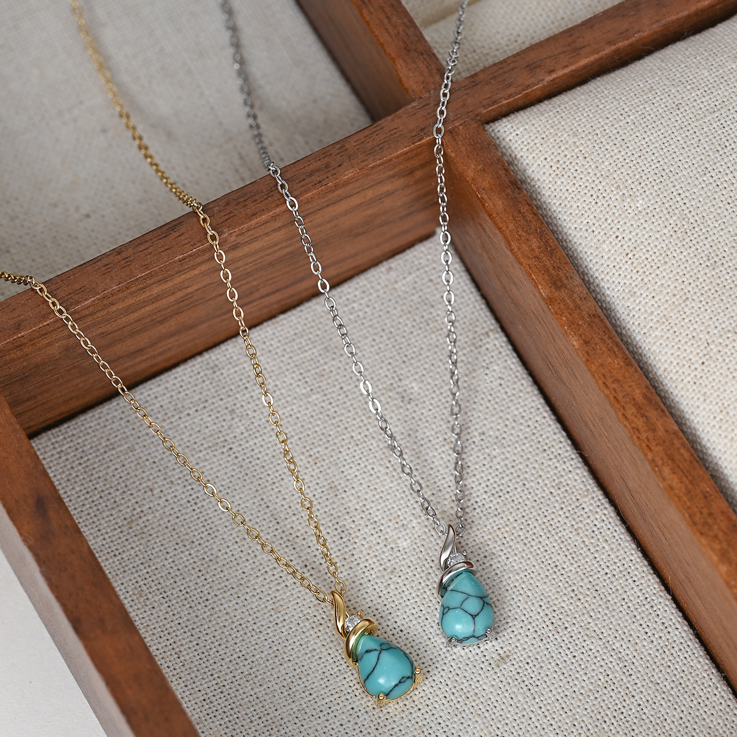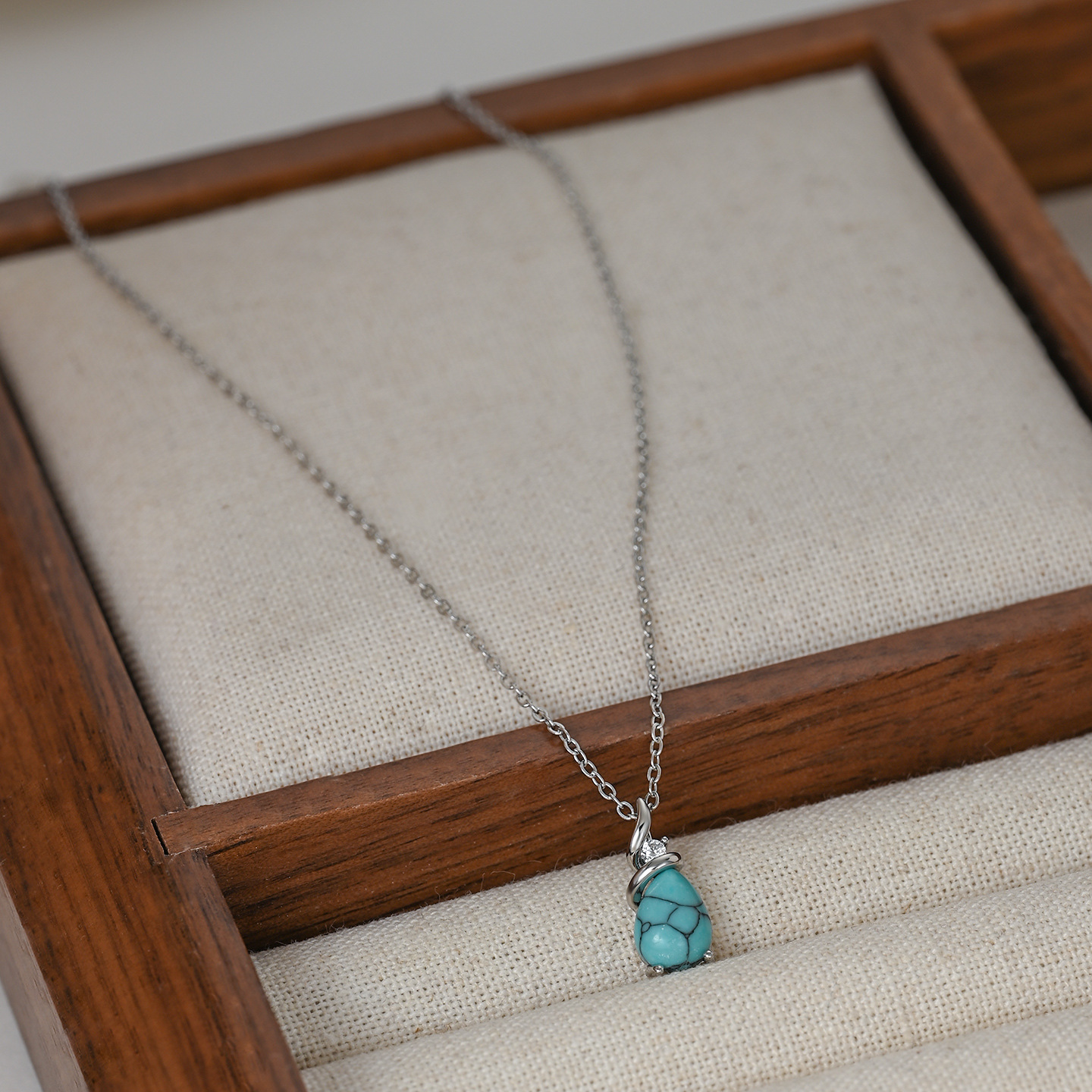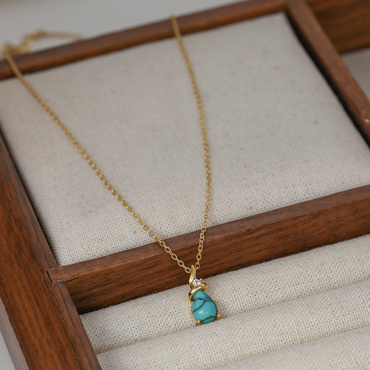 跨境水滴绿松石椭圆吊坠项链女小众轻奢高级感锁骨链时尚百搭 English | 投诉