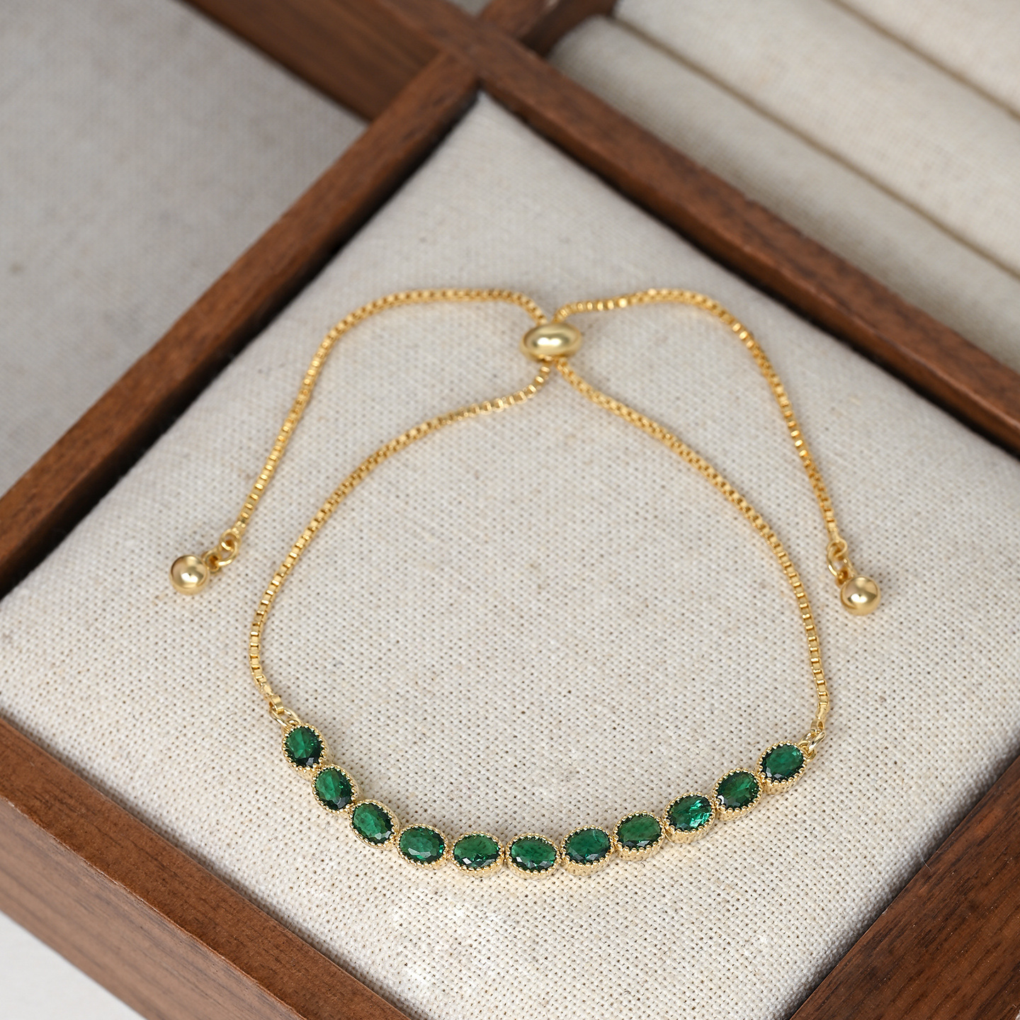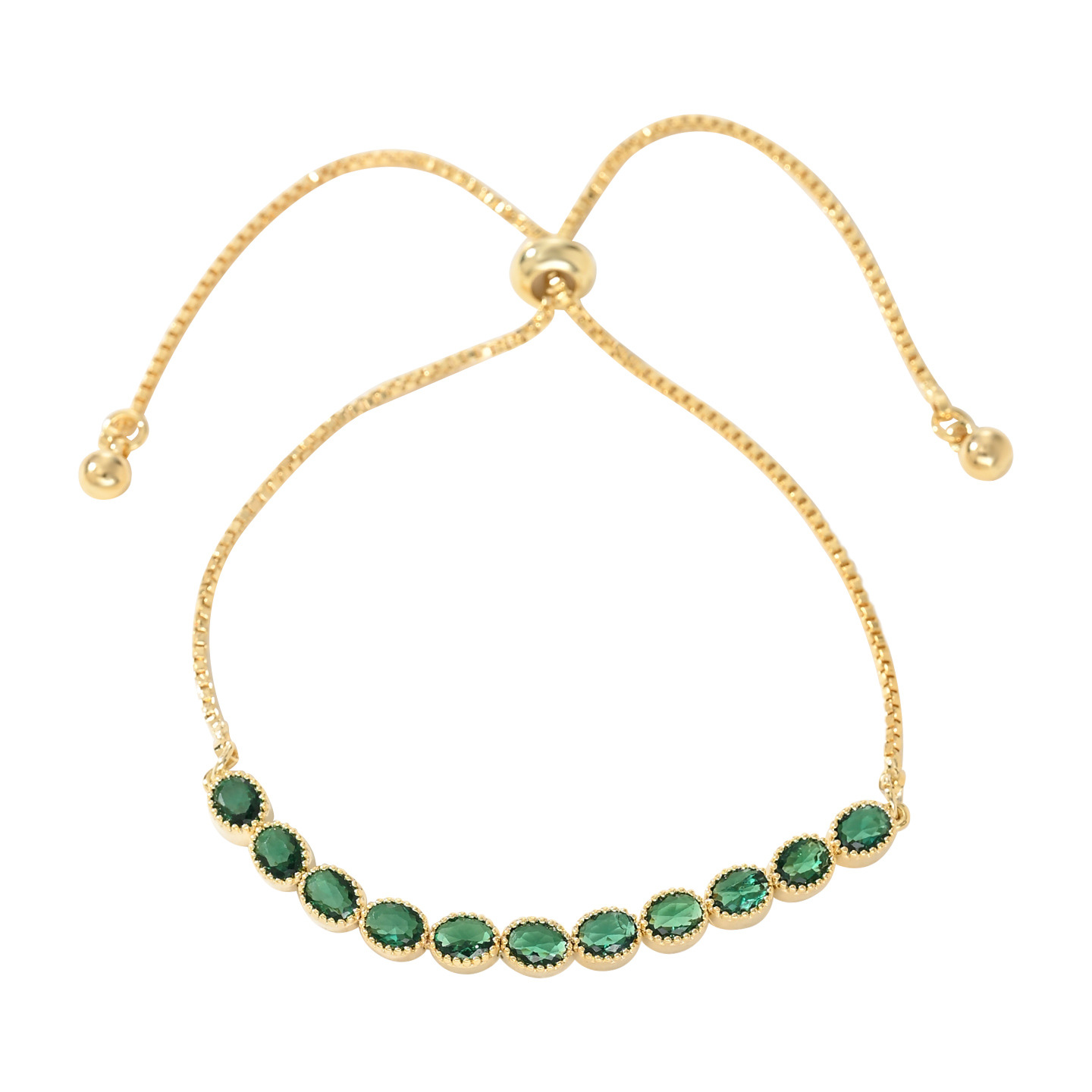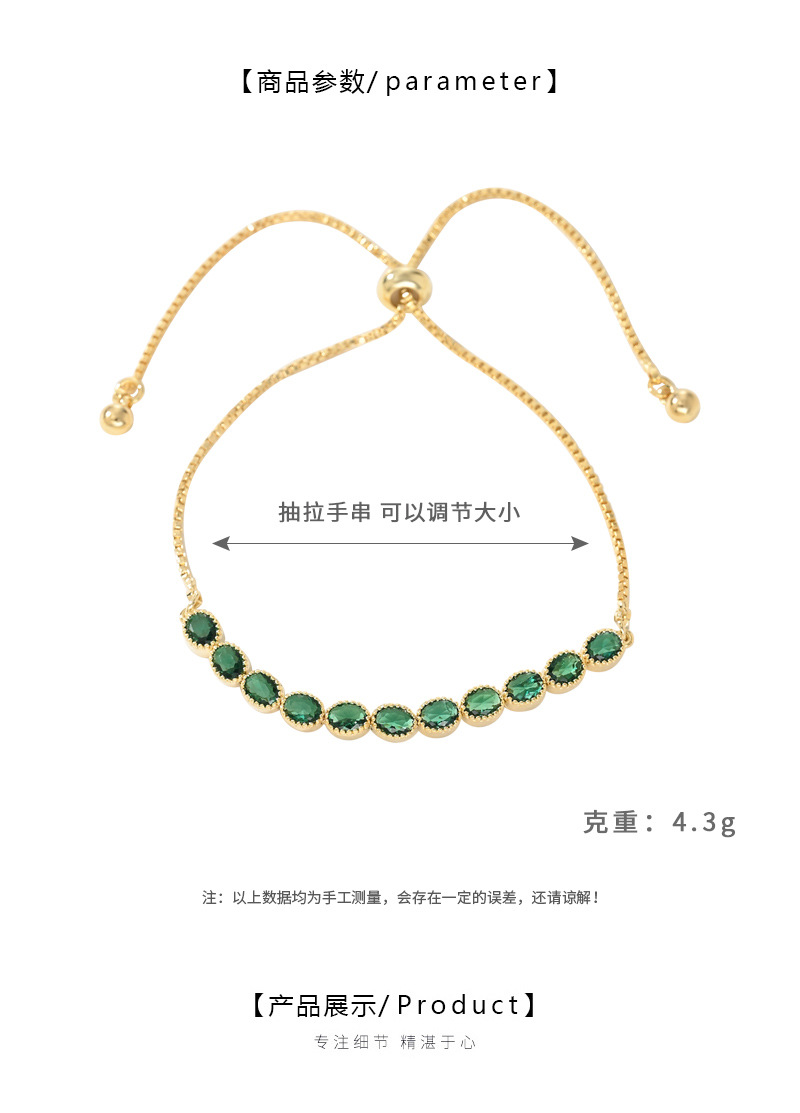 2025年新款韩版时尚锆石手饰品女小众设计感可调节祖母绿手链 English | 投诉