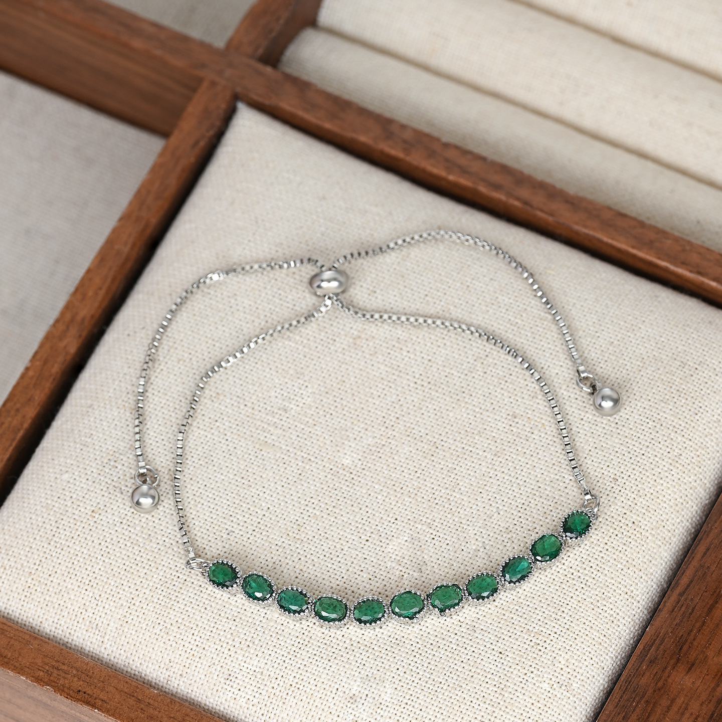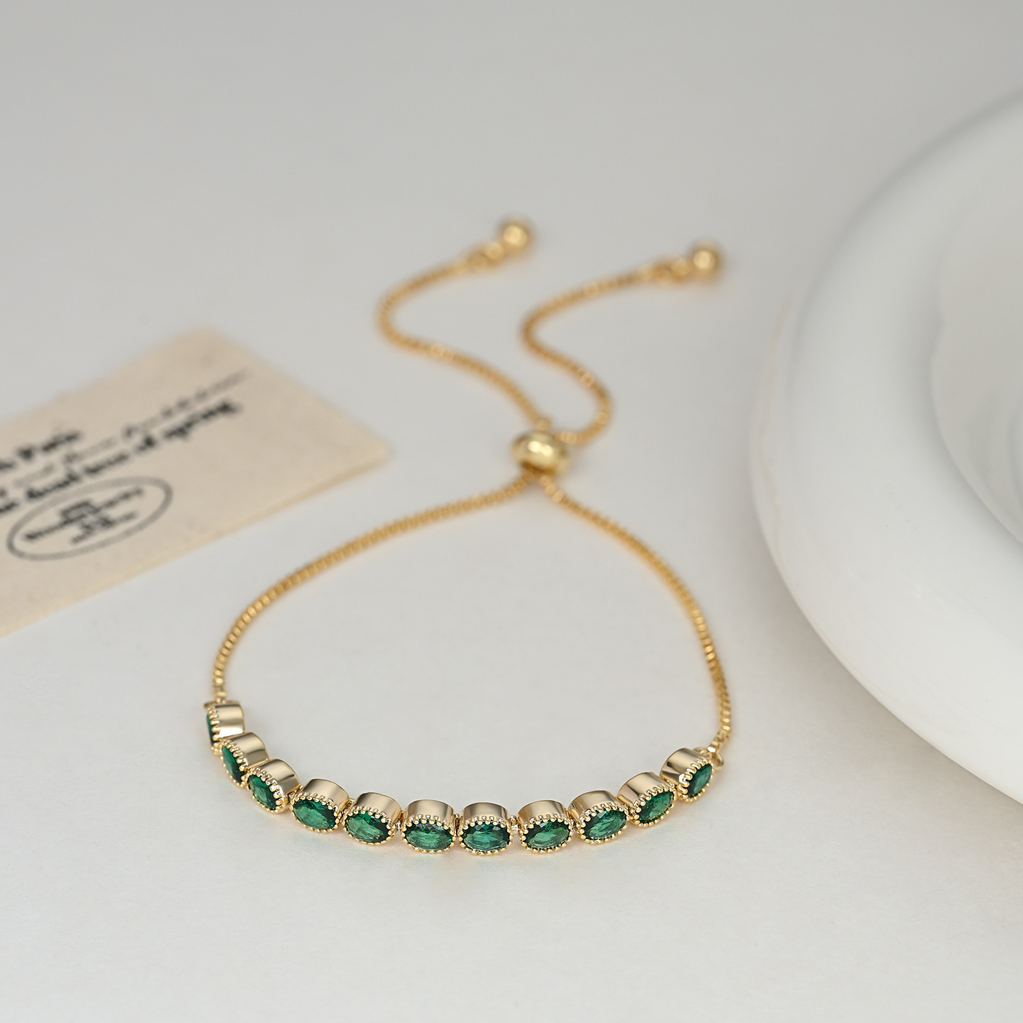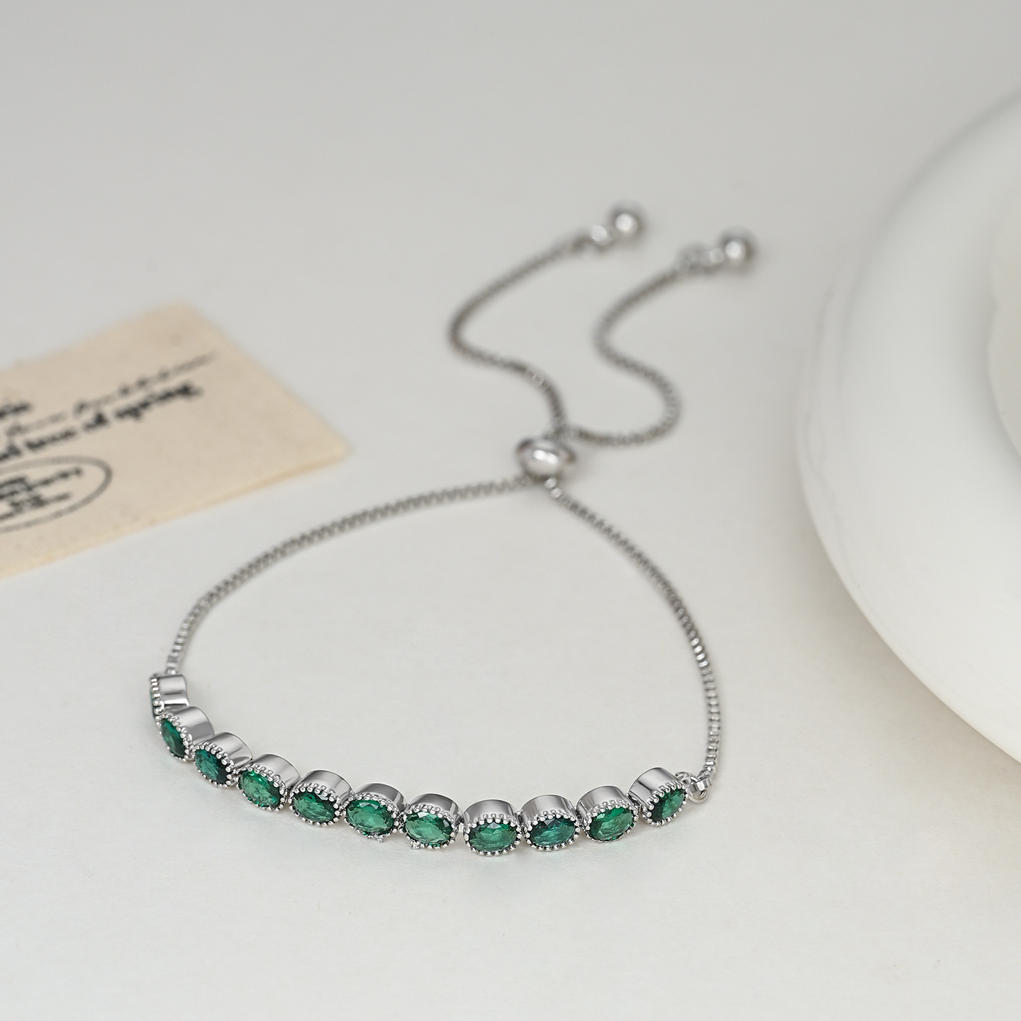 2025年新款韩版时尚锆石手饰品女小众设计感可调节祖母绿手链 English | 投诉