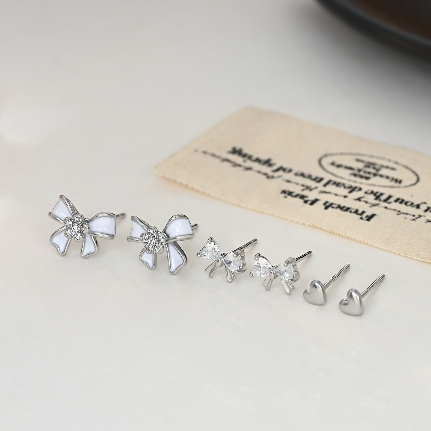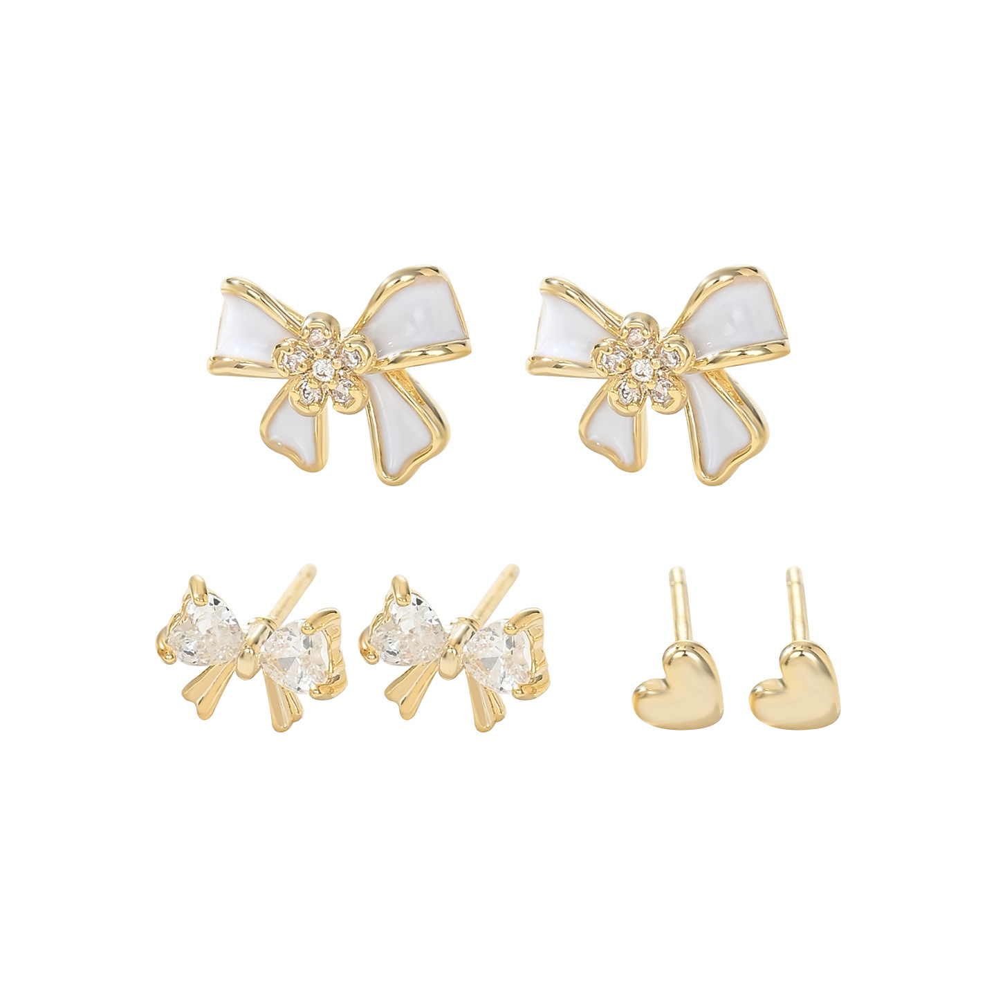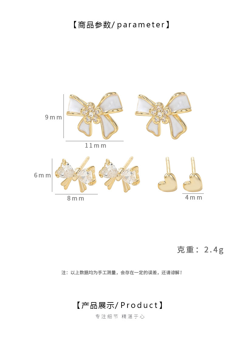 时尚小巧精致高级感蝴蝶结一卡三对装耳环耳钉s925银针耳饰品批发 English | 投诉