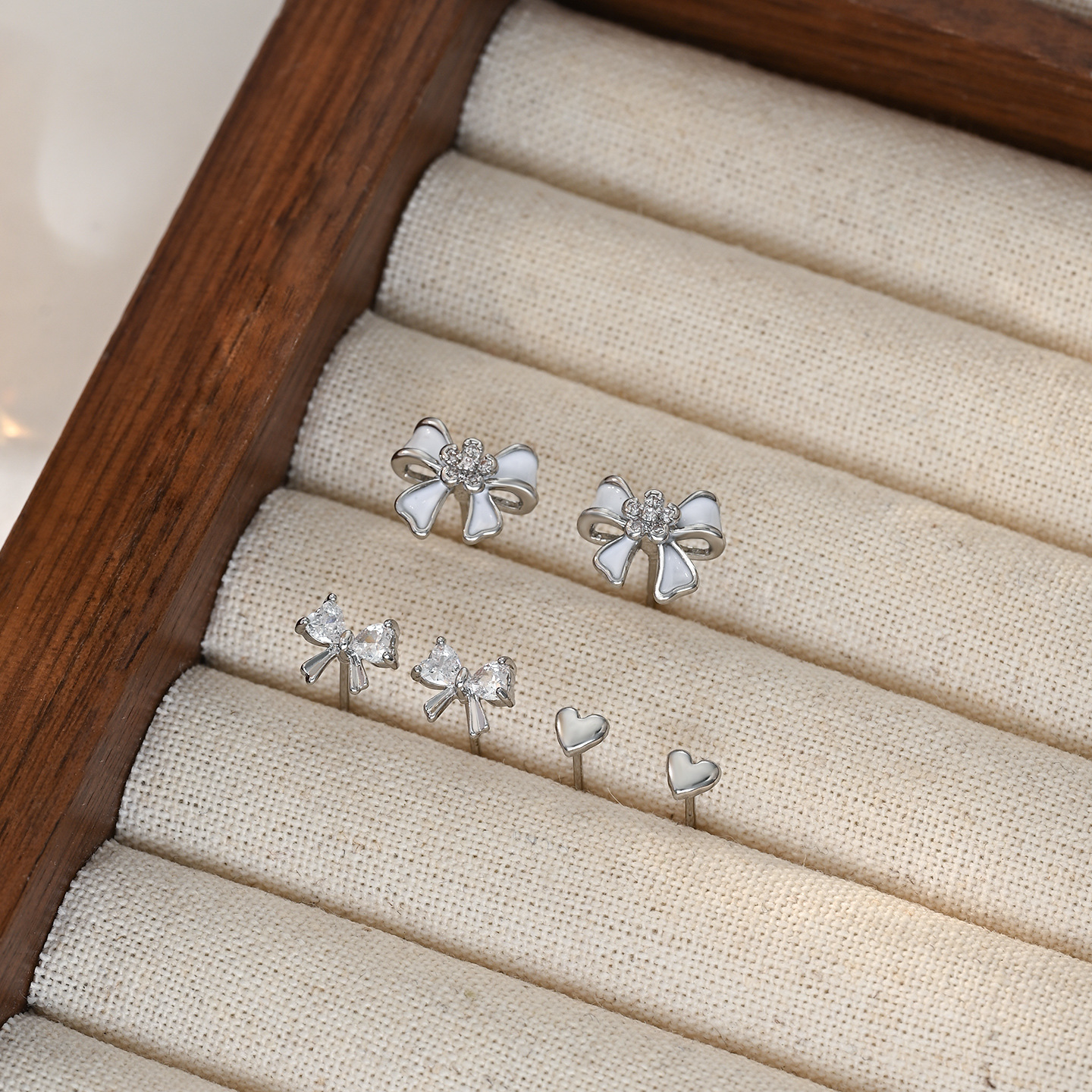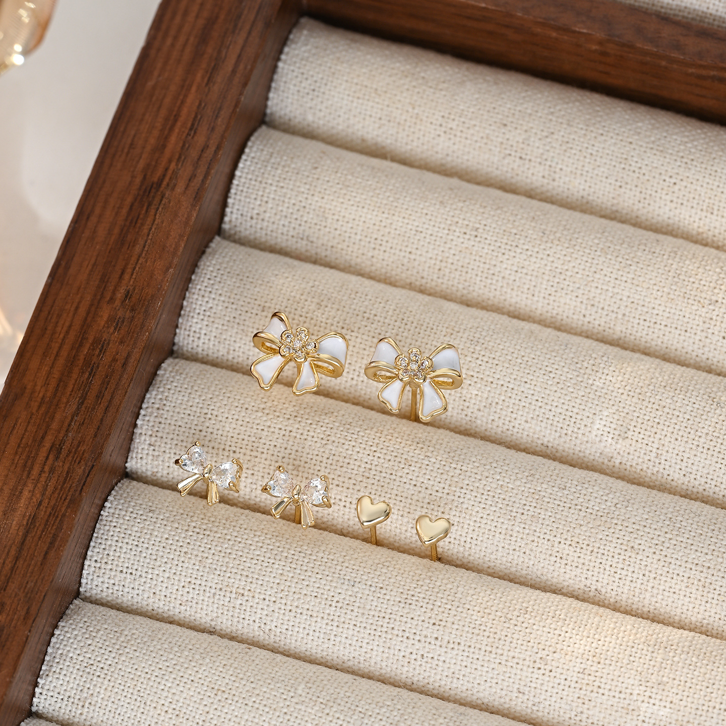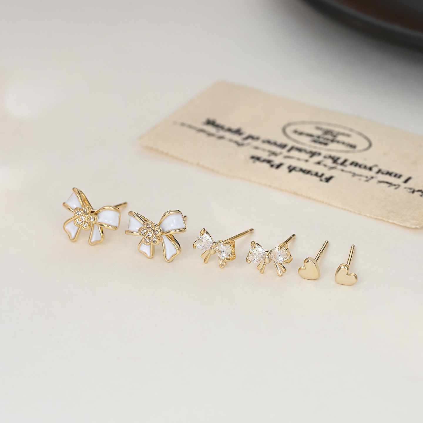 时尚小巧精致高级感蝴蝶结一卡三对装耳环耳钉s925银针耳饰品批发 English | 投诉