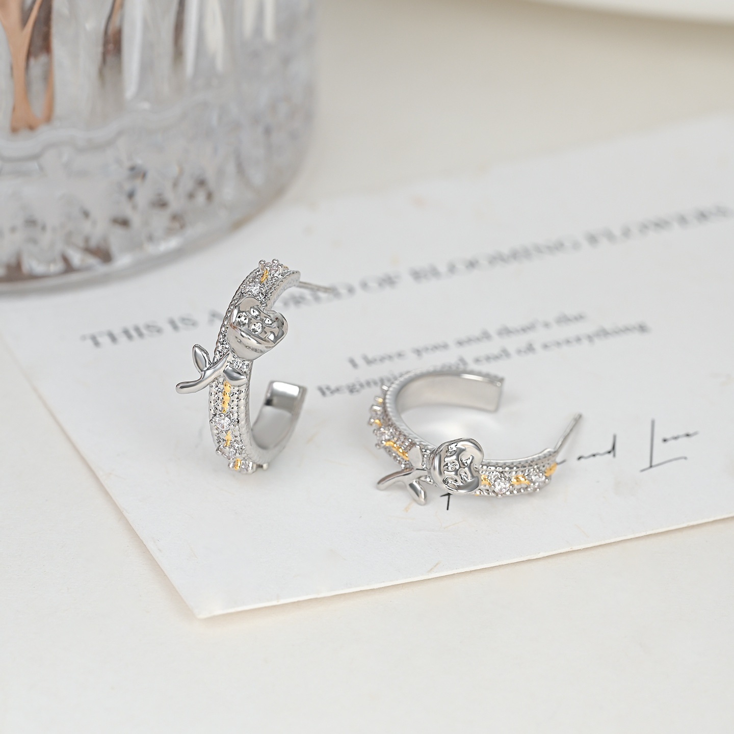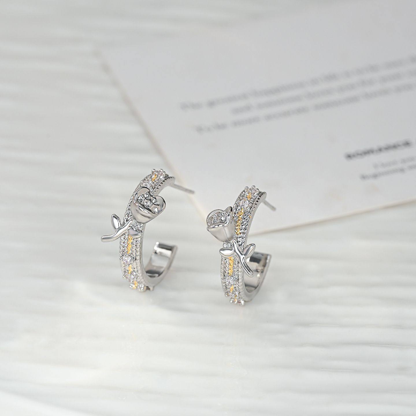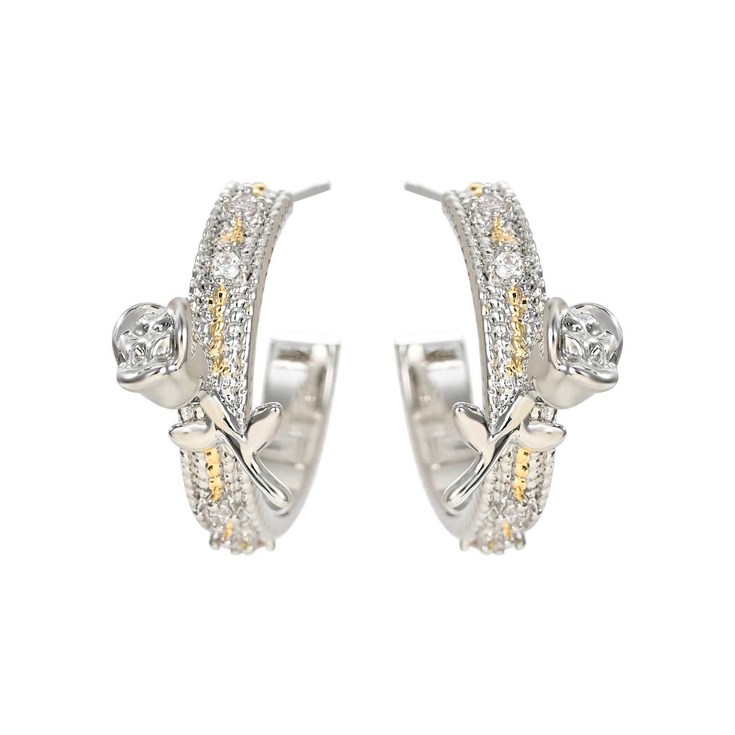 抖音直播热卖S925银针2025新款小众设计感时尚玫瑰花双色耳环耳钉 English | 投诉