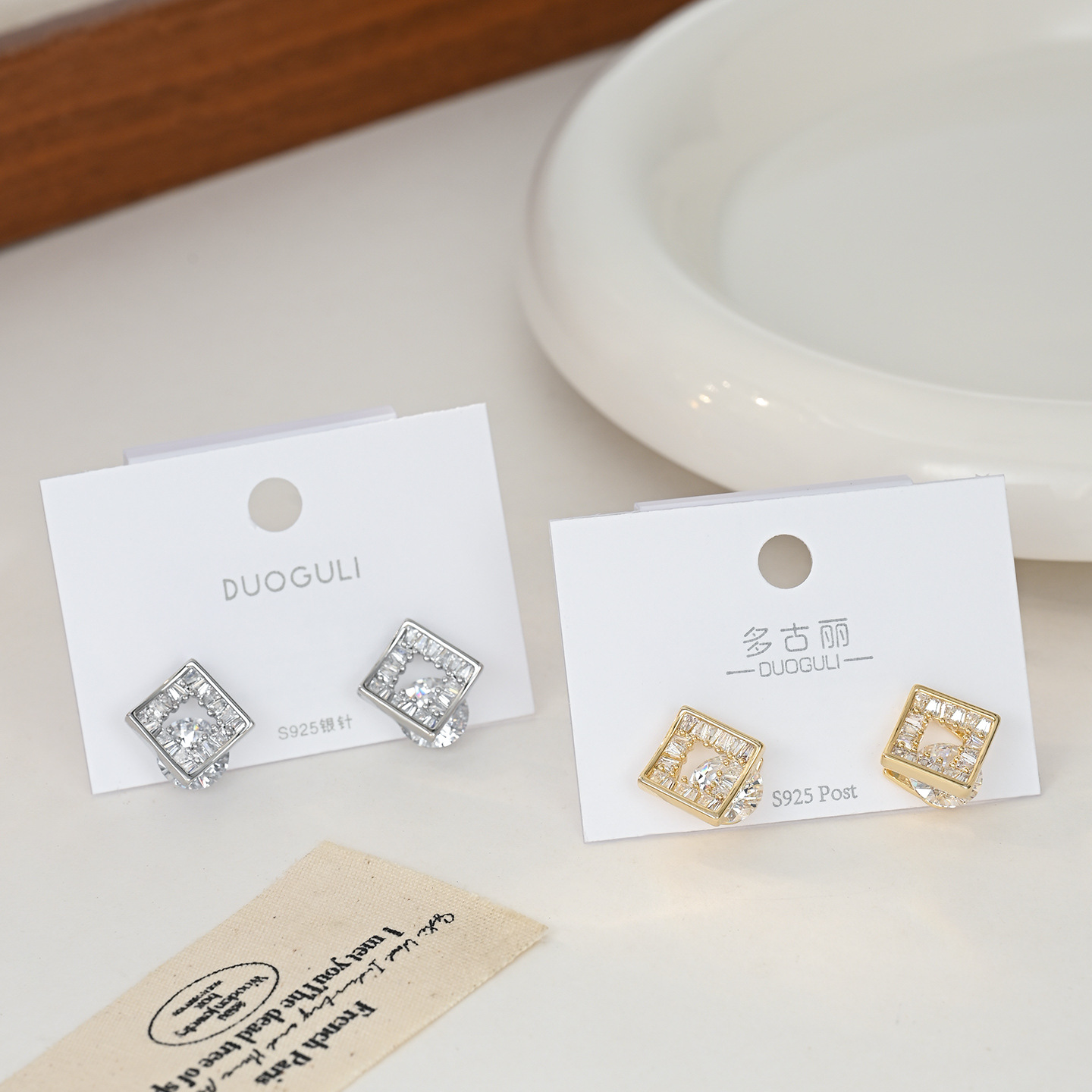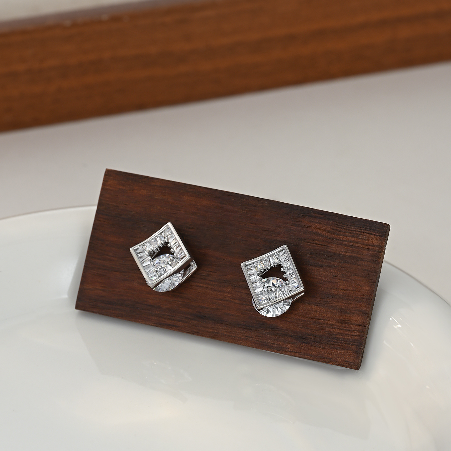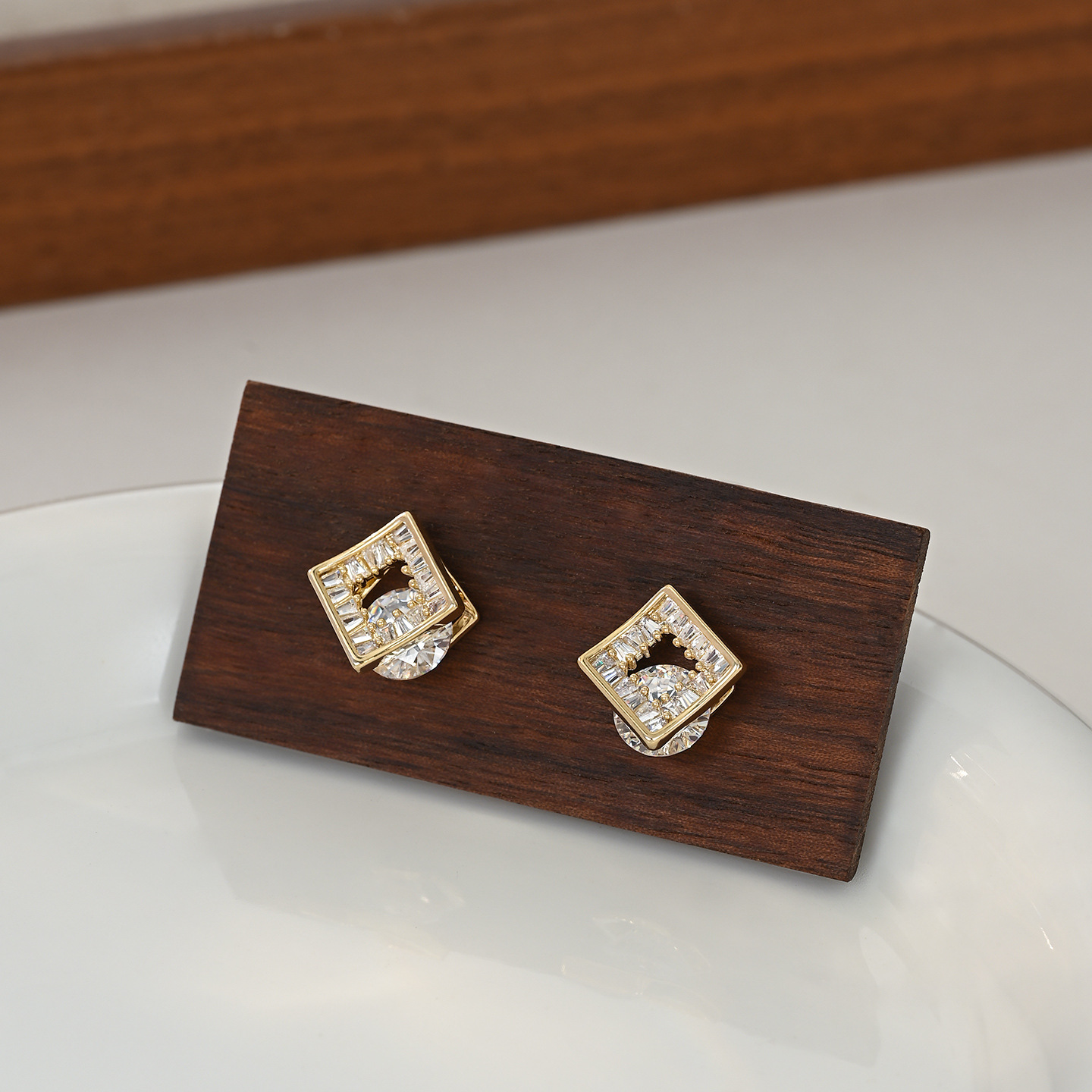 百搭精致小巧迷人通勤款几何方形锆石耳钉日常气质款耳饰品批发 English | 投诉