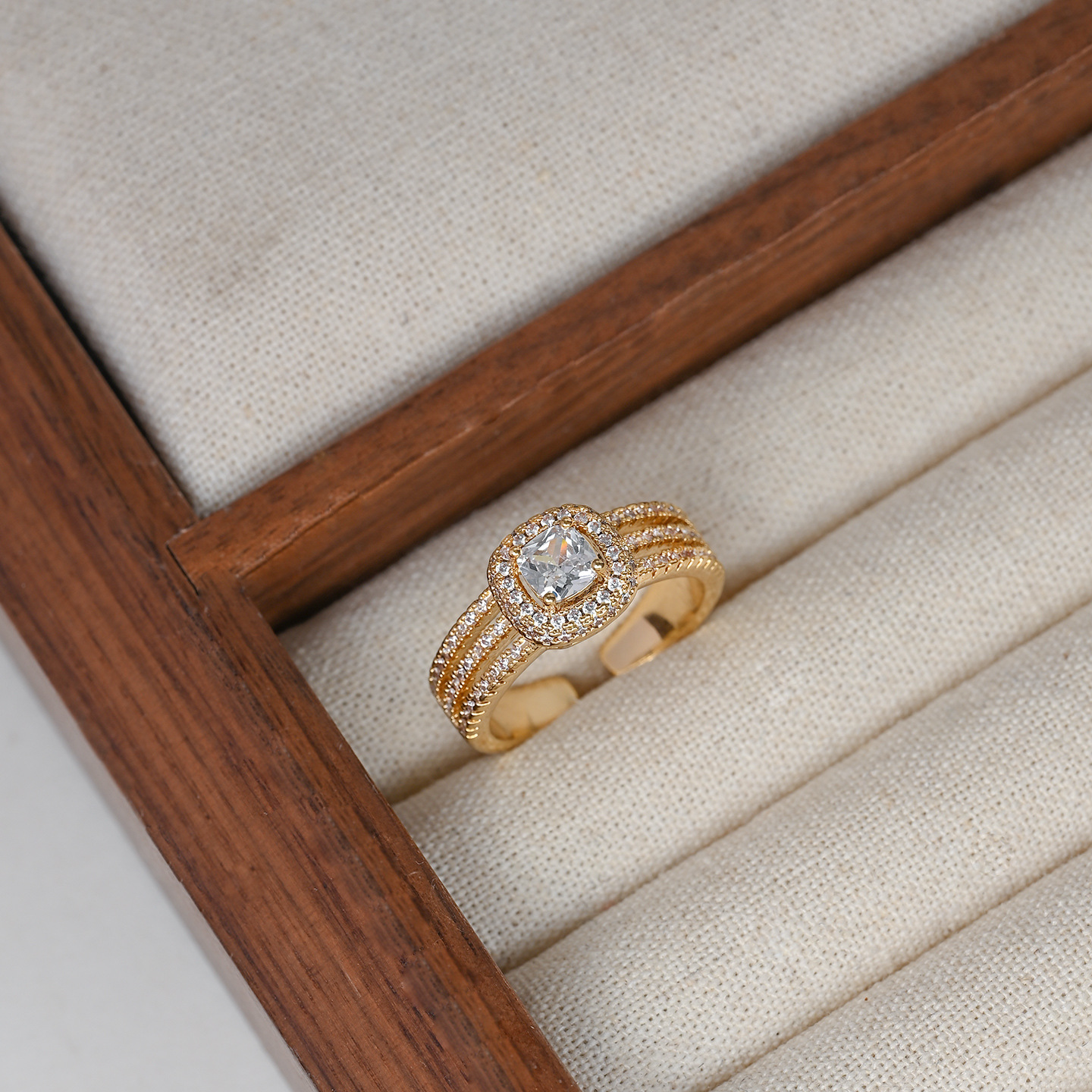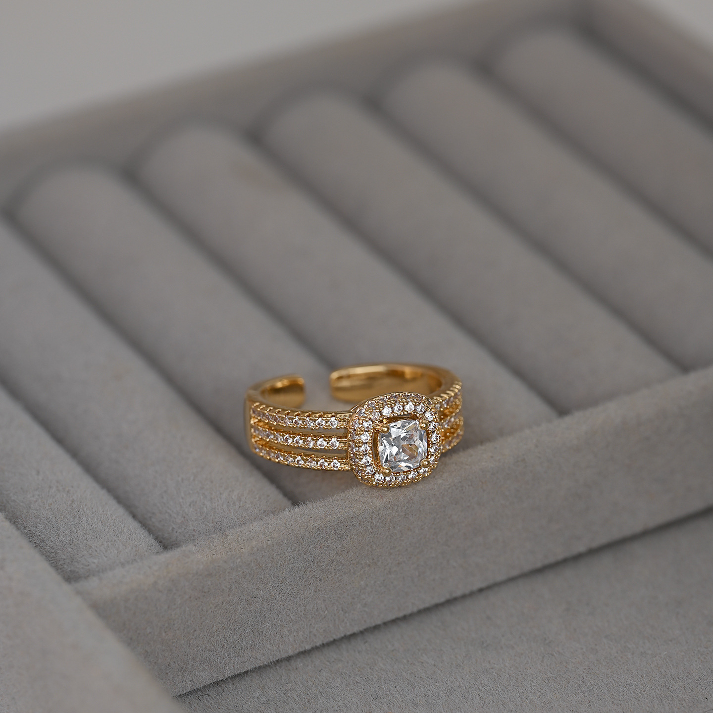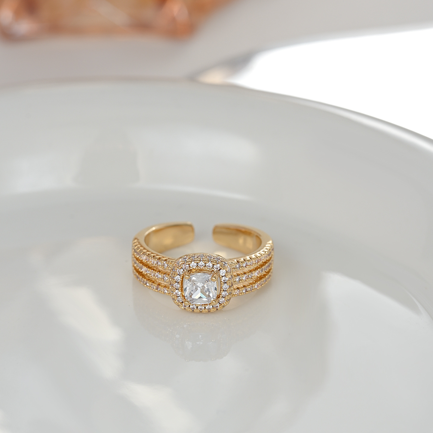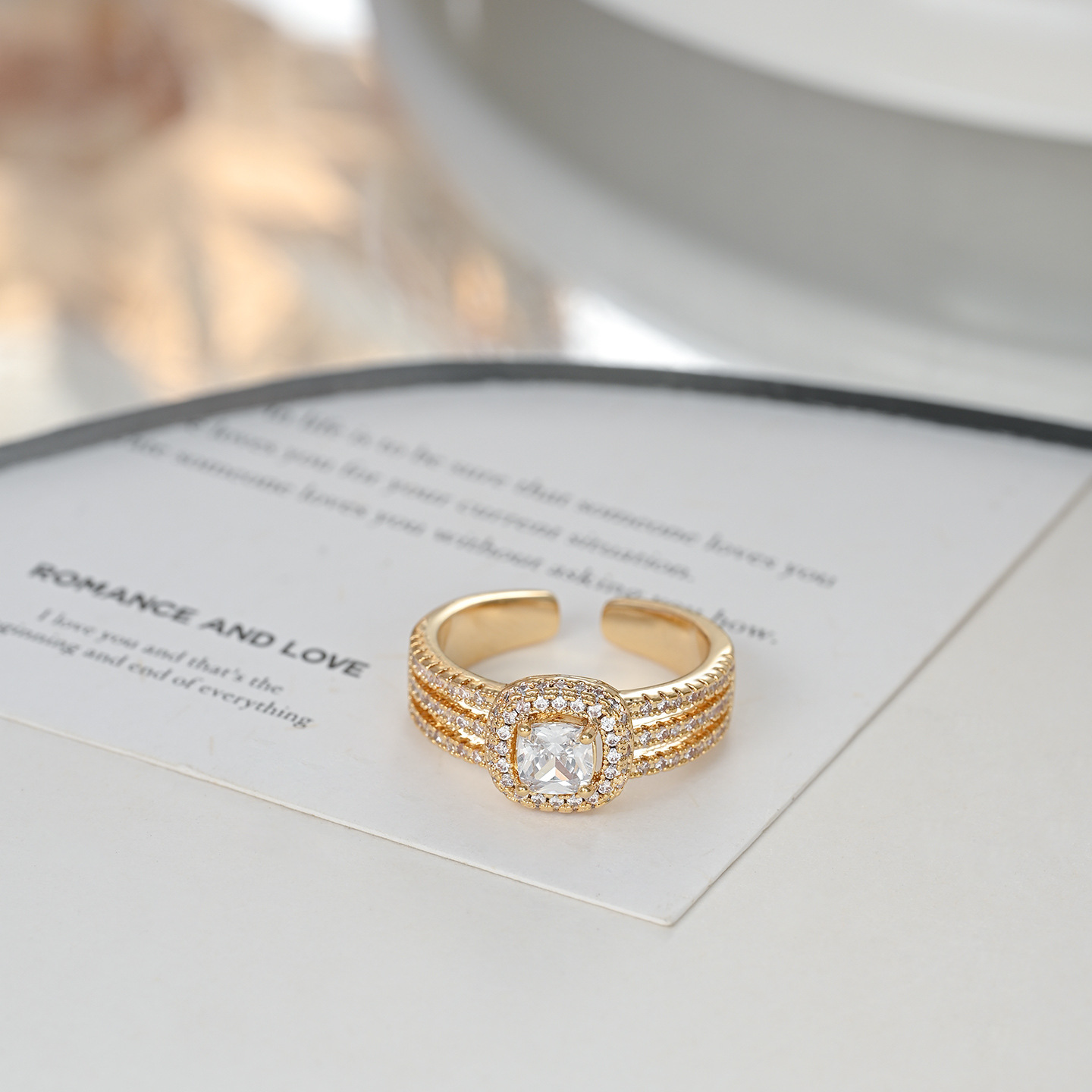 真金电镀镶锆石个性闭口戒指女高级感几何方糖结婚指环精致食指戒 English | 投诉