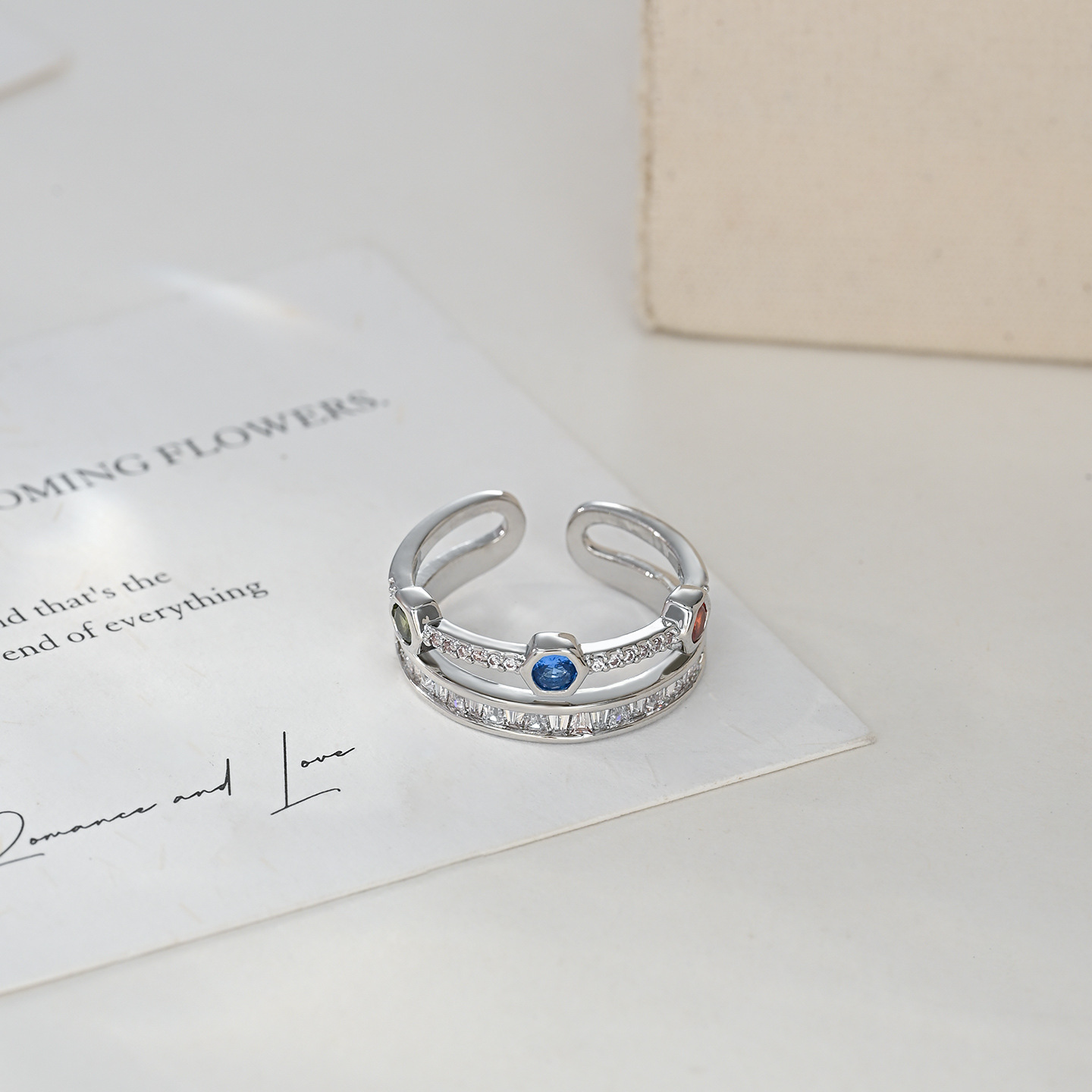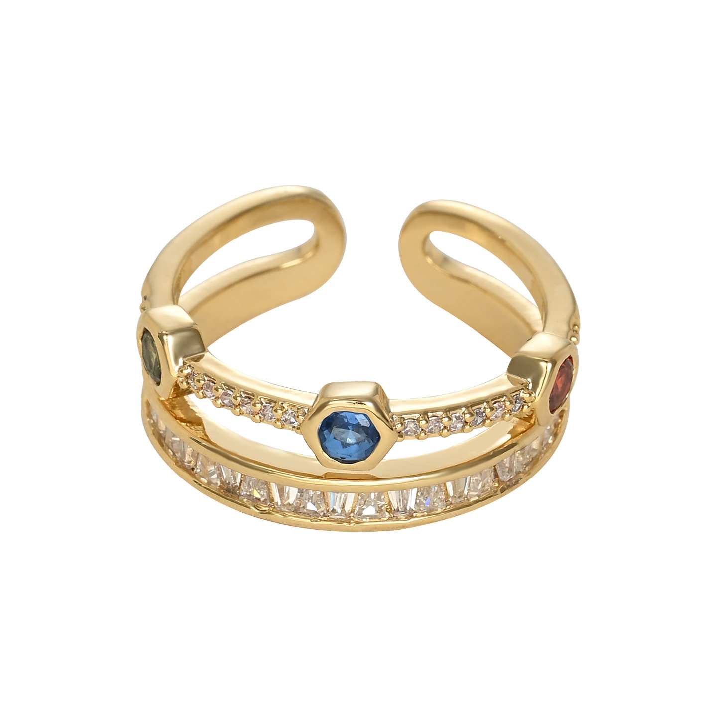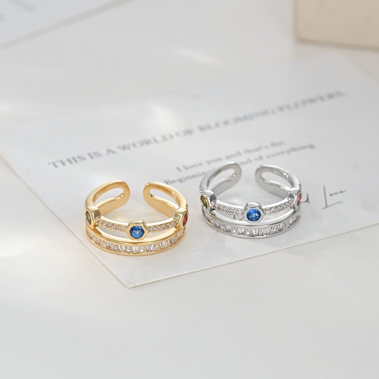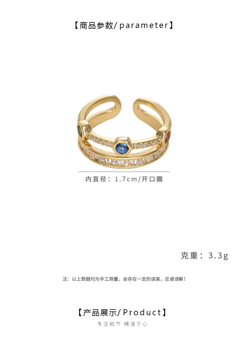 彩色锆石双层开口指环不易掉色戒指女小众级轻奢风个性时尚食指戒 English | 投诉