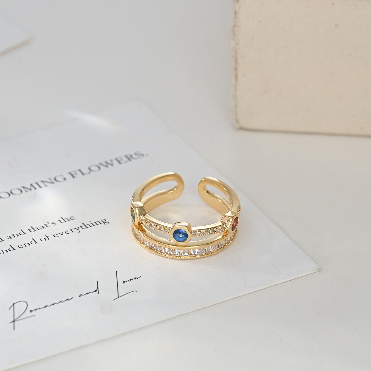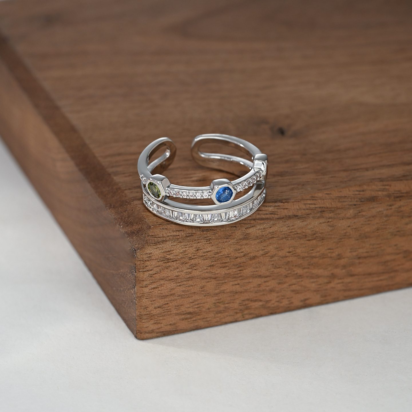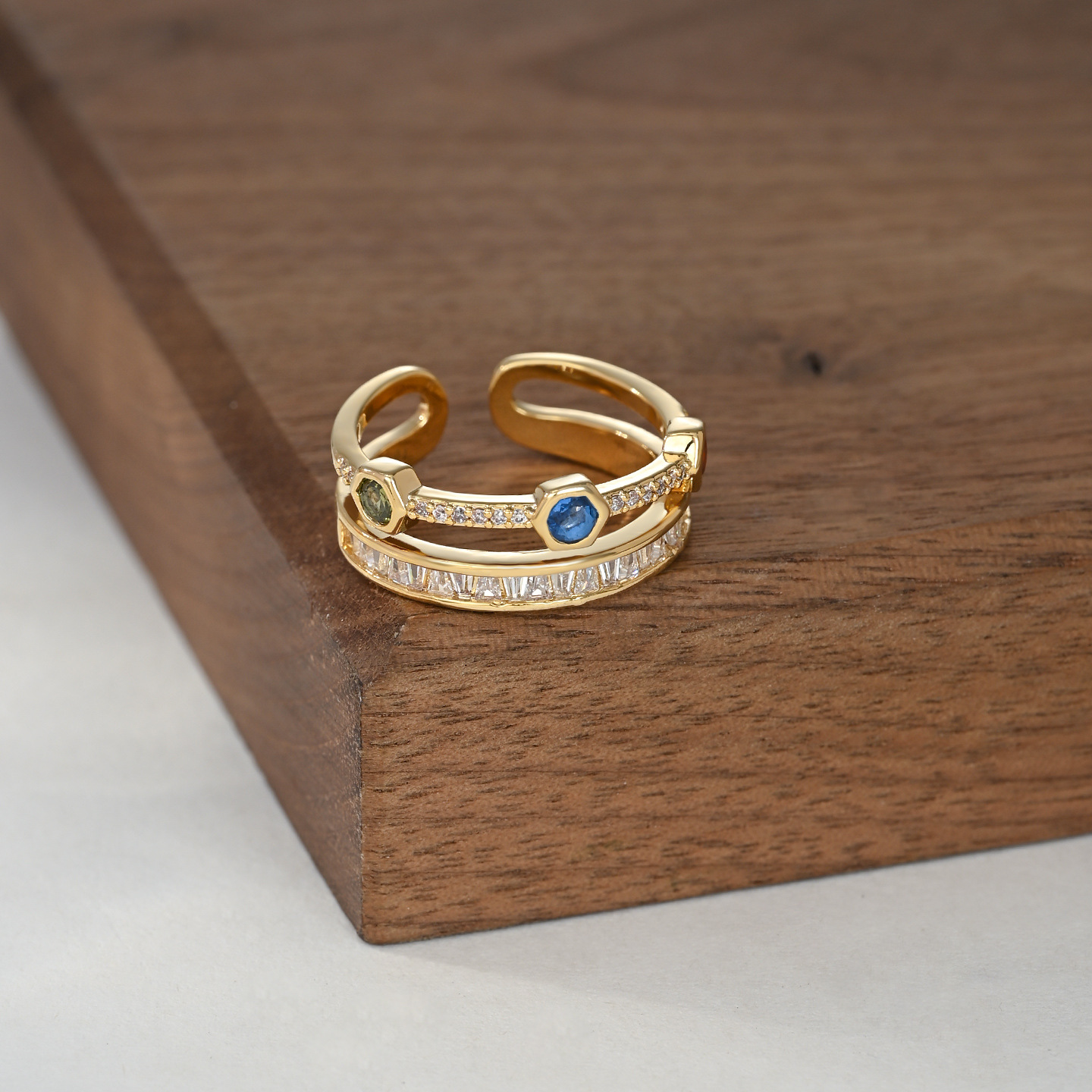 彩色锆石双层开口指环不易掉色戒指女小众级轻奢风个性时尚食指戒 English | 投诉