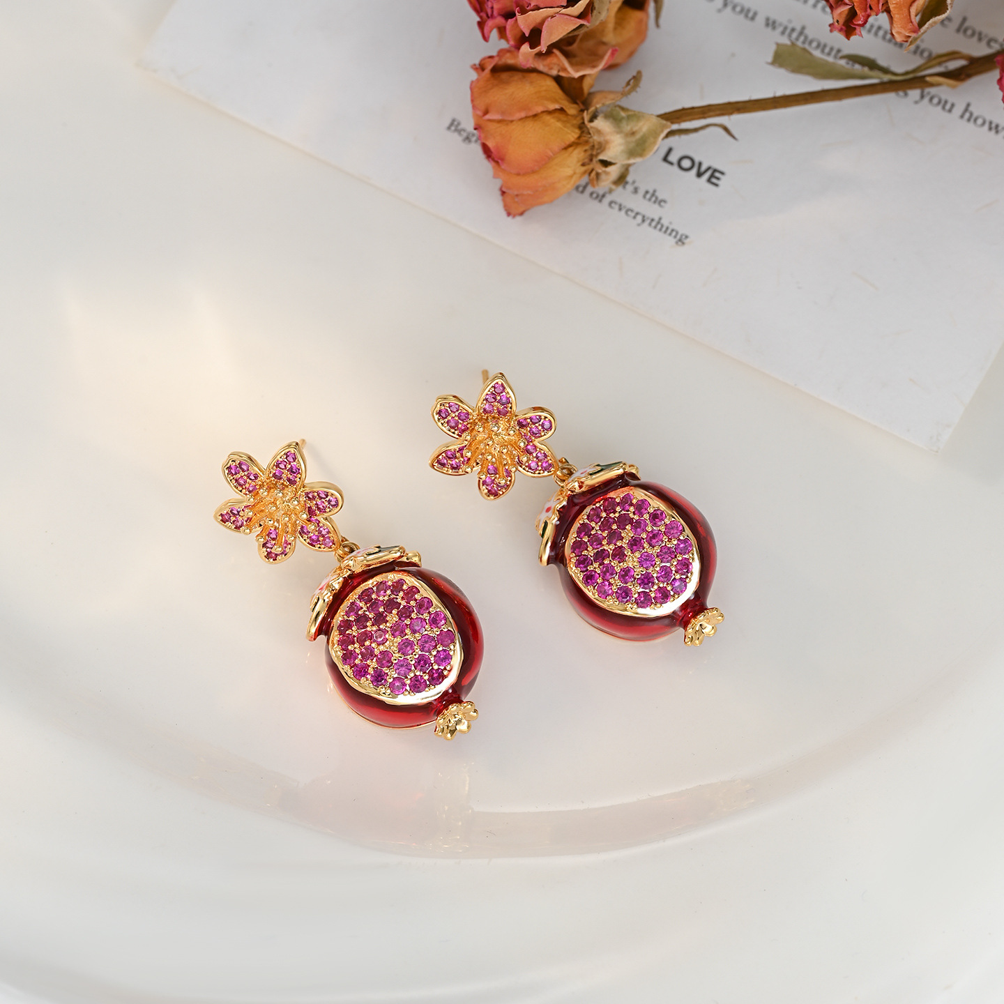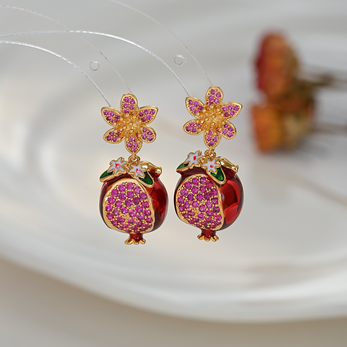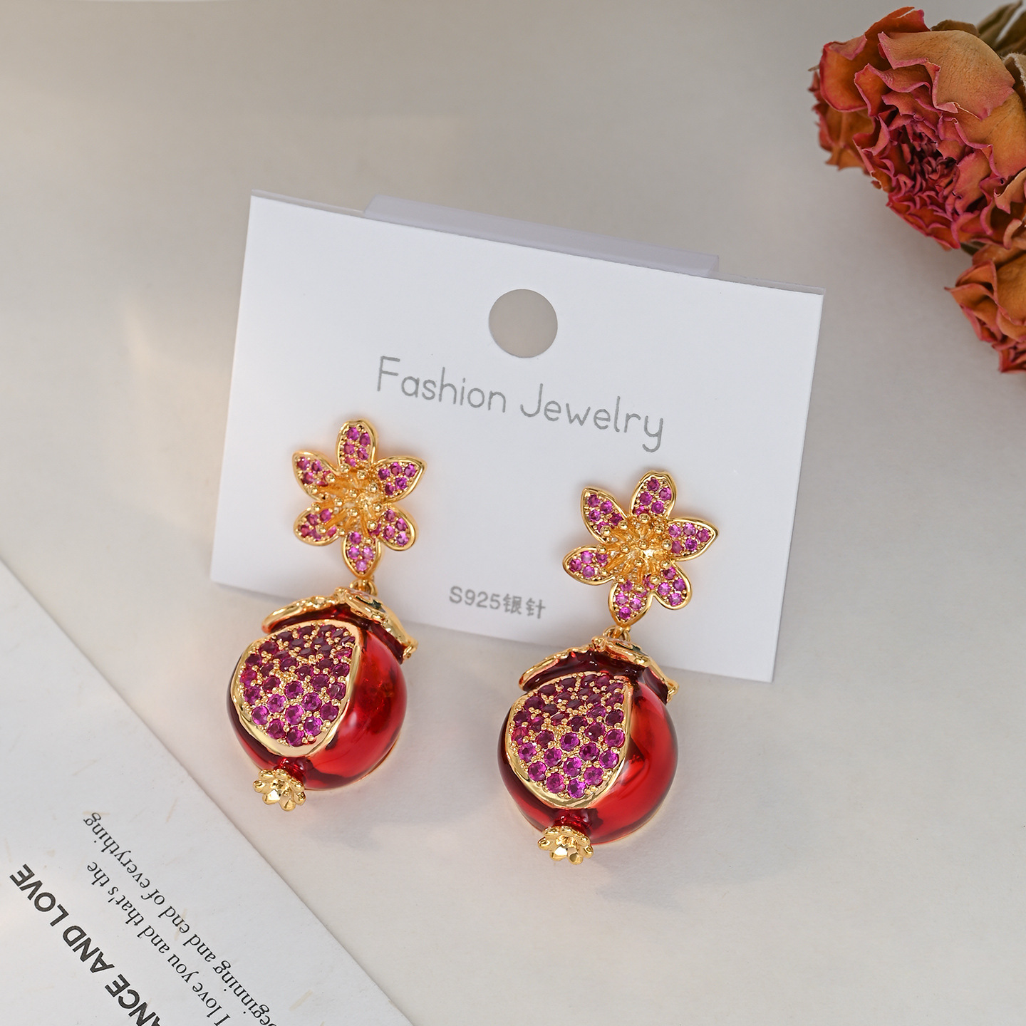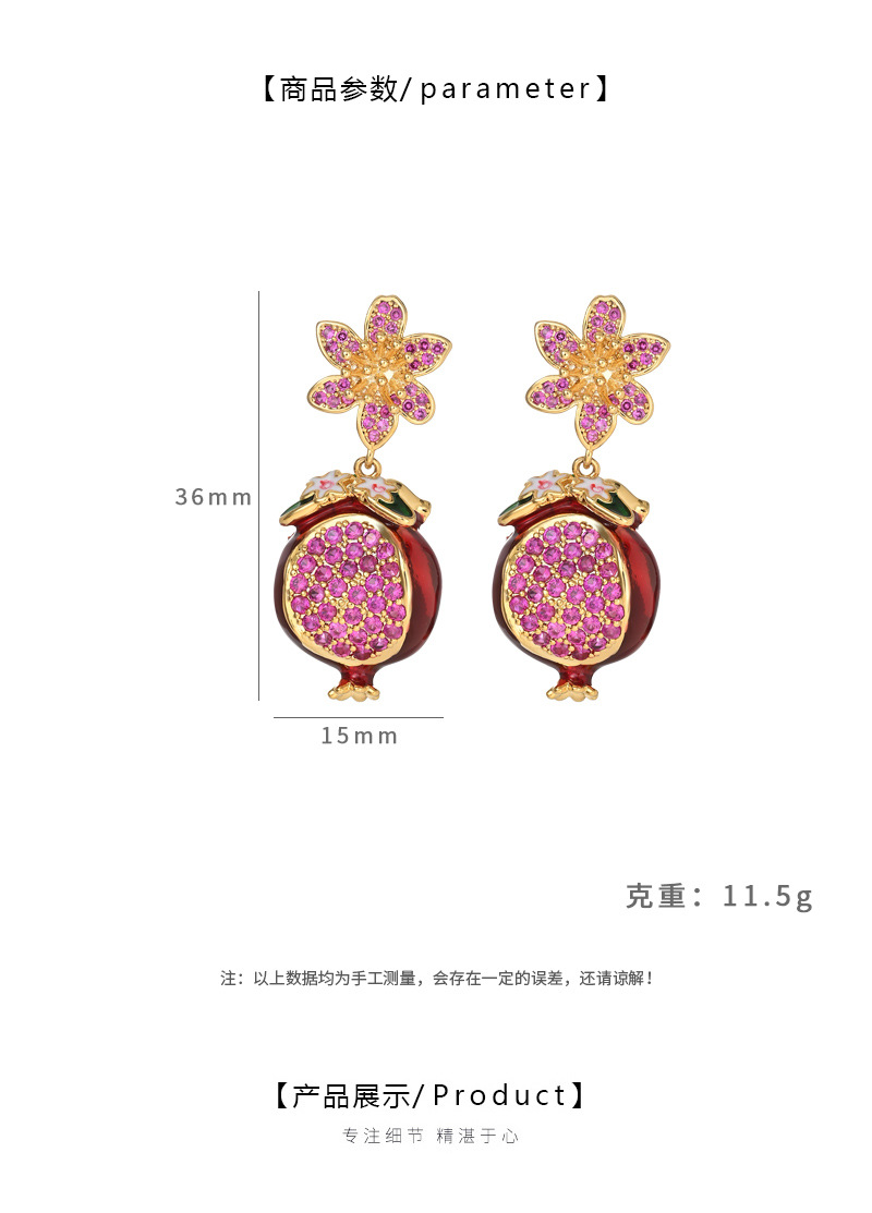 银针锆石石榴花朵耳钉女耳坠小众气质百搭耳环轻奢耳饰小众高级感 English | 投诉