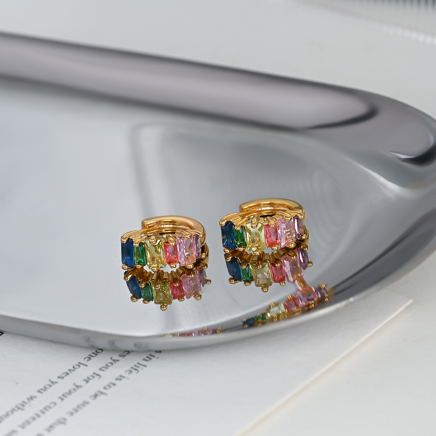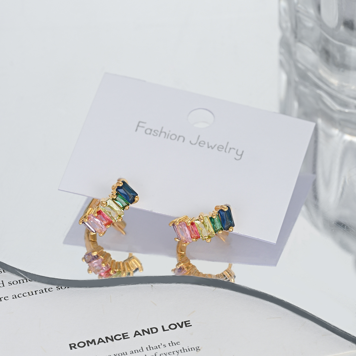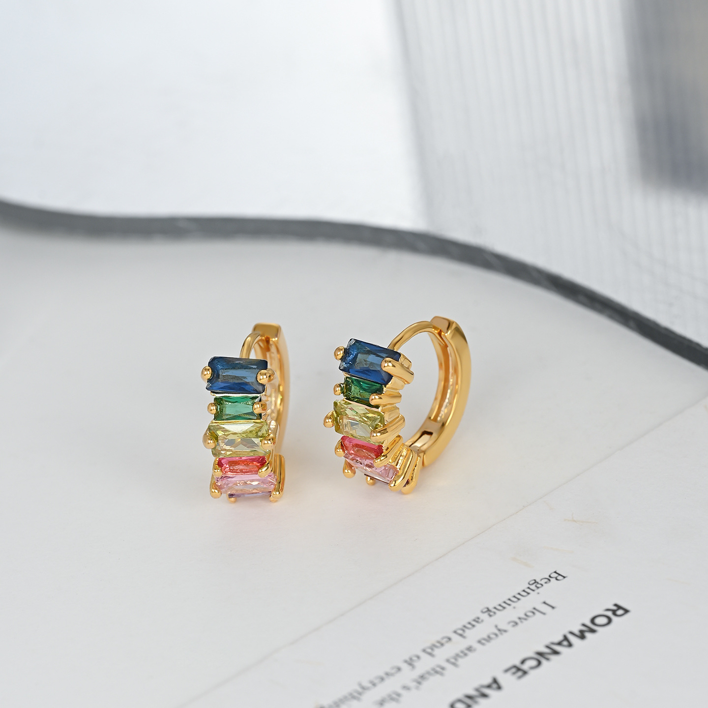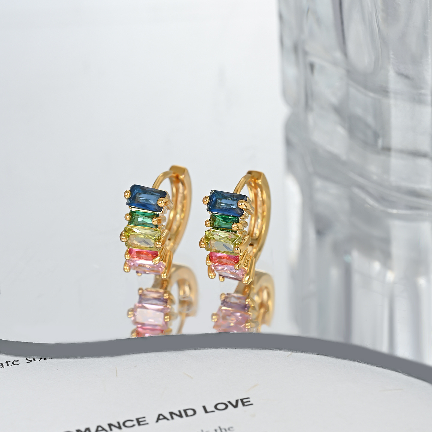 铜镀真金微镶锆石精致百搭款彩色耳钉耳扣日常上班佩戴送礼物耳饰 English | 投诉