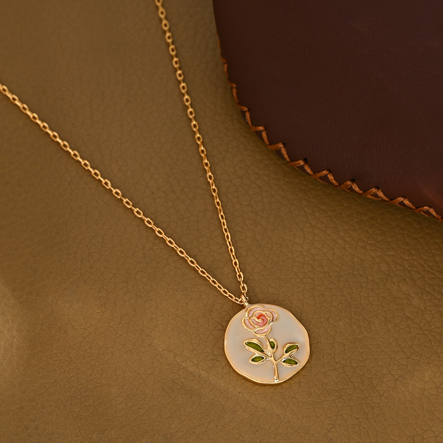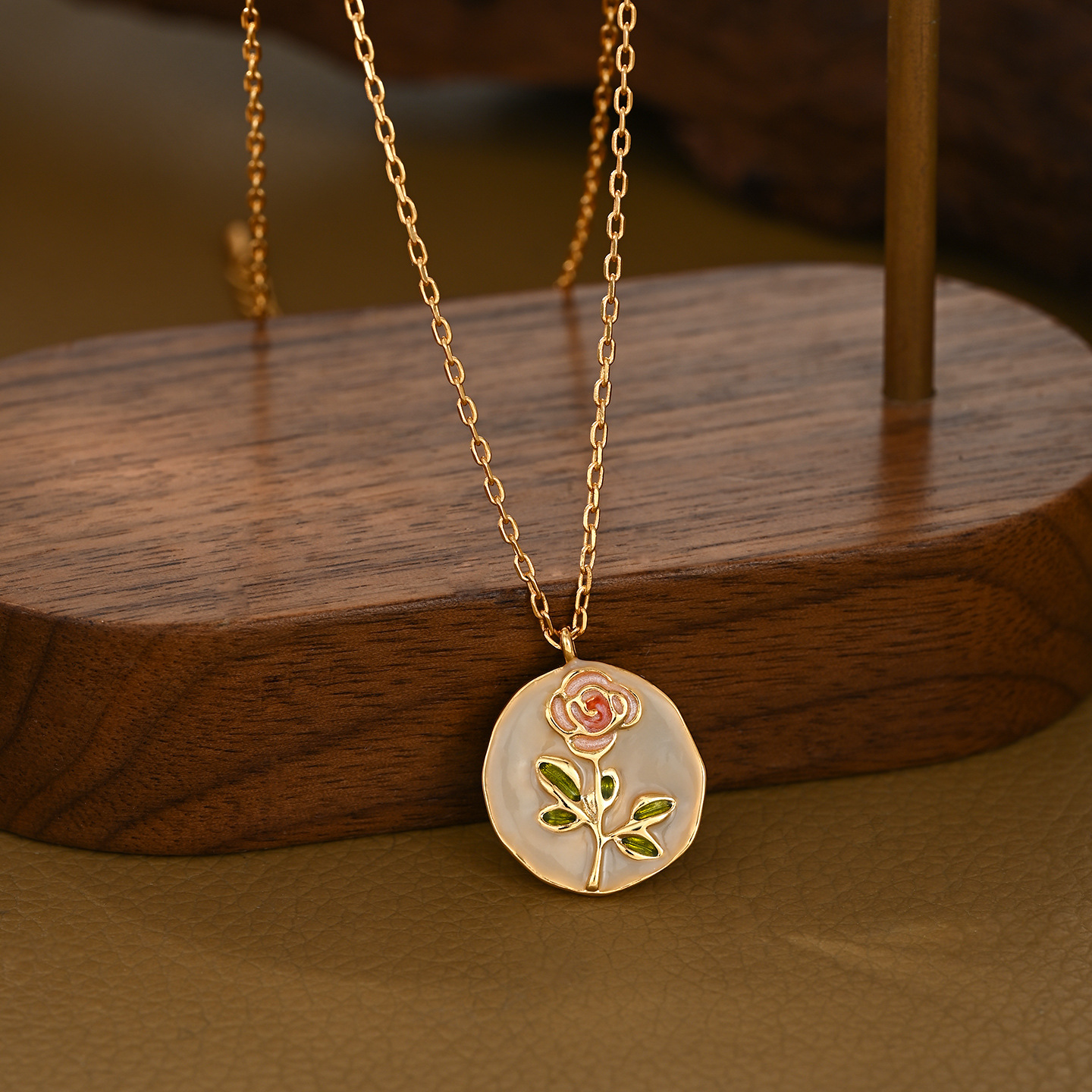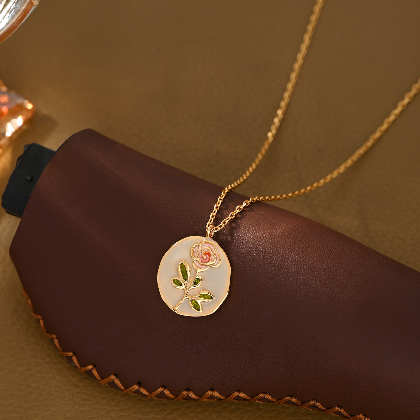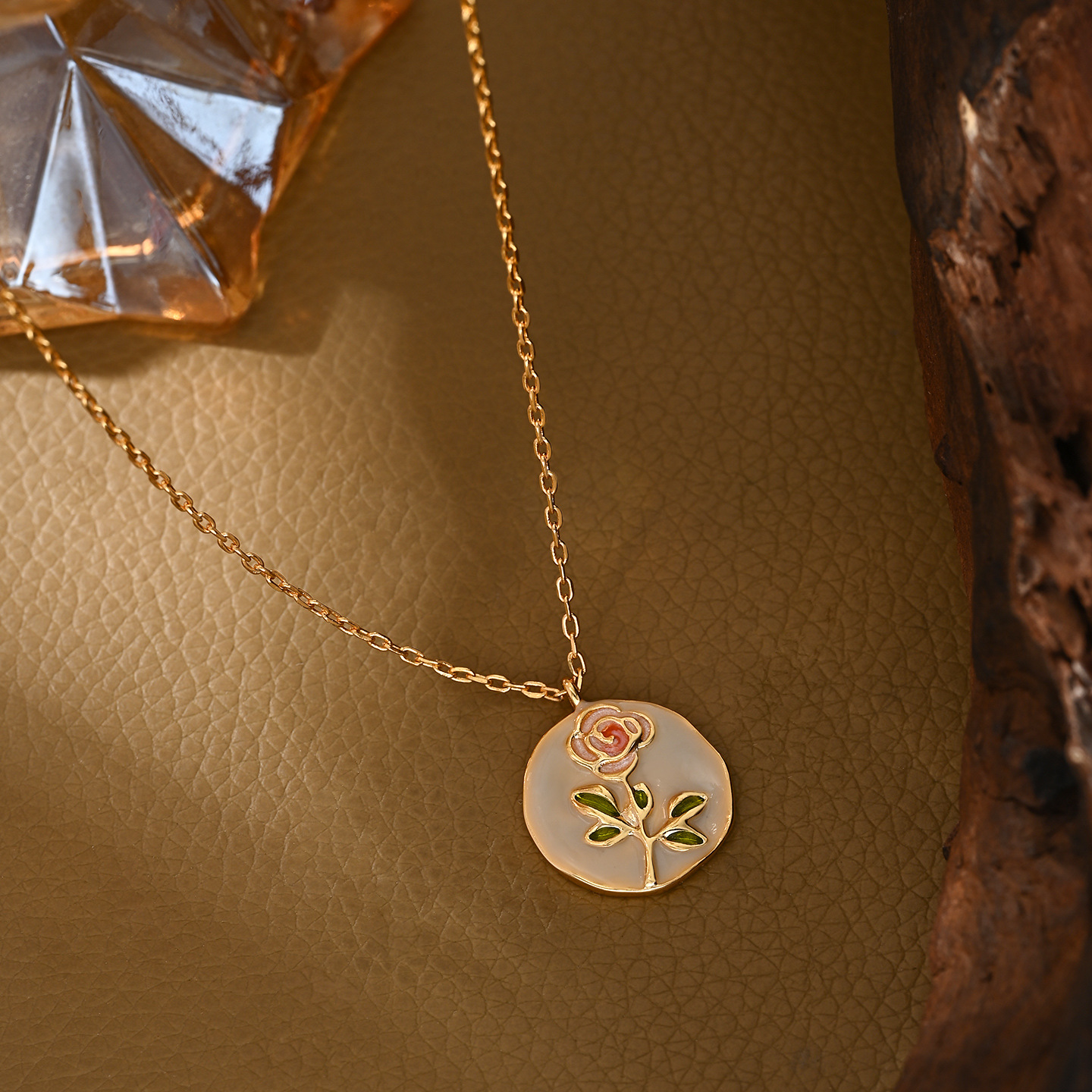 小红书直播热卖款玫瑰花画油项链精致文艺风优雅款锁骨链颈链批发