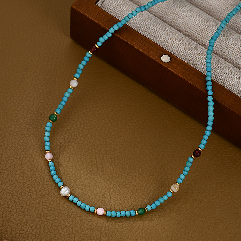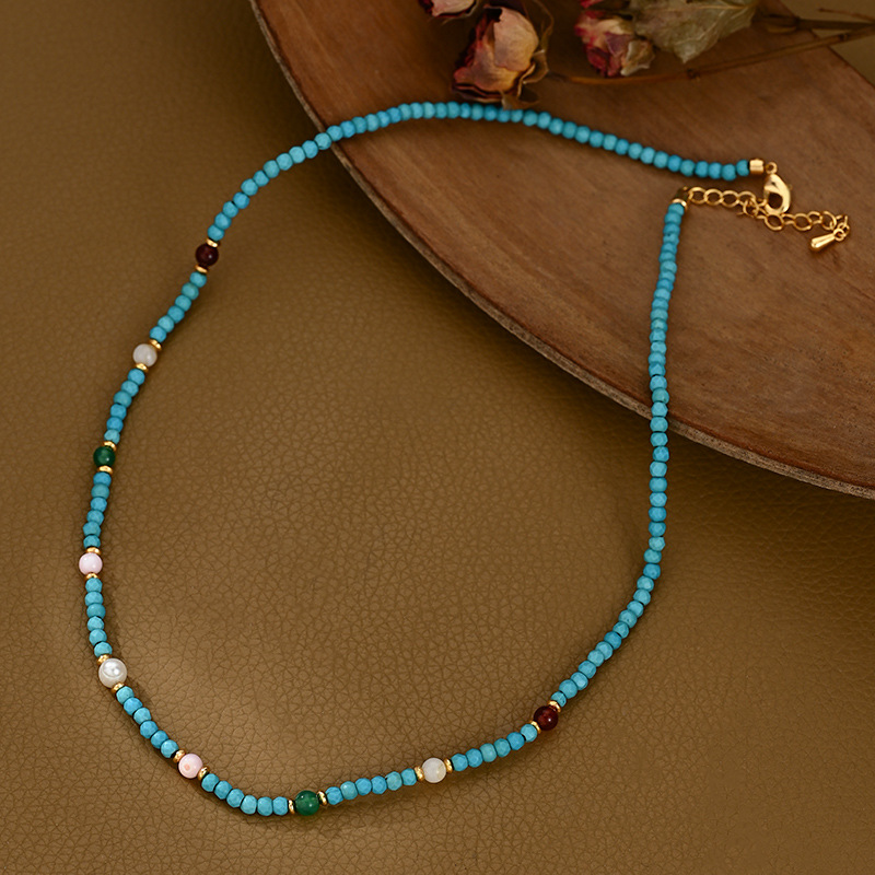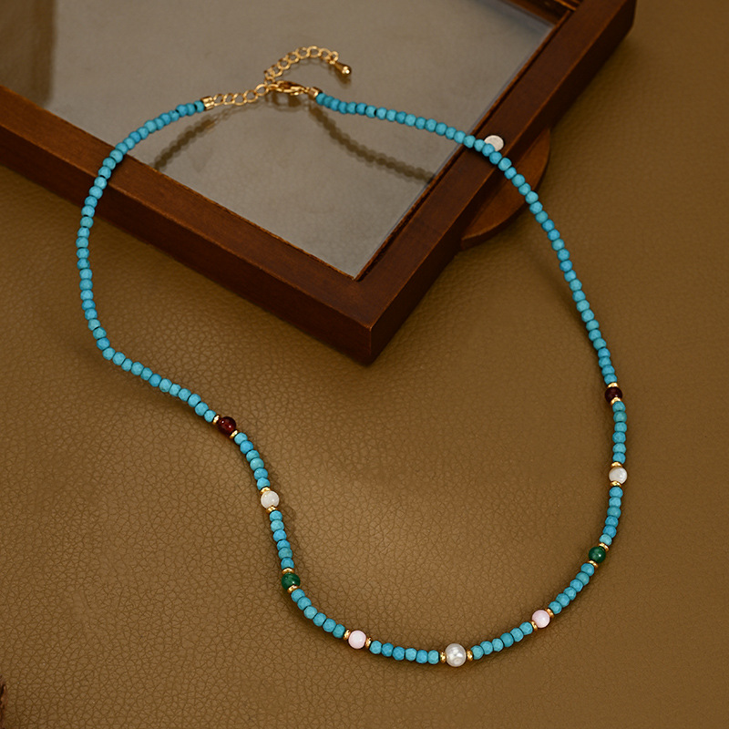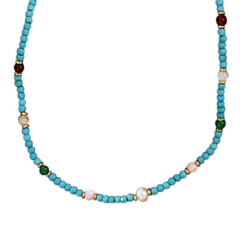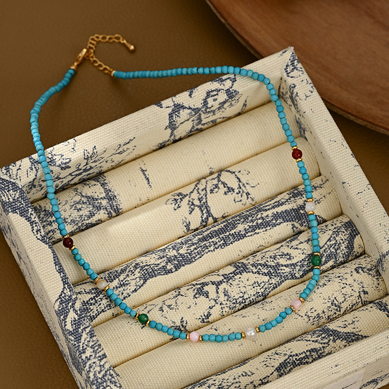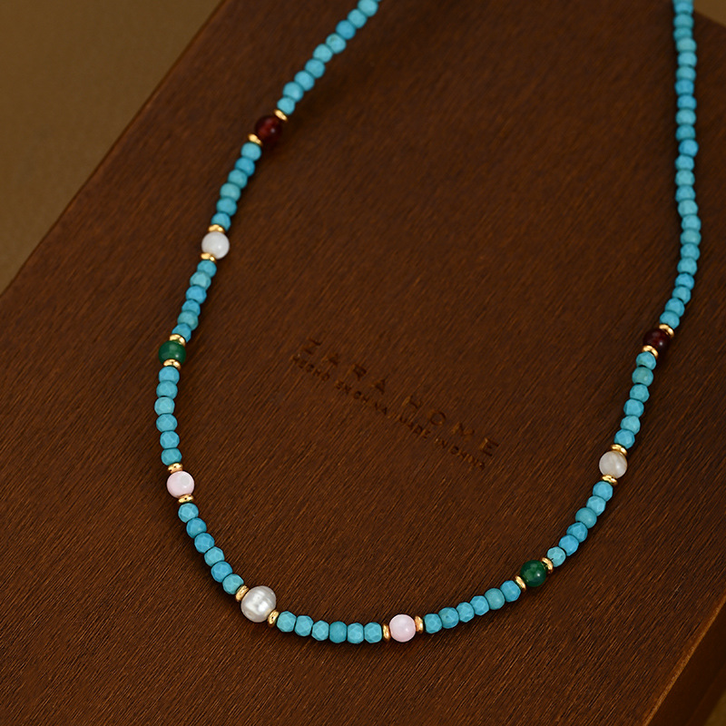 夏季新款原创中式天然蓝绿松石南红多宝项链锁骨链送闺蜜朋友礼物 English | 投诉