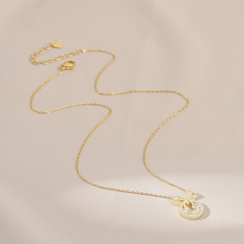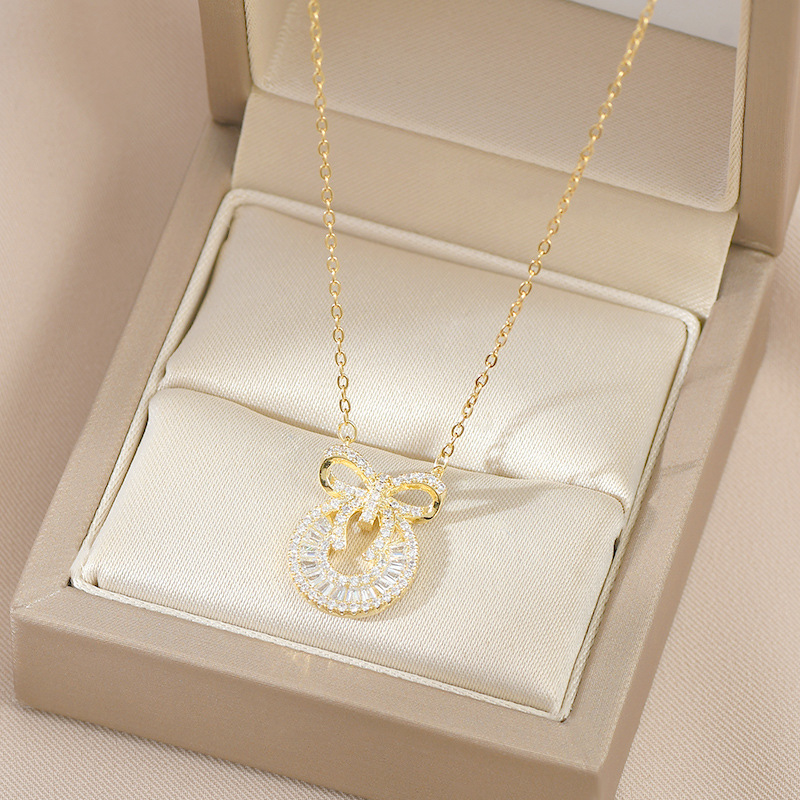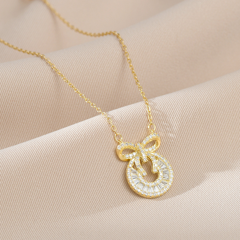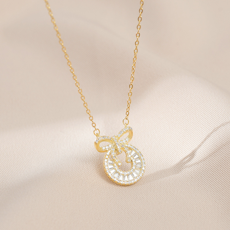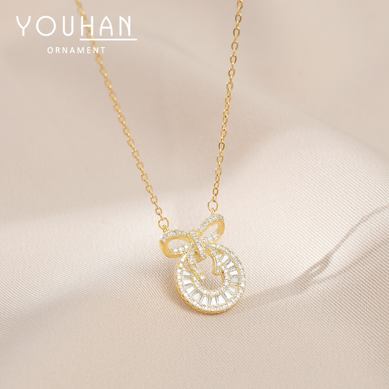 真金电镀微镶锆石气质锁骨链女高级感蝴蝶结项链韩版时尚个性颈链 English | 投诉
