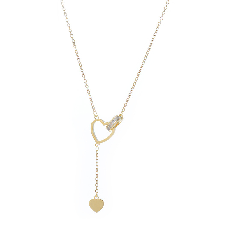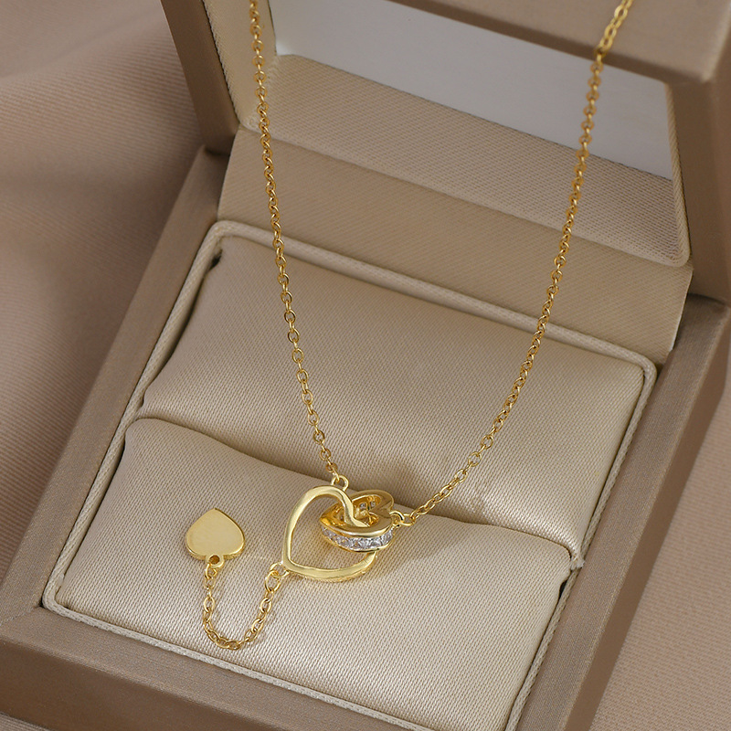 真金电镀镶锆石气质锁骨链女高级感桃心双环项链韩版时尚学生颈链 English | 投诉