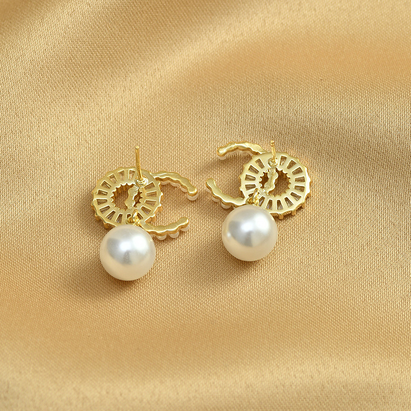 轻奢双C珍珠耳饰女小众设计感耳环2023年新款潮耳钉925银针 English | 投诉