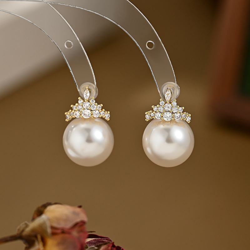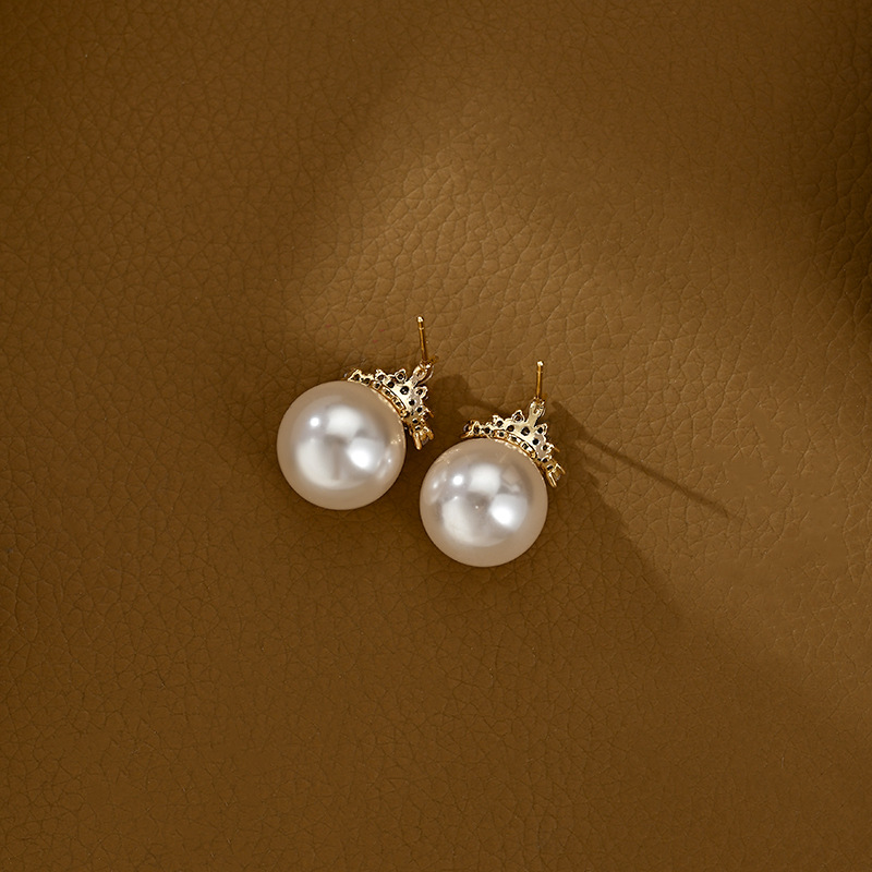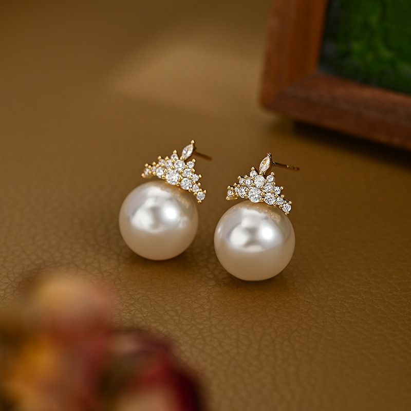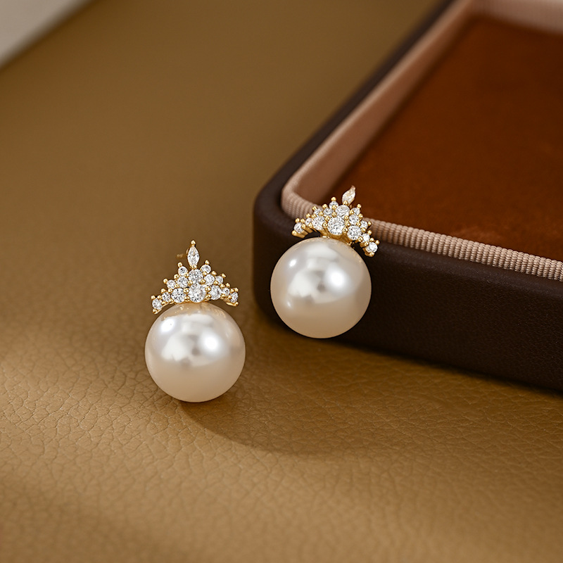 抖音直播热卖S925银针复古法式珍珠耳钉女高级感锆石皇冠耳饰耳坠 English | 投诉