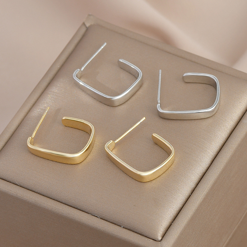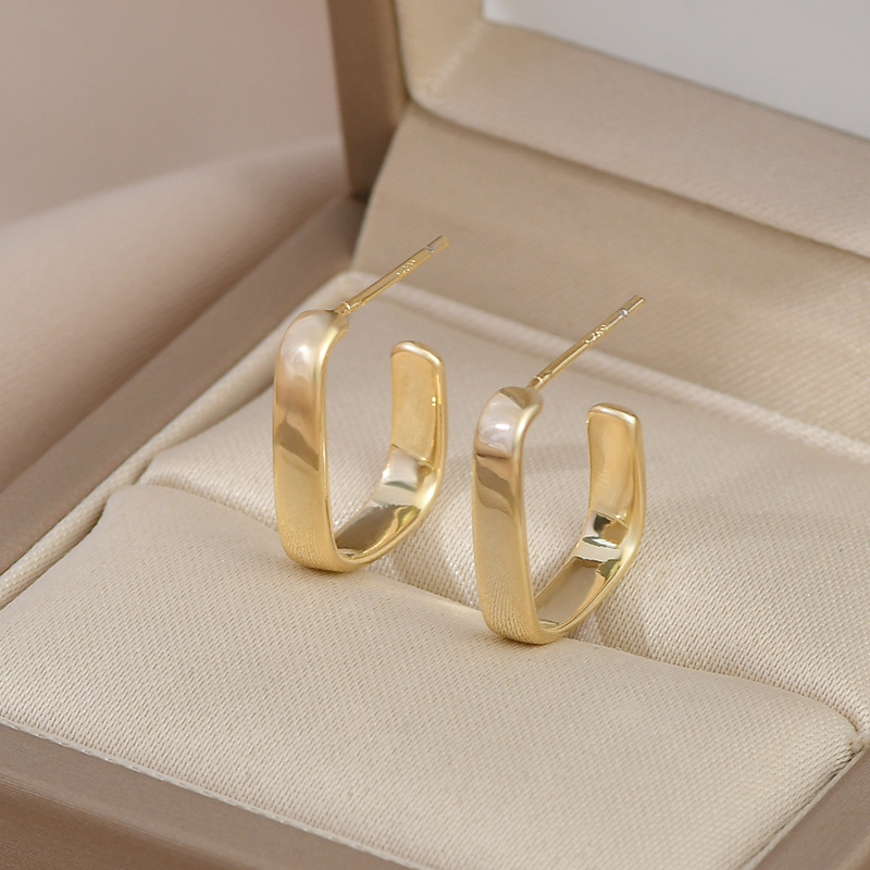 S925银针韩国东大门气质耳钉女小众设计感几何C形耳饰金属风耳坠 English | 投诉
