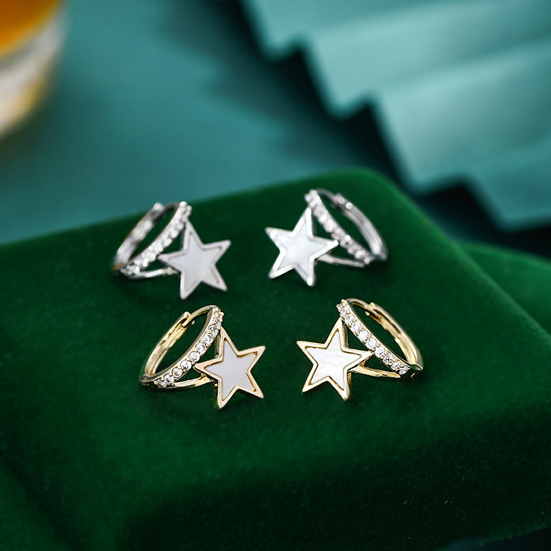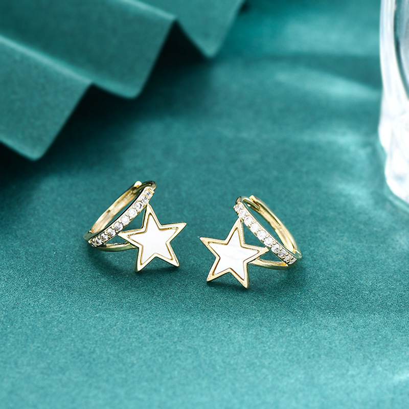 韩版时尚气质耳环女小众设计感几何C形耳饰个性简约贝壳星星耳扣 English | 投诉