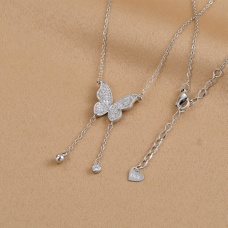2023年新款潮气质锁骨链高级感锆石蝴蝶流苏项链韩版时尚学生颈链 English | 投诉