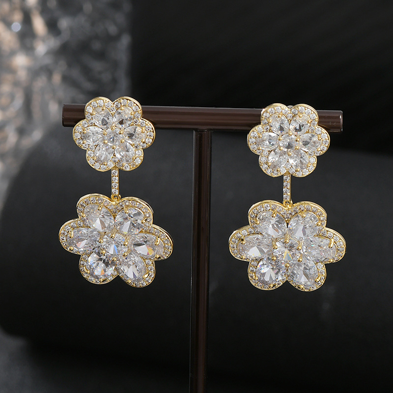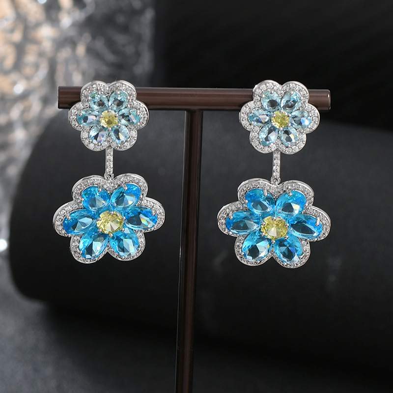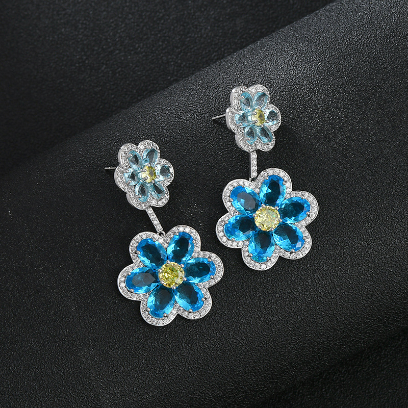 重工微镶彩色锆石气质耳钉女S925银针高级感轻奢花瓣耳饰精致耳环 English | 投诉