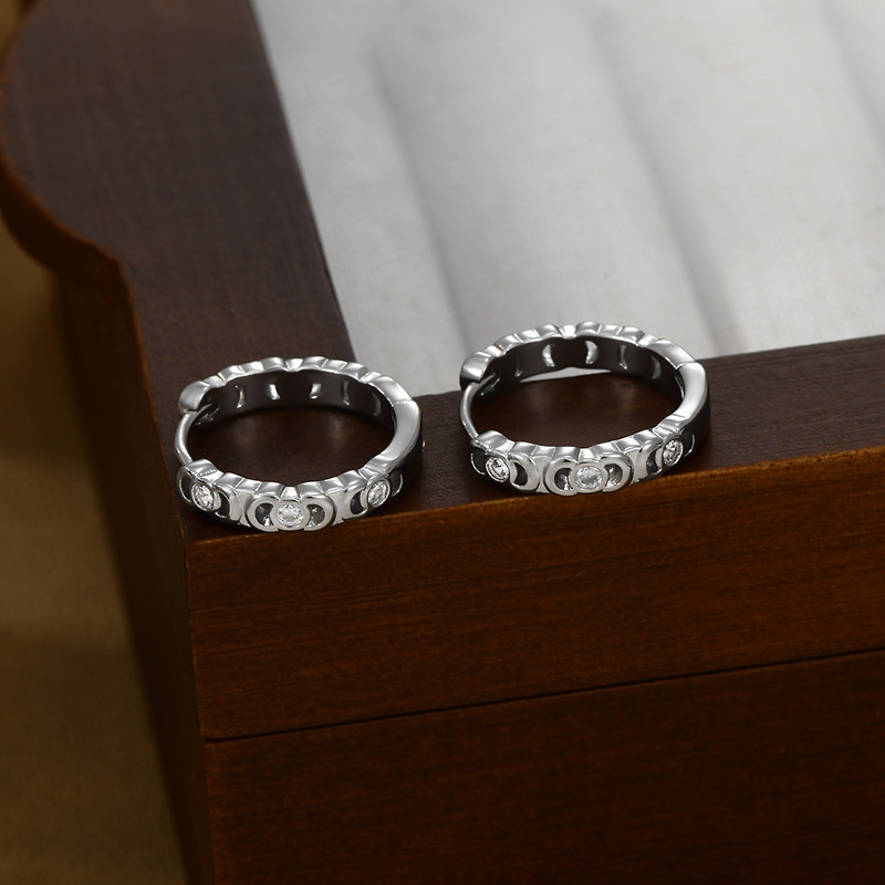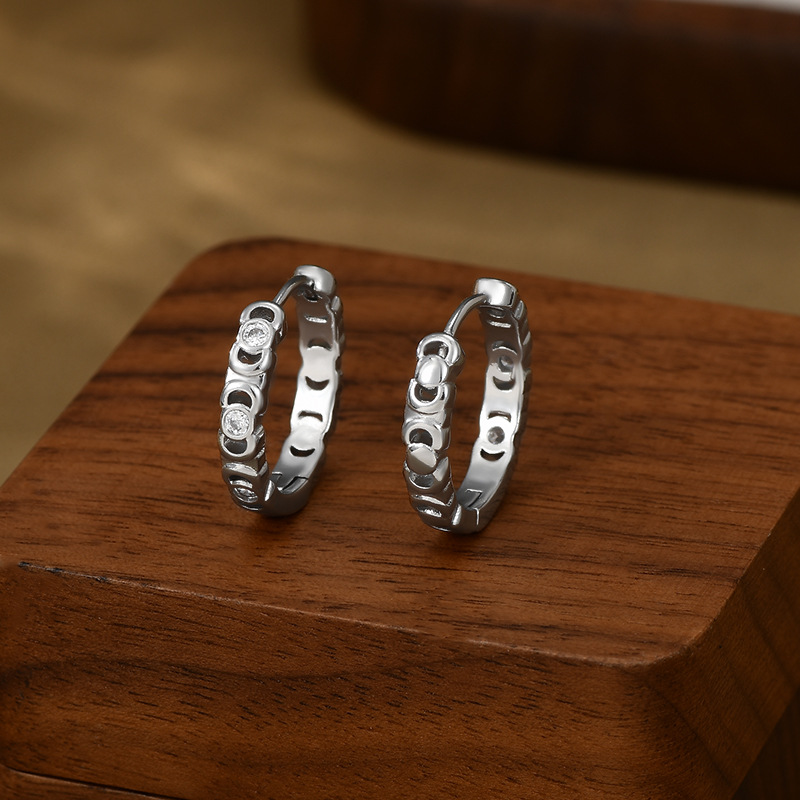 跨境简约个性锆石耳圈耳环2024年新款潮圆圈形耳扣精致百搭耳饰女