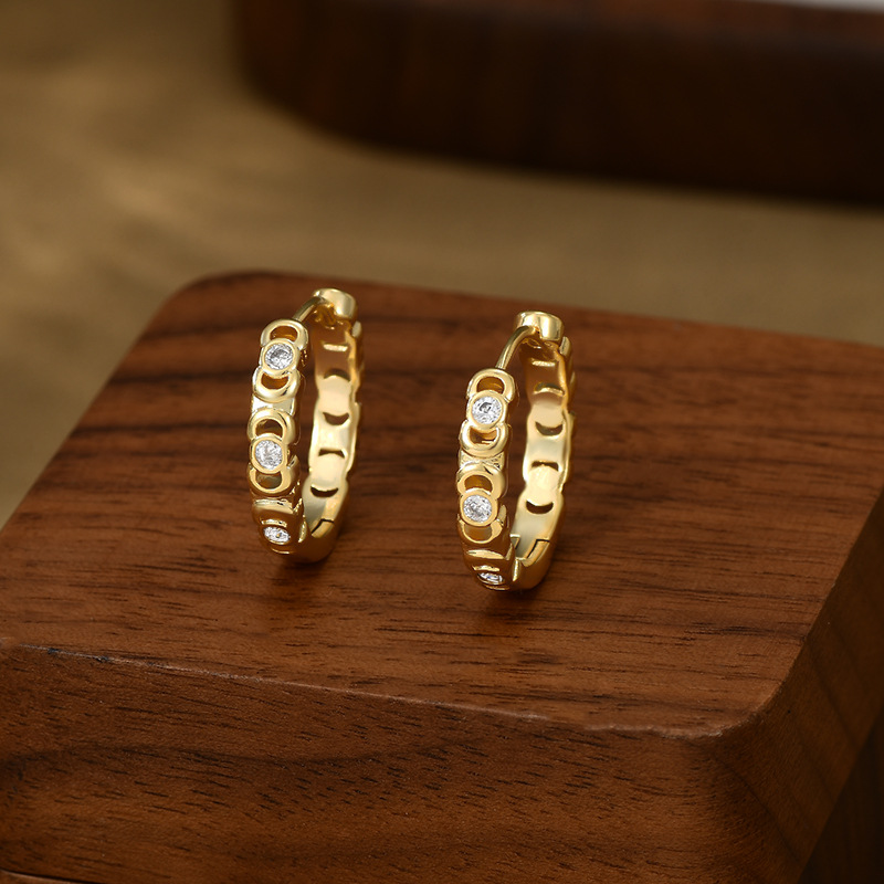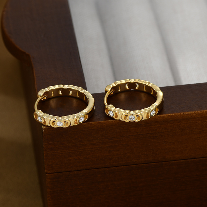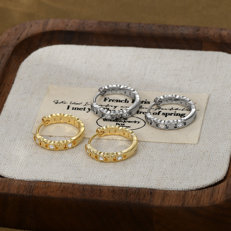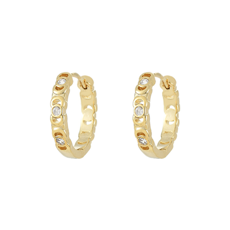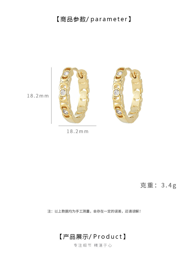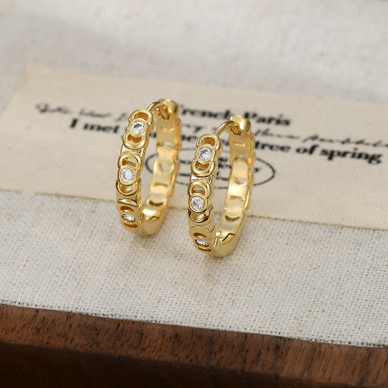 跨境简约个性锆石耳圈耳环2024年新款潮圆圈形耳扣精致百搭耳饰女 English | 投诉