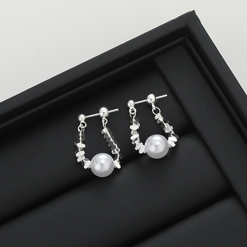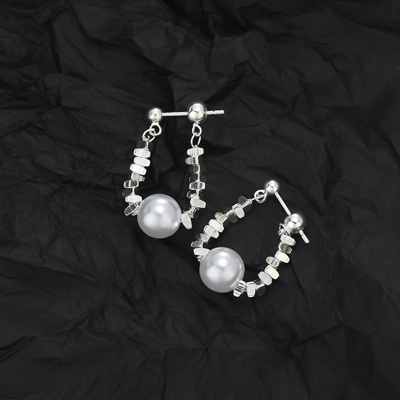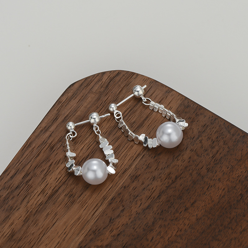 S925银针碎银珍珠链条耳环女小众设计高级感ins金属风后挂式耳饰 English | 投诉