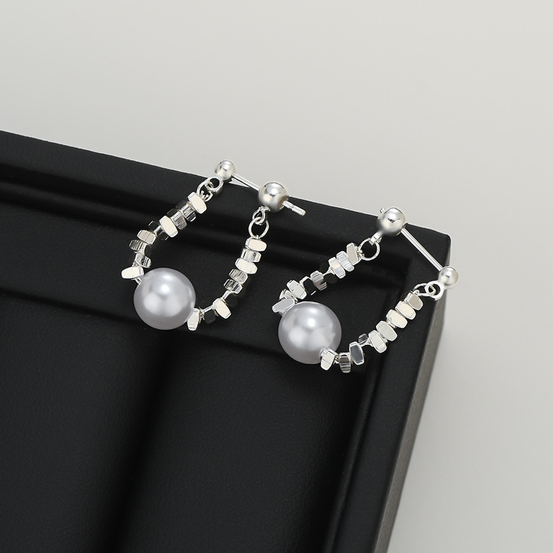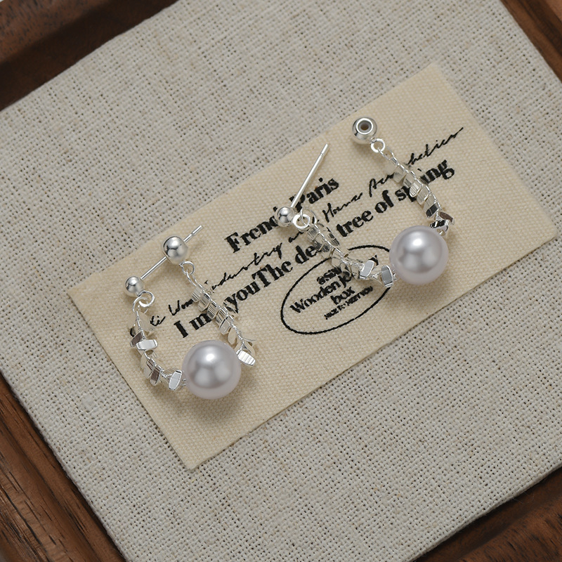 S925银针碎银珍珠链条耳环女小众设计高级感ins金属风后挂式耳饰