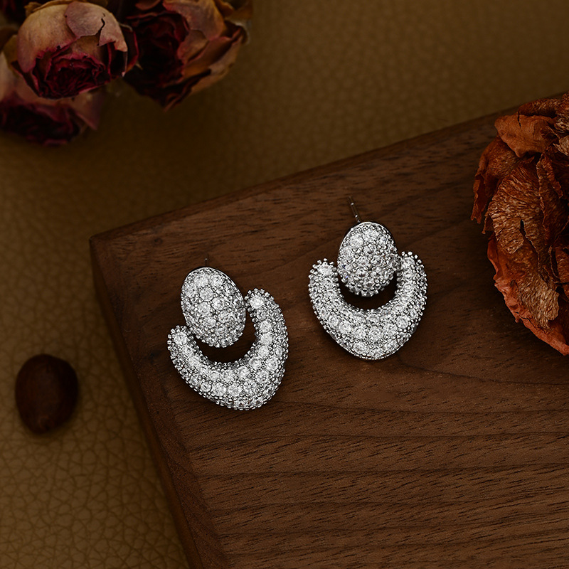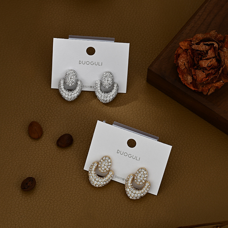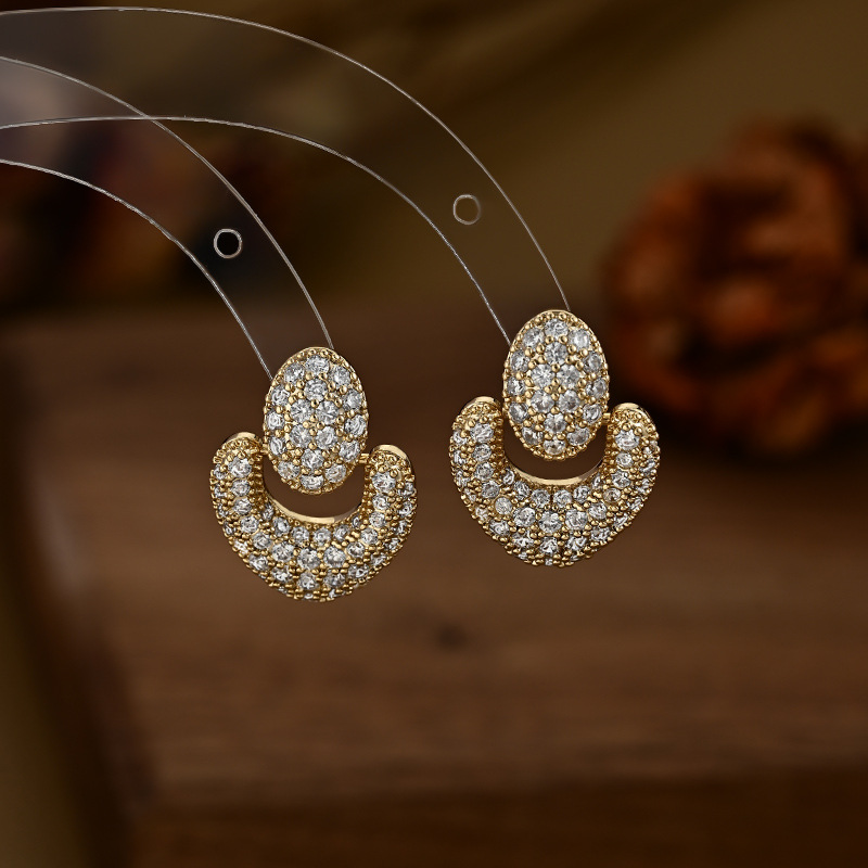 铜镀真金微镶锆石精致百搭款韩系几何耳钉耳饰品小众设计感气质款 English | 投诉