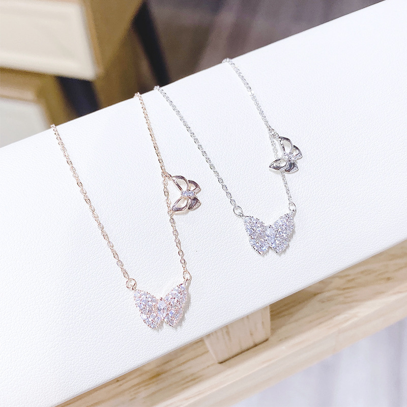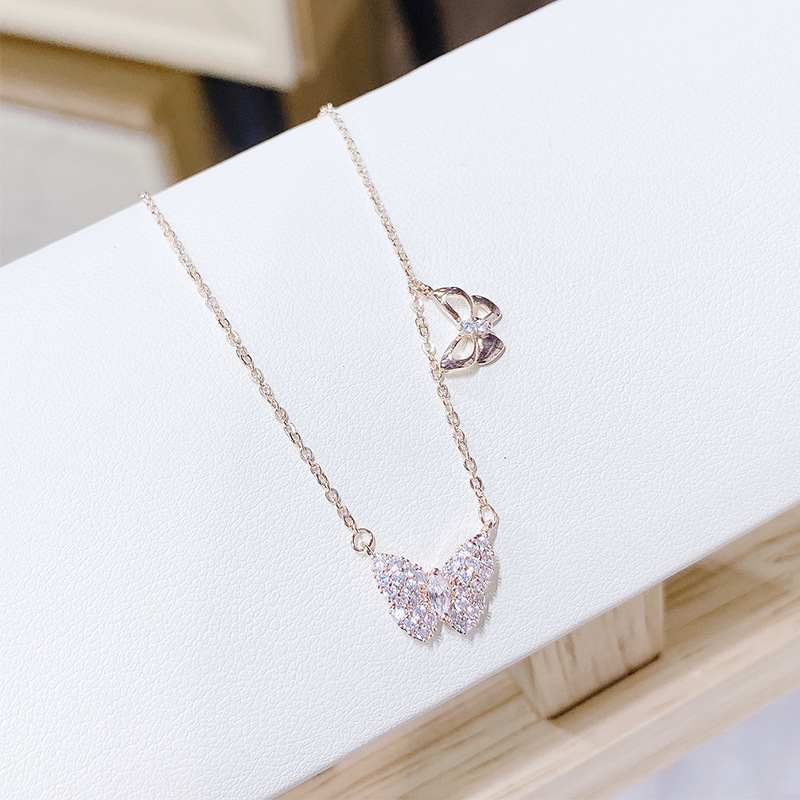蝴蝶满镶钻锆石森系女生锁骨链