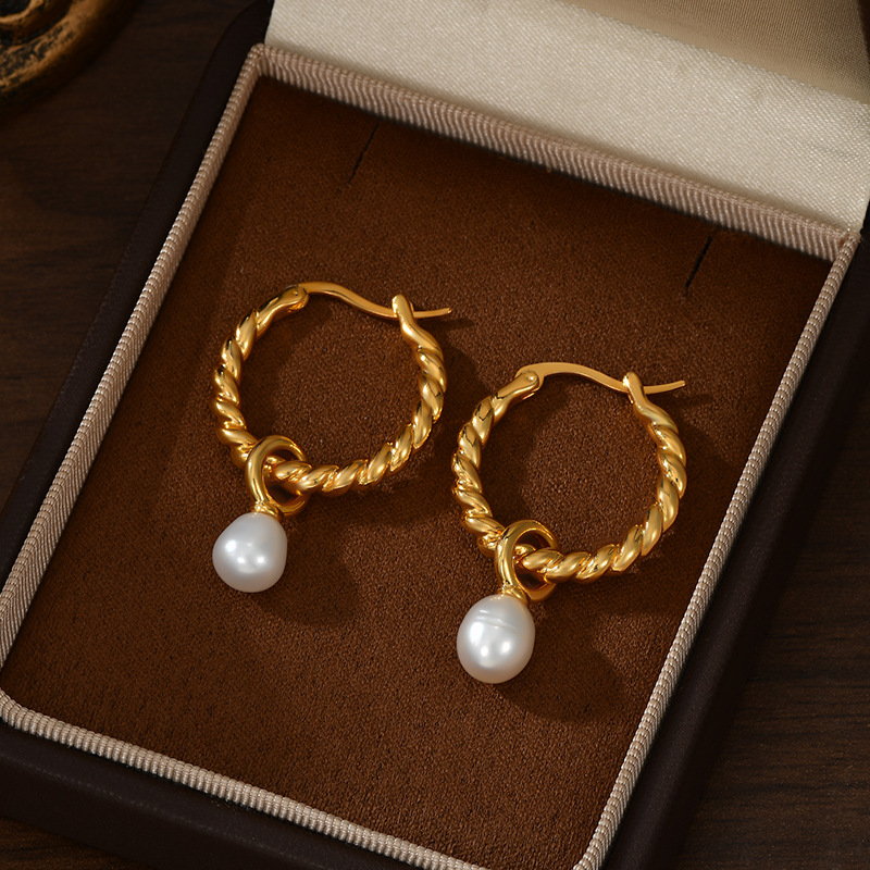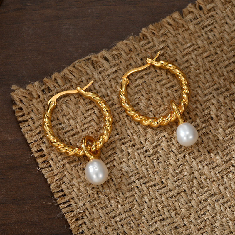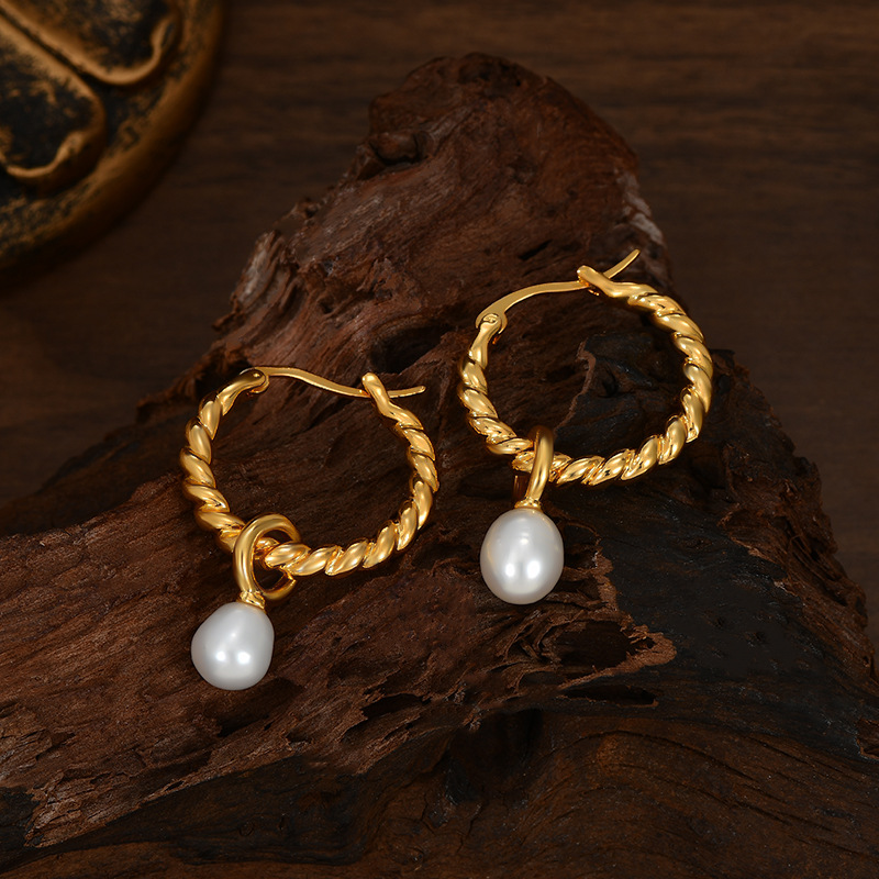 波西米亚欧美巴洛克麻花扭纹珍珠耳环时尚气质圆圈耳饰品耳钉女潮 English | 投诉