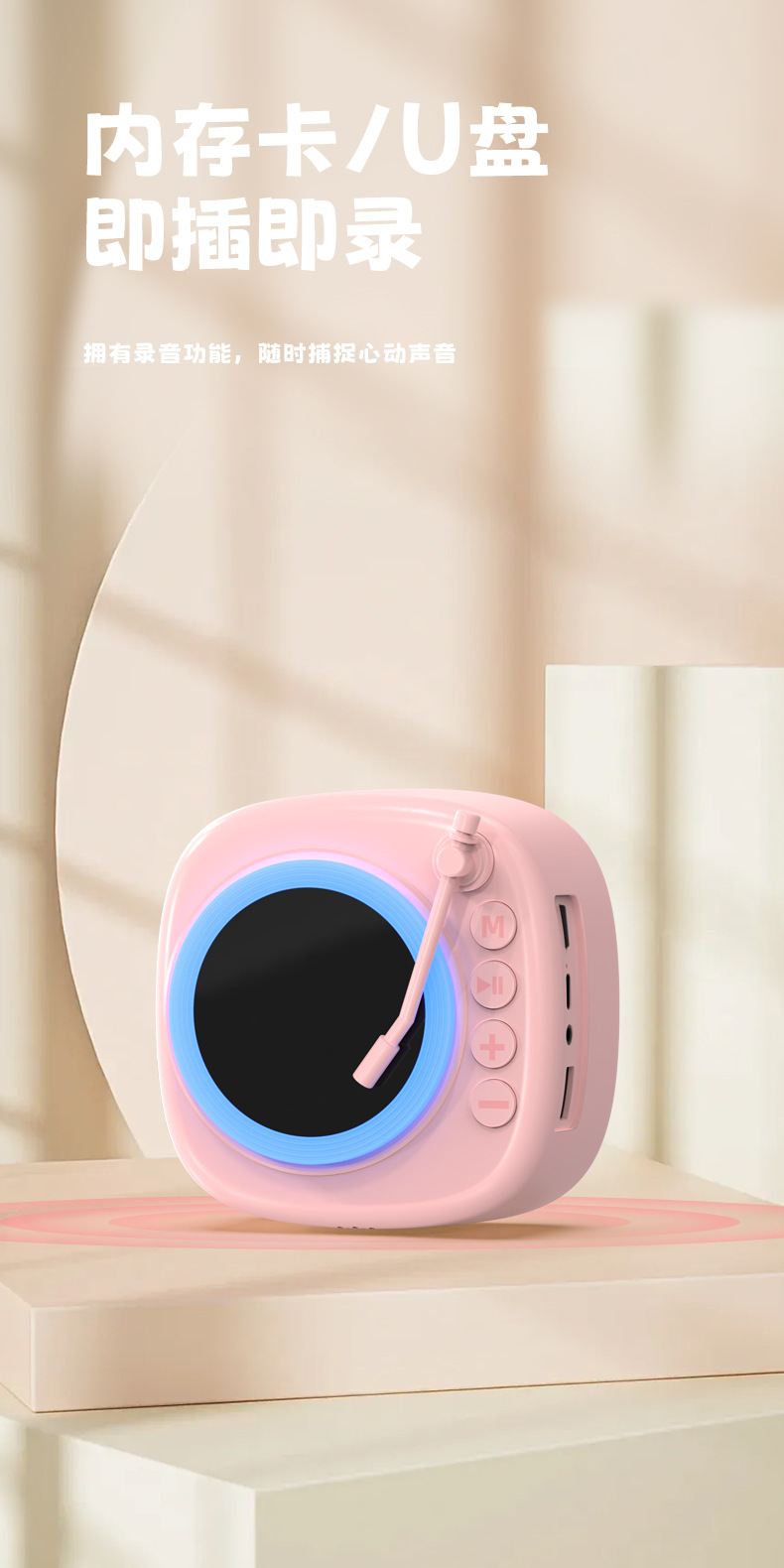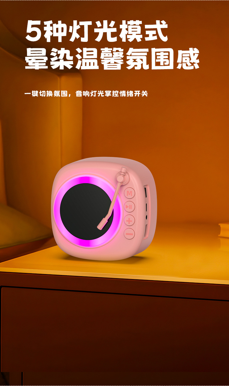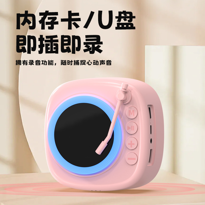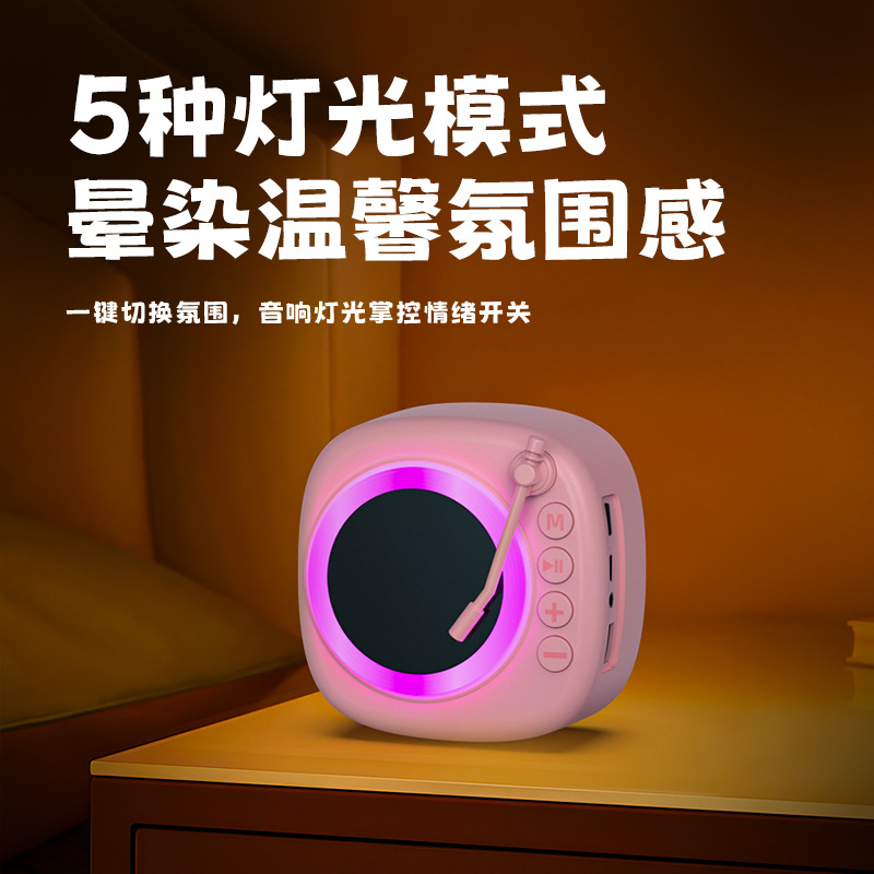 复古唱片蓝牙音箱家用桌面摆件音箱插卡录音氛围灯音响生日礼物